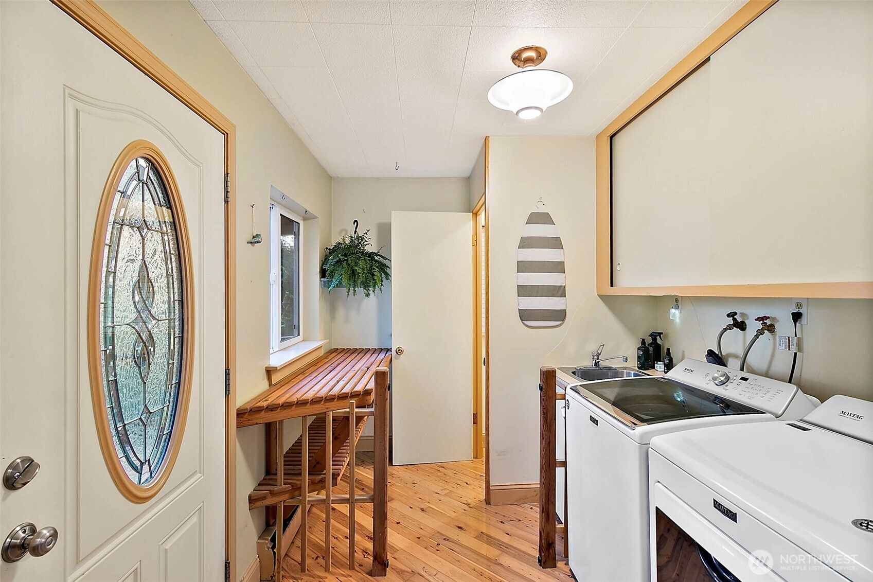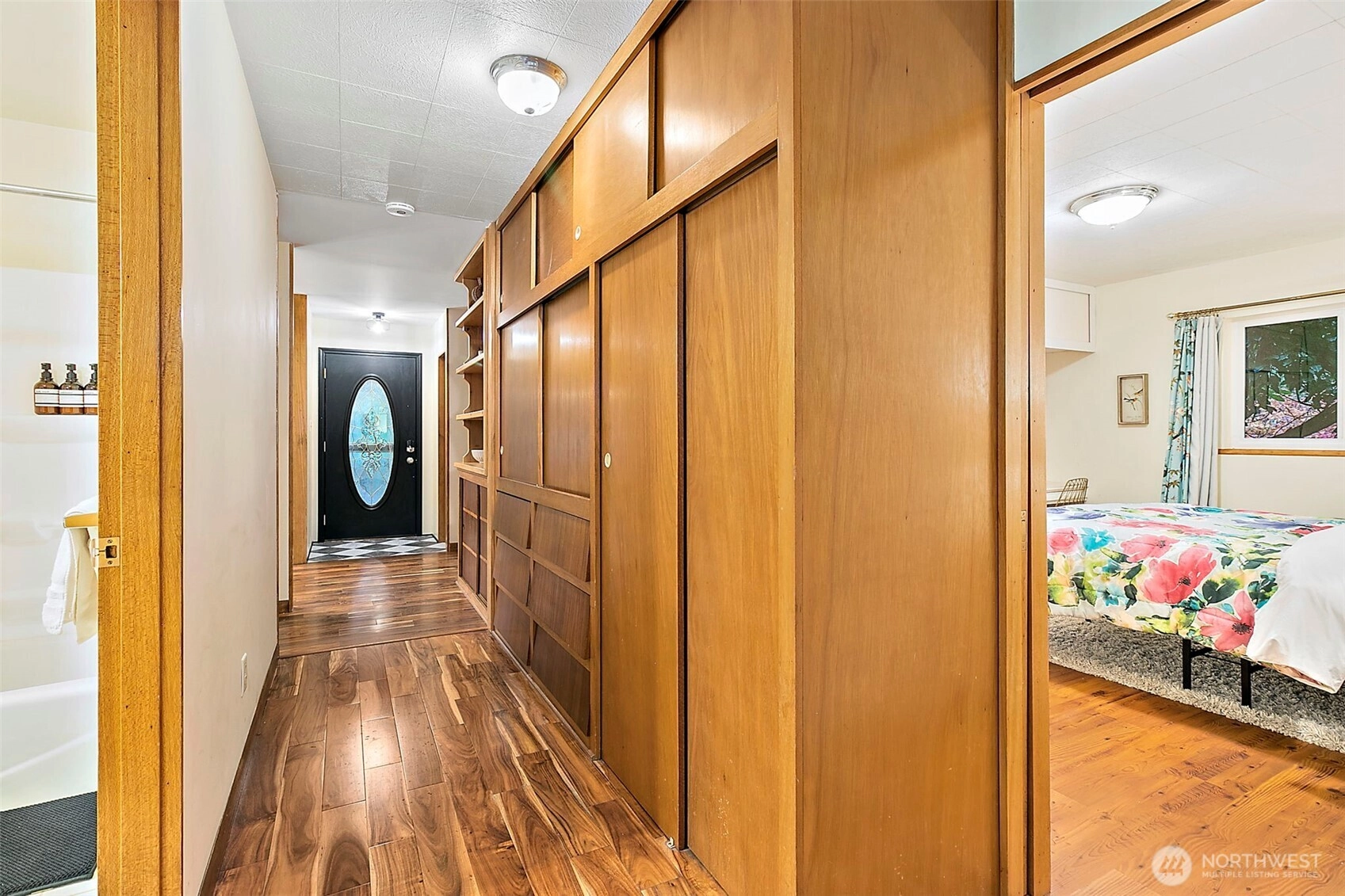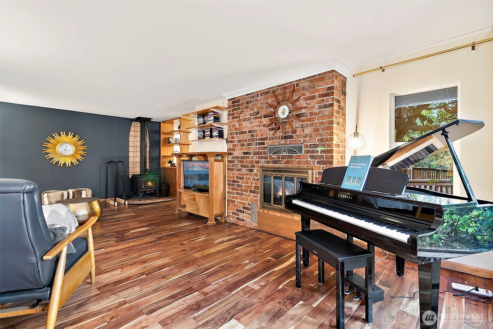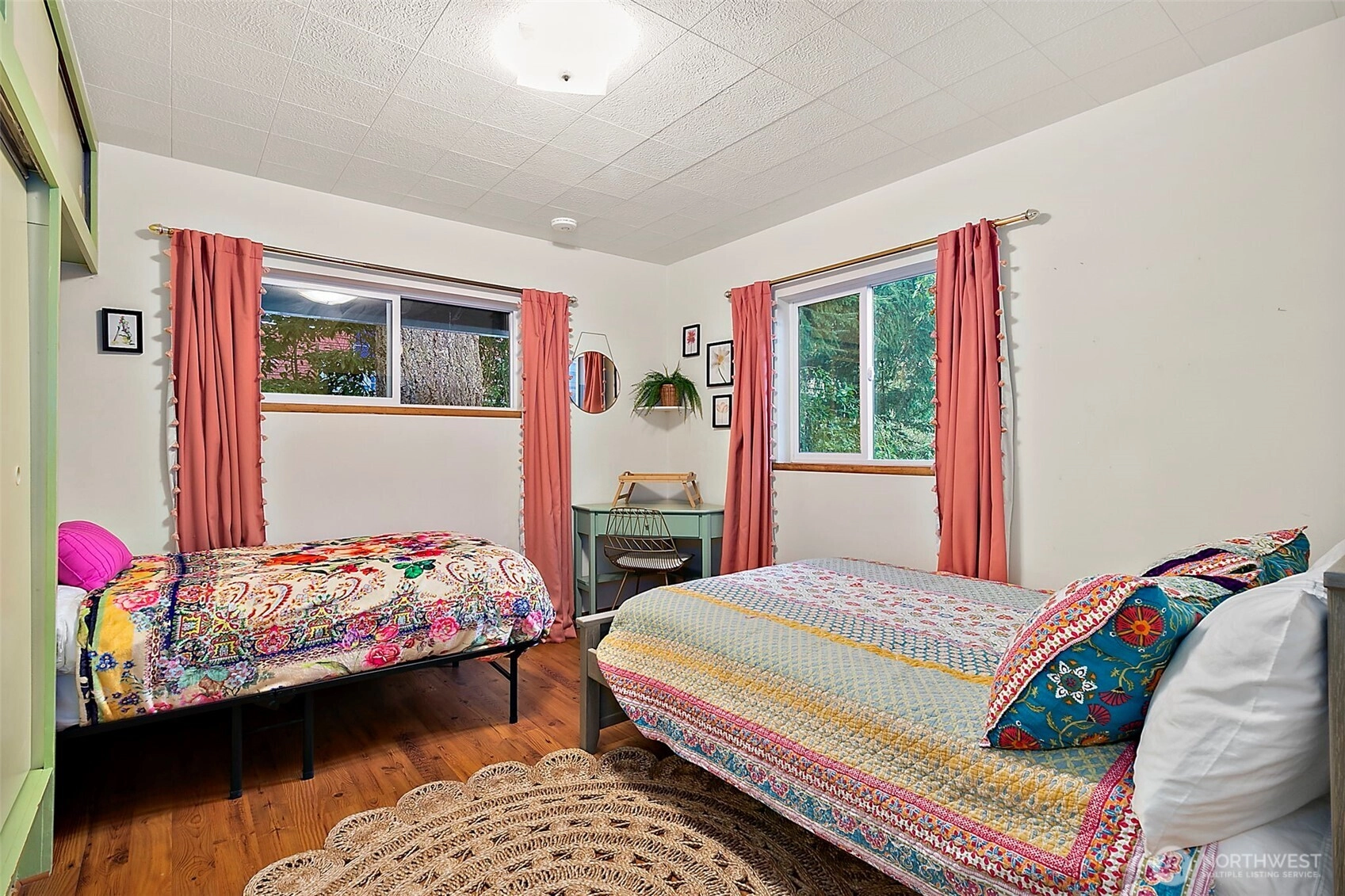 Privacy abounds on this rare double-sized lot in coveted Seahurst! Tucked at the end of a quiet cul-de-sac, this 3 bedroom, 1.5 bath mid-century modern retreat feels like living in a treehouse-surrounded by a lush greenbelt & wrap-around deck. Showcasing beautiful mid-century wood built-ins, wood burning stove + 2 fireplaces, glimpses of the Puget Sound, a new roof ('23), & a fully fenced gardener's dream w/magical landscape. The lower level offers full-height ceilings, flex/bonus rm ideal for office or play, plus huge storage/workshop area. Easy access to downtown Burien shops, the beach, dining & Seahurst waterfront park. À well-maintained vintage gem offering space, serenity & style.