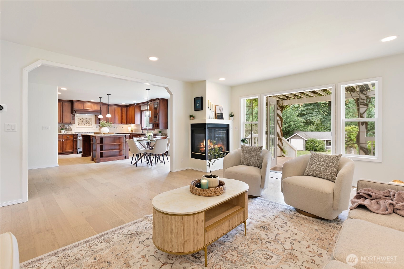 A stunning NW contemporary retreat, remodeled in 2024. Designed with modern comforts and timeless style, this home sits on 1.26 acres of landscaped, fully fenced grounds within the desirable Tahoma School District. Be captivated by soaring vaulted ceilings, new hardwood flooring, and a chef’s kitchen designed for both function and style. French doors lead to an expansive deck with tranquil views—an entertainer’s dream. The main floor primary suite boasts an updated 5-piece bath, dual walk-in closets, and private hot tub access. Upstairs offers a spacious loft, versatile flex space, 3 bedrooms, and a full bath. Peaceful yet minutes from Hwy 169, shopping, & trails. Mortgage savings may be available for buyers of this listing. Welcome home!