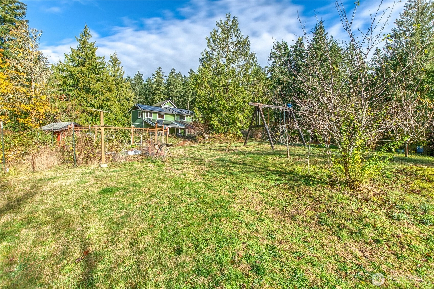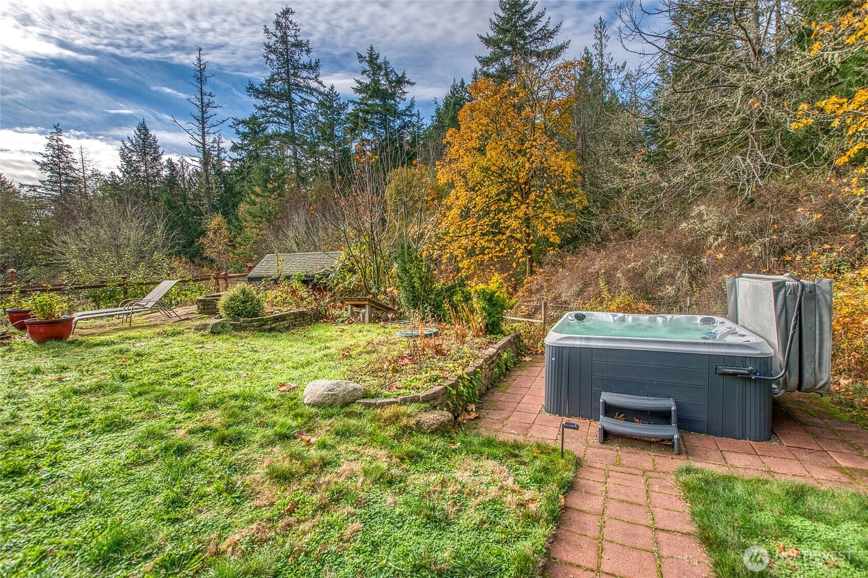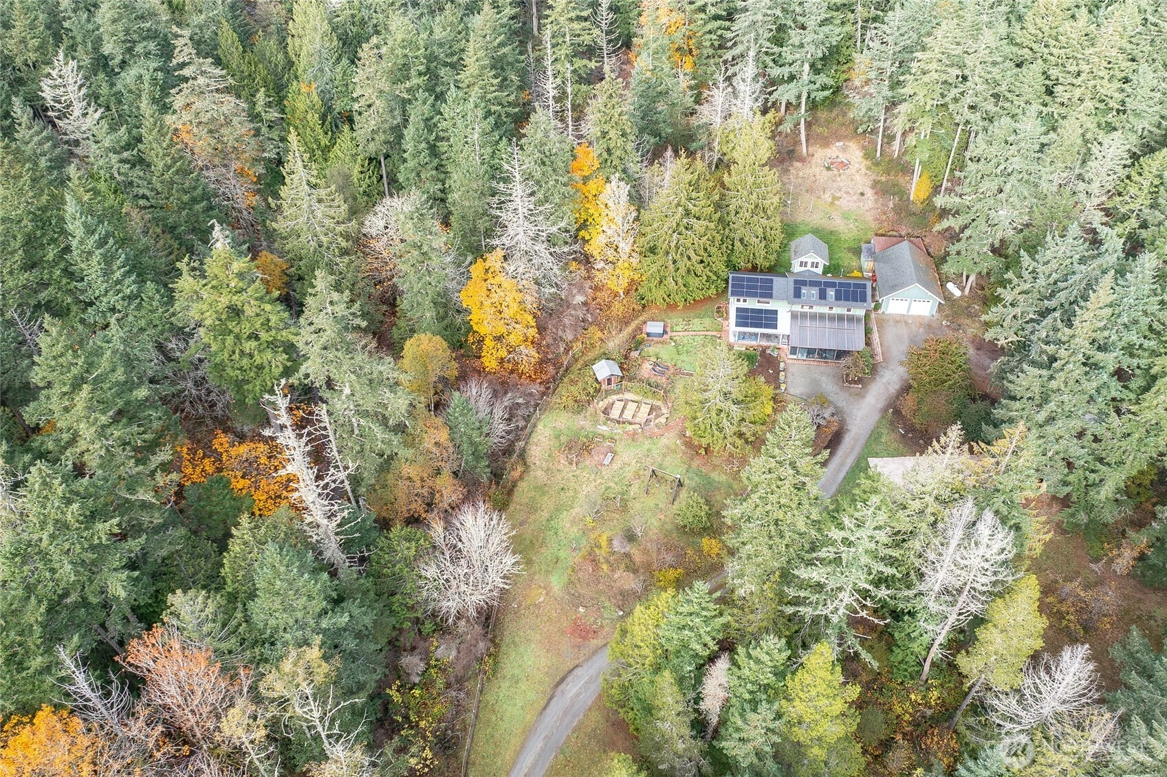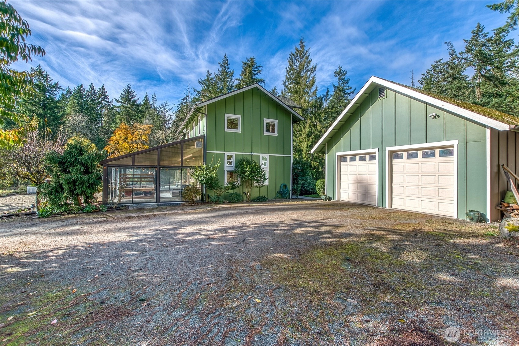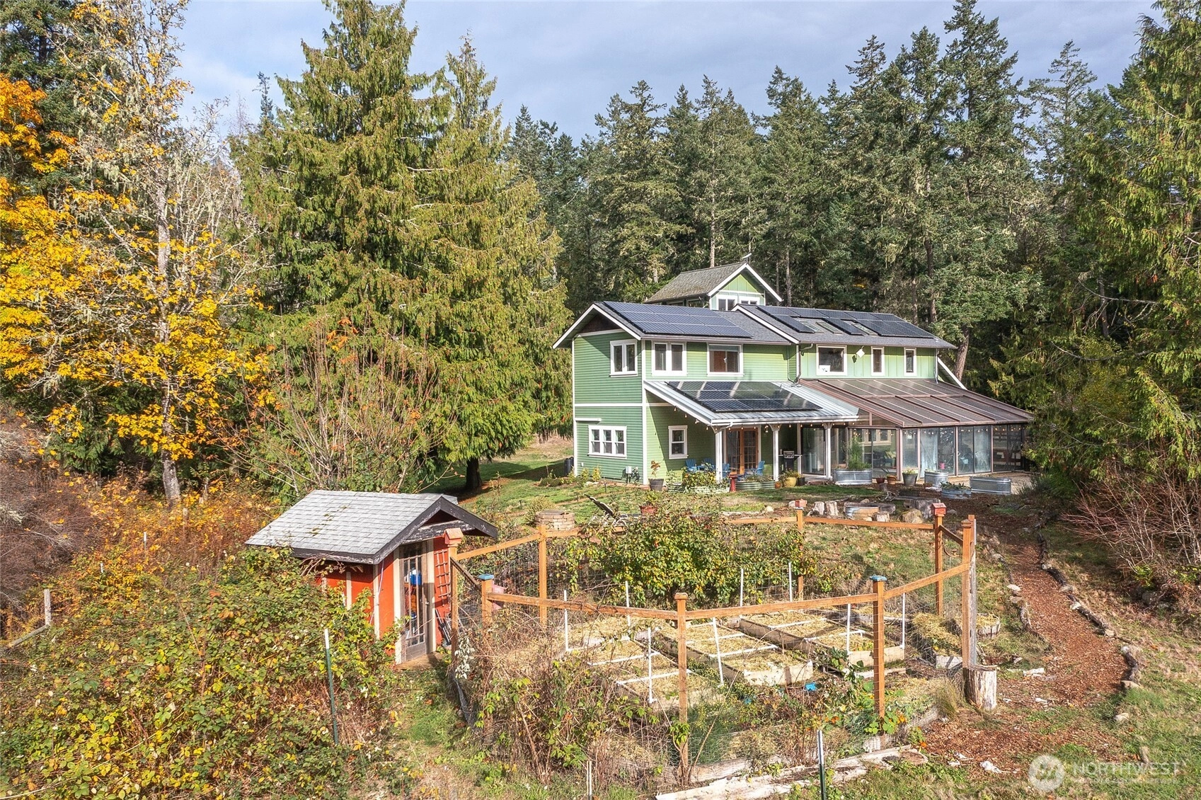 Beautifully maintained 3bd/2ba home on 5 private acres near Victorian Valley. A thoughtful 2017 addition expanded the home w/ an open-concept kitchen perfect for entertaining, + a spacious primary bd w/ walk-in closets. The expansive sunroom, w/ floor-to-ceiling glass panels & sliding roof vents, offers a versatile flex space. This sunny property includes over 3 deer-fenced ac w/ established gardens, fruit trees, chicken coop, & sports court. Unwind in the hot tub under the stars. 12.75 kW solar array w/ battery backup, EV charging station, private well, 6bd septic & detached 2-car garage w/ storage & shop space. Adjacent to SJ Preservation Trust trail & minutes from Killebrew Lake & ferry—this property offers both serenity & convenience.