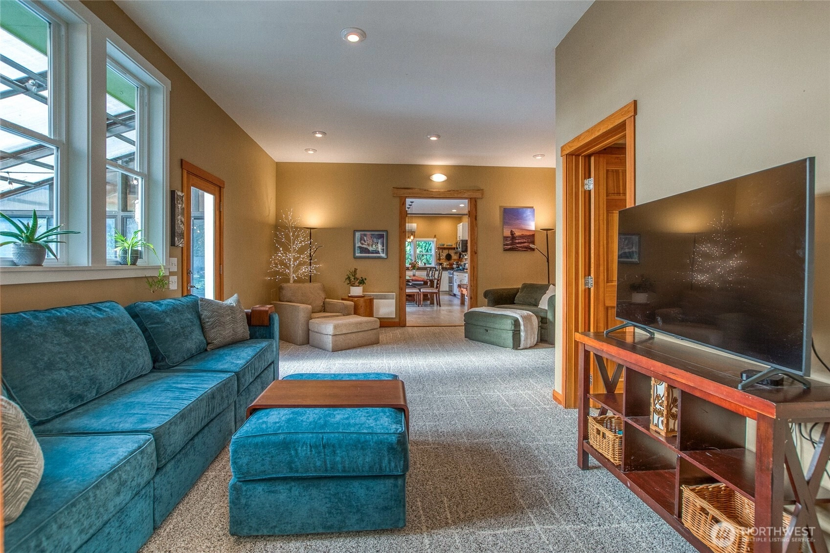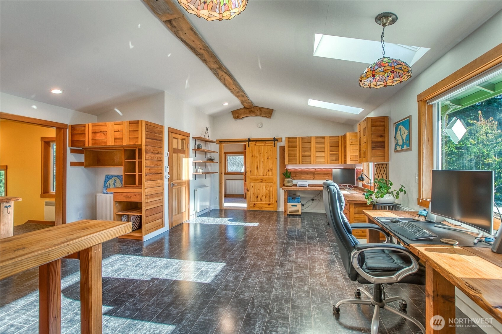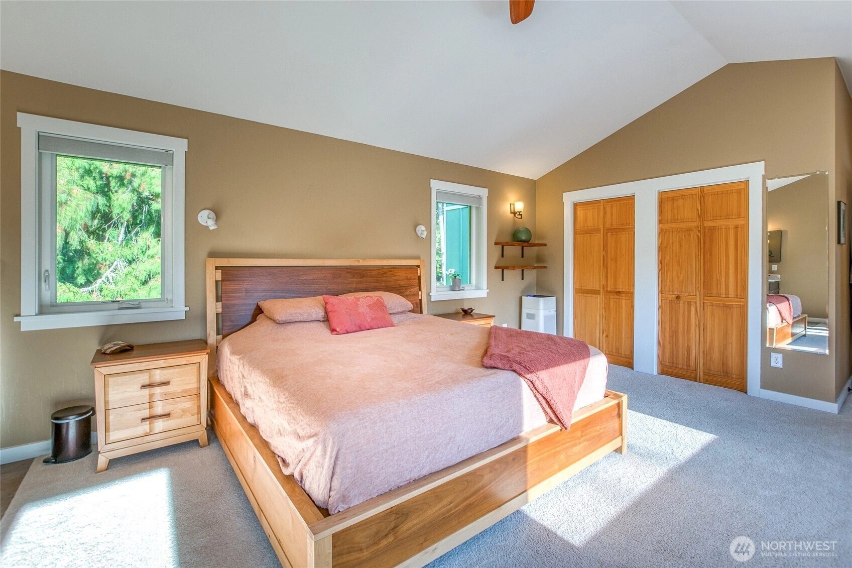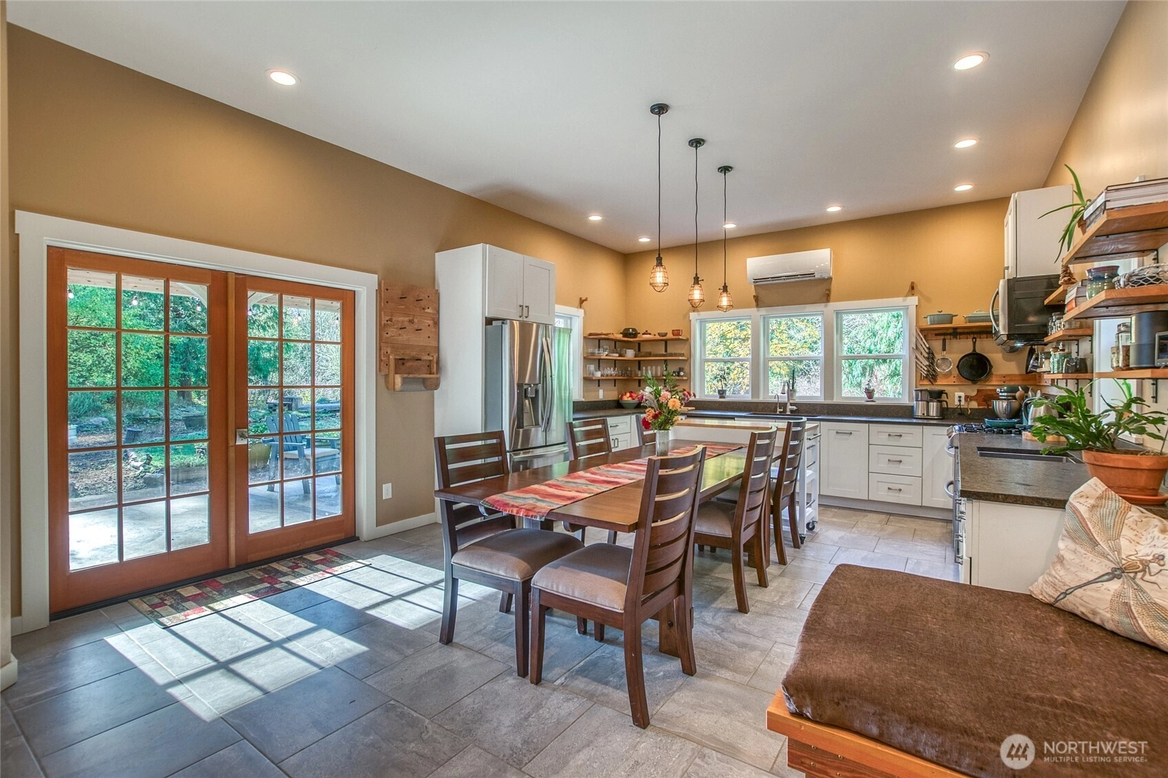 Beautifully maintained 3bd/2ba home on 5 private acres near Victorian Valley. A thoughtful 2017 addition expanded the home w/ an open-concept kitchen perfect for entertaining, + a spacious primary bd w/ walk-in closets. The expansive sunroom, w/ floor-to-ceiling glass panels & sliding roof vents, offers a versatile flex space. This sunny property includes over 3 deer-fenced ac w/ established gardens, fruit trees, chicken coop, & sports court. Unwind in the hot tub under the stars. 12.75 kW solar array w/ battery backup, EV charging station, private well, 6bd septic & detached 2-car garage w/ storage & shop space. Adjacent to SJ Preservation Trust trail & minutes from Killebrew Lake & ferry—this property offers both serenity & convenience.