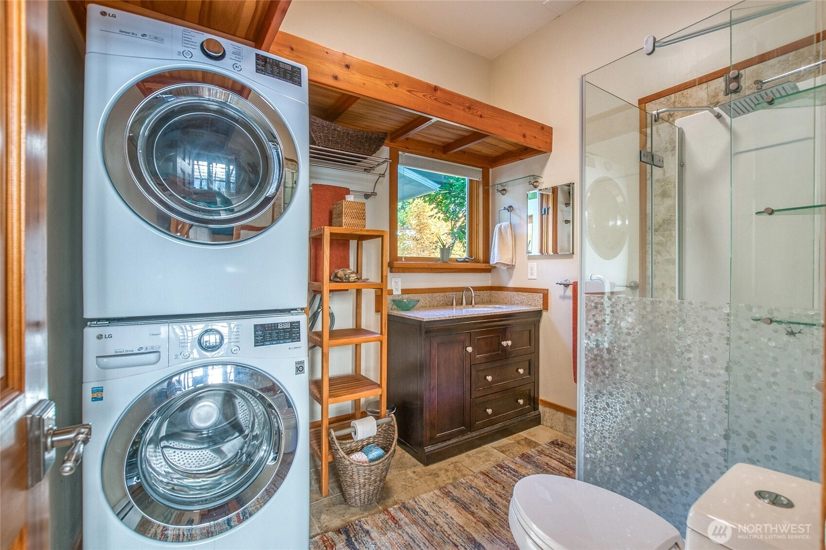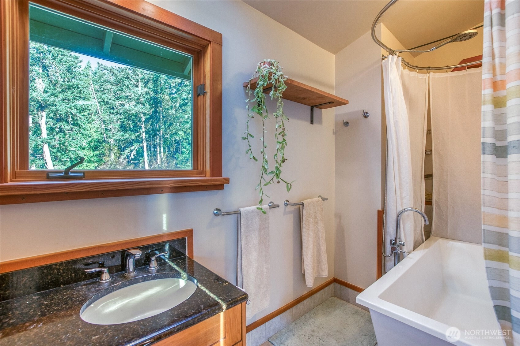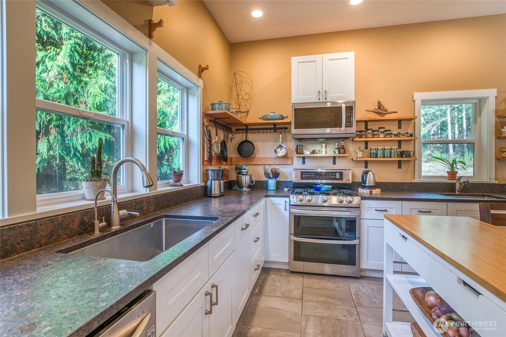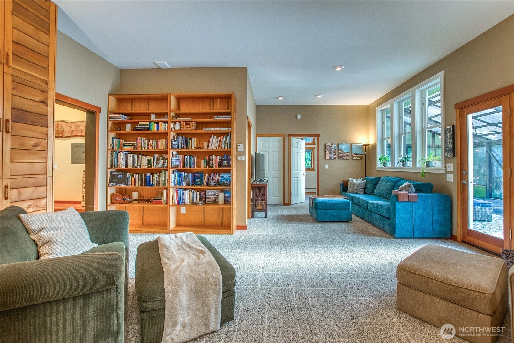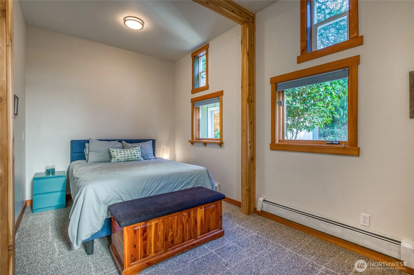 Beautifully maintained 3bd/2ba home on 5 private acres near Victorian Valley. A thoughtful 2017 addition expanded the home w/ an open-concept kitchen perfect for entertaining, + a spacious primary bd w/ walk-in closets. The expansive sunroom, w/ floor-to-ceiling glass panels & sliding roof vents, offers a versatile flex space. This sunny property includes over 3 deer-fenced ac w/ established gardens, fruit trees, chicken coop, & sports court. Unwind in the hot tub under the stars. 12.75 kW solar array w/ battery backup, EV charging station, private well, 6bd septic & detached 2-car garage w/ storage & shop space. Adjacent to SJ Preservation Trust trail & minutes from Killebrew Lake & ferry—this property offers both serenity & convenience.