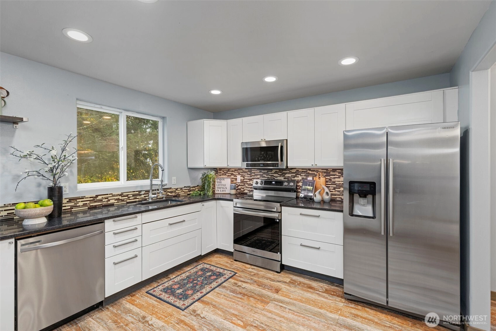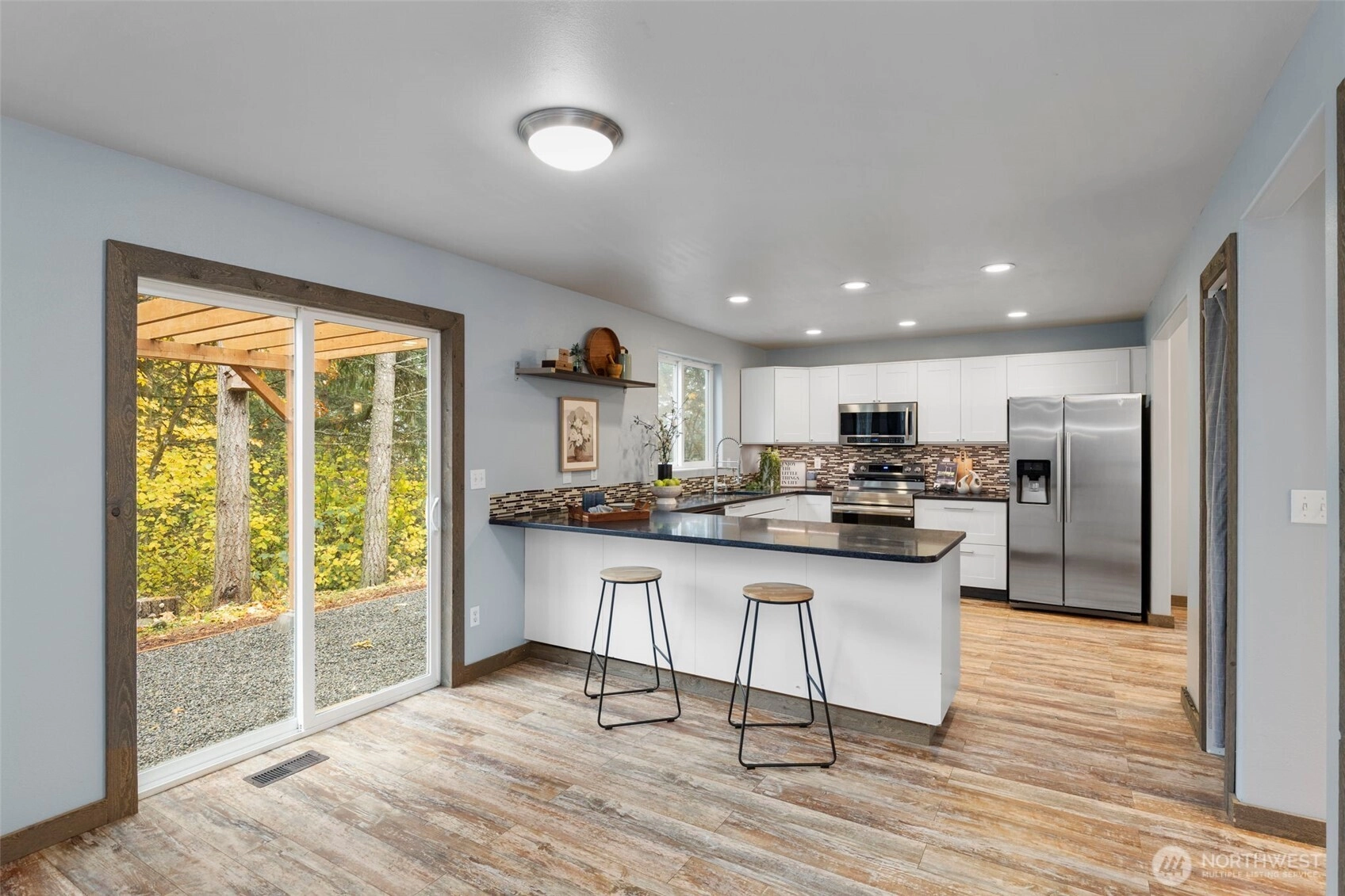 Move-in ready 3 bedroom, 2.5 bathroom home with a bonus room! Enjoy the privacy on 1.25 acres nestled at the end of a quite road. Enter to the spacious living area with low maintenance laminate plank floors. The modern kitchen has newer appliances and tons of counter space. Open concept family room with a slider leading to the back deck. Upstairs you’ll find a spacious primary bedroom with attached full bathroom, 2 guest bedrooms and an office/bonus room. Fresh paint, newer fixtures, appliances and flooring. Circular driveway with plenty of room for parking. All conveniently located close to town amenities and a short drive to JBLM!