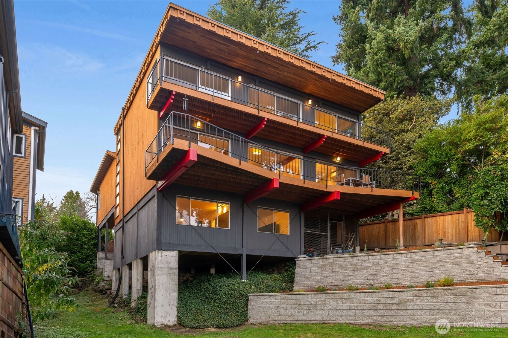 Designed by renowned architect Charles Morgan, this distinguished Mid-Century Modern home from the 1960s embodies timeless style and architectural significance, and is perfectly seated in View Ridge. Walls of glass frame views of Lake Washington & the Cascades, flooding the home with natural light. Kitchen & living areas flow effortlessly for entertaining or relaxing. Iconic fireplace anchors the living area. 3 bedrooms on one level & a 4th suite on the main floor. The lower level with outdoor access is ideal for a rec room, gym, office—or all three! Dining & breakfast areas open to an expansive view deck & 2nd deck above. Minutes to Burke-Gilman Trail, Children’s, UW. Tucked on a quiet, sidewalk-lined street. Seattle living at its best!
