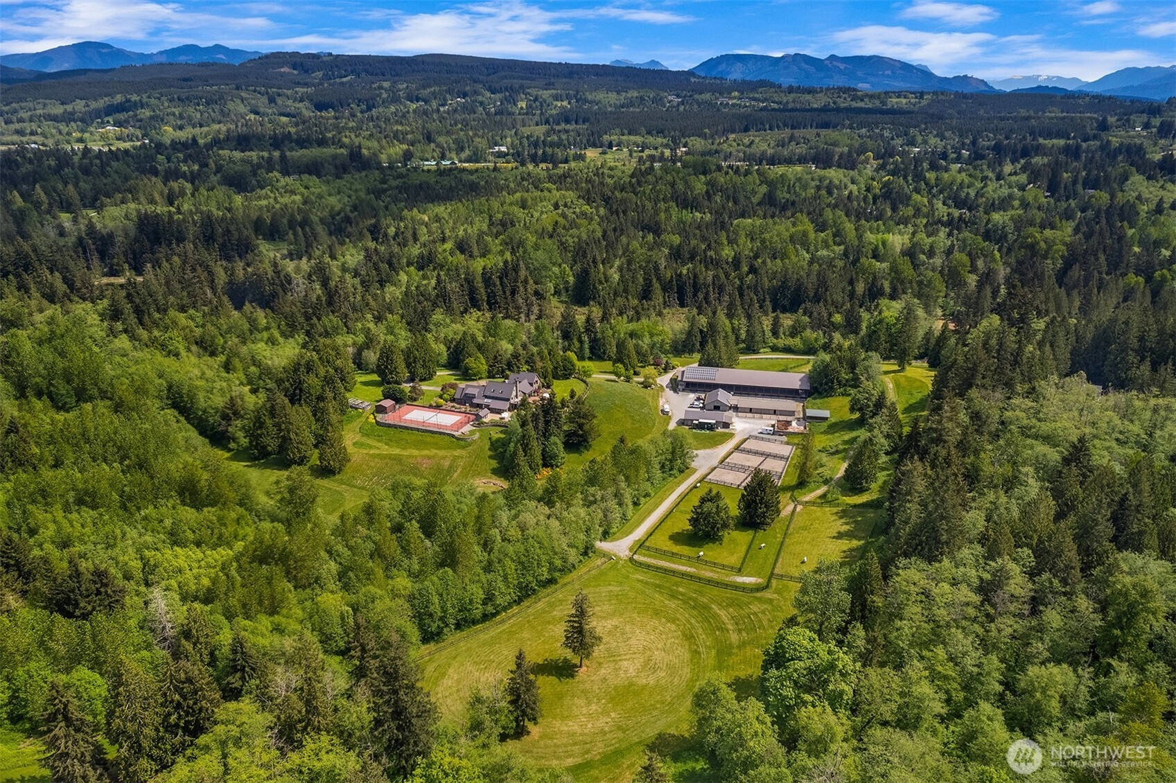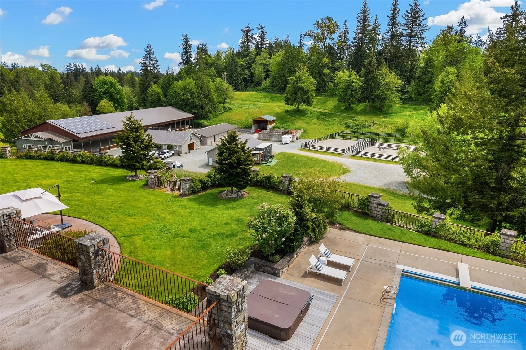 Once in a lifetime opportunity. Private, serene, all inclusive, turn-key estate. 7,040 sqft home integrates seamlessly with its natural surroundings. Resort style living w/versatile floor plan designed for contemporary lifestyles. Bask poolside, court-side, or fireside, a legacy estate to cherish for generations. Equestrian complex - 3 barns, covered arena, jump field, mud-free turnouts, trails and track. Pre-inspected and move-in ready with major renovations and thoughtful upgrades since 2020.
