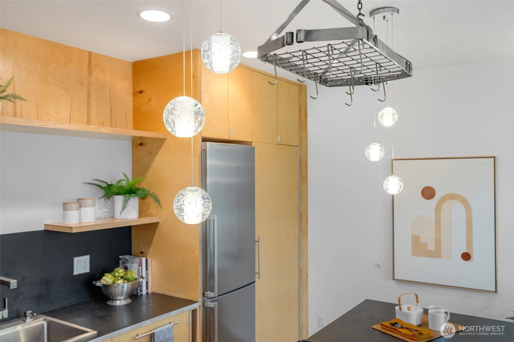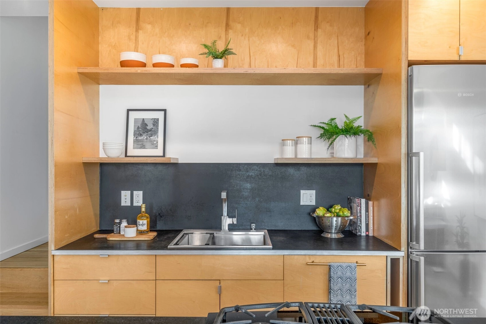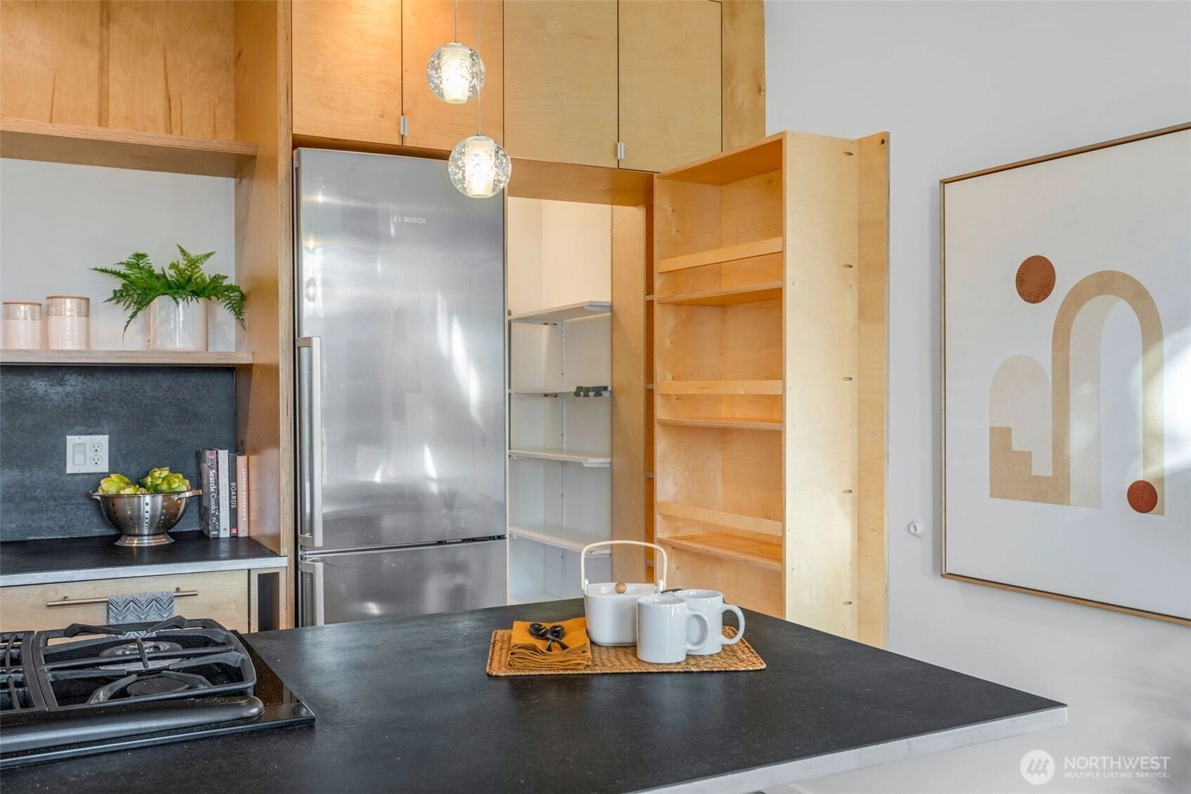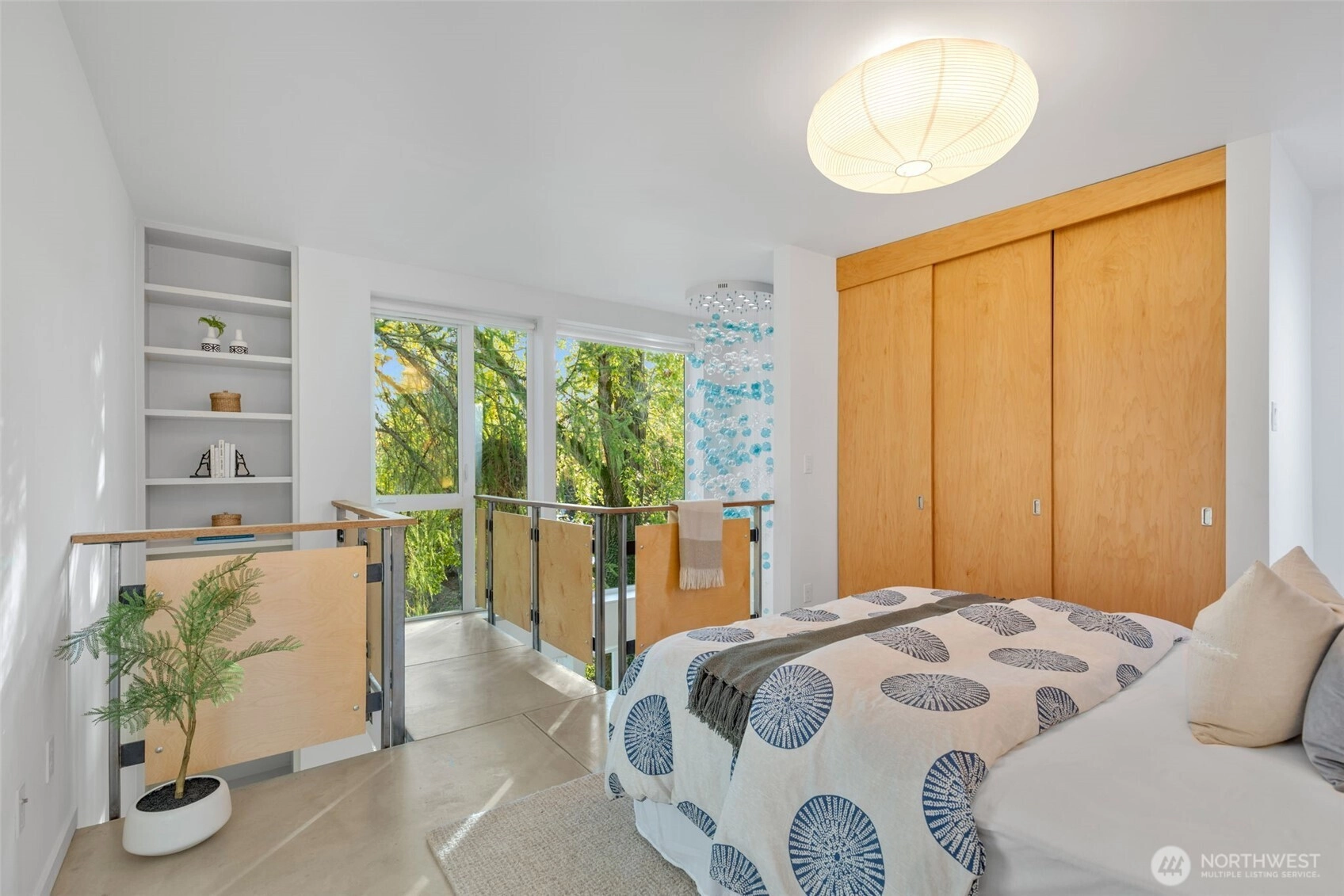 Soaring 30’ ceilings and walls of glass define this 5-Star Built Green home perched above Miller Park on one of Capitol Hill’s most coveted streets. Thoughtful, modern design blends warmth and sustainability through radiant concrete floors, maple cabinetry, and triple-pane windows. A sculptural bookcase grounds the kitchen and living area, illuminated by designer lighting. The top-floor primary suite opens to treetop views across an interior bridge to the dramatic window wall, while a flexible, light-filled second bedroom with Murphy bed floats above the living space below. Enjoy mountain views from the rooftop deck and a prized location moments from Monsoon, Hello Robin, Rocket Taco, and other neighborhood favorites.