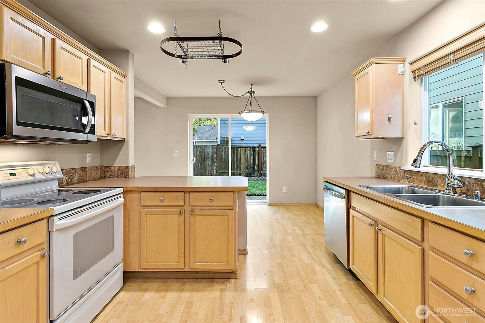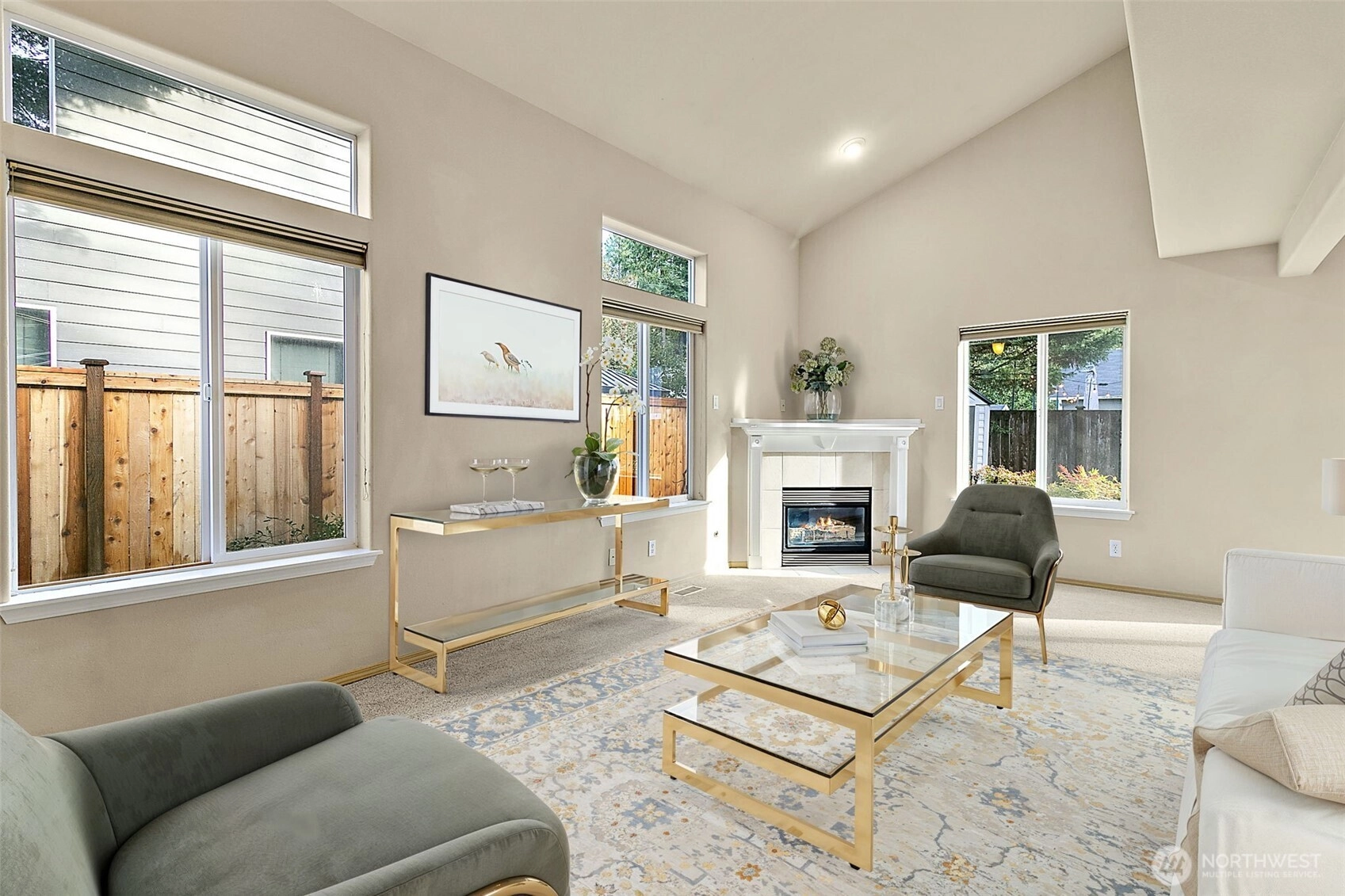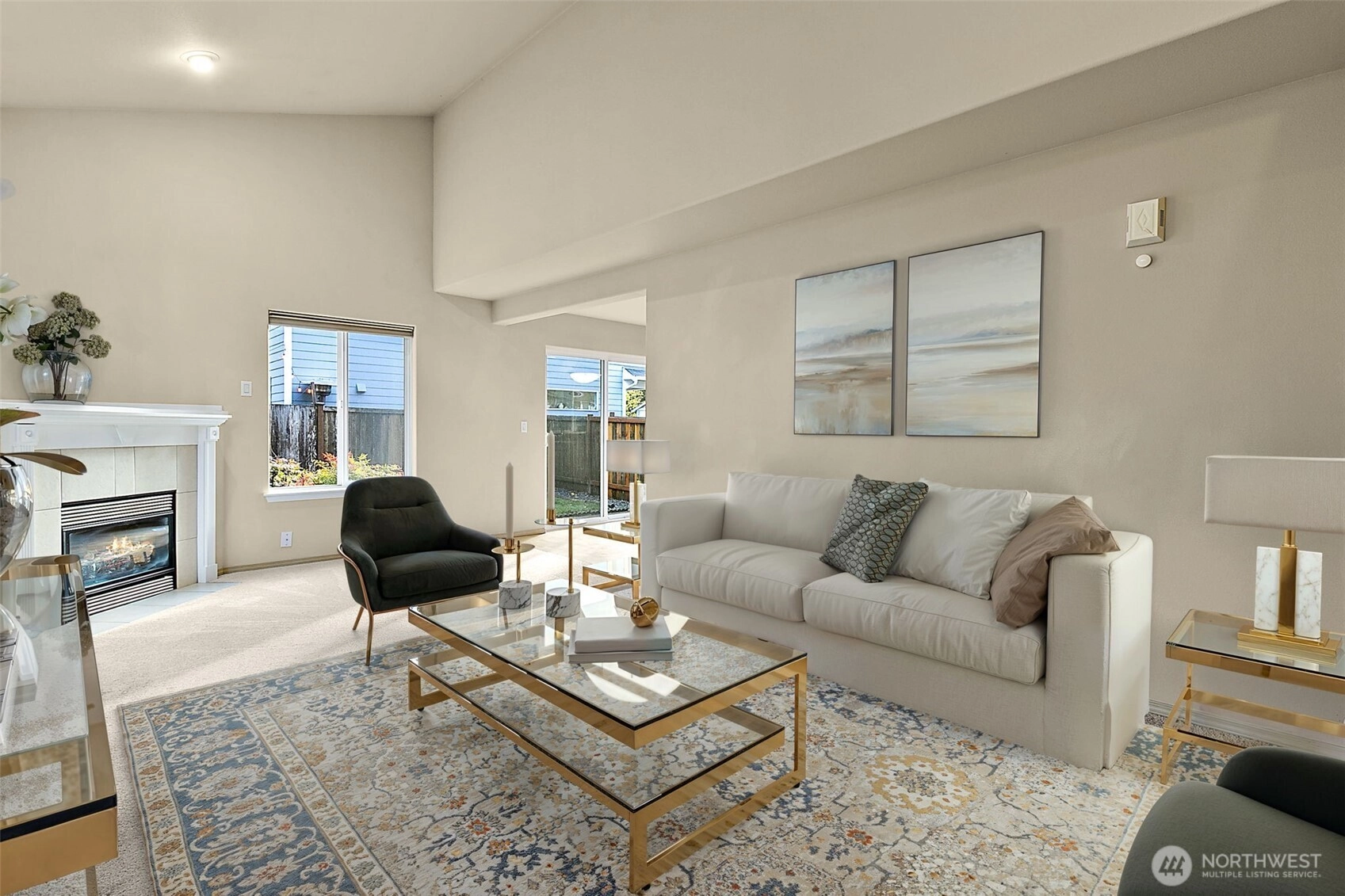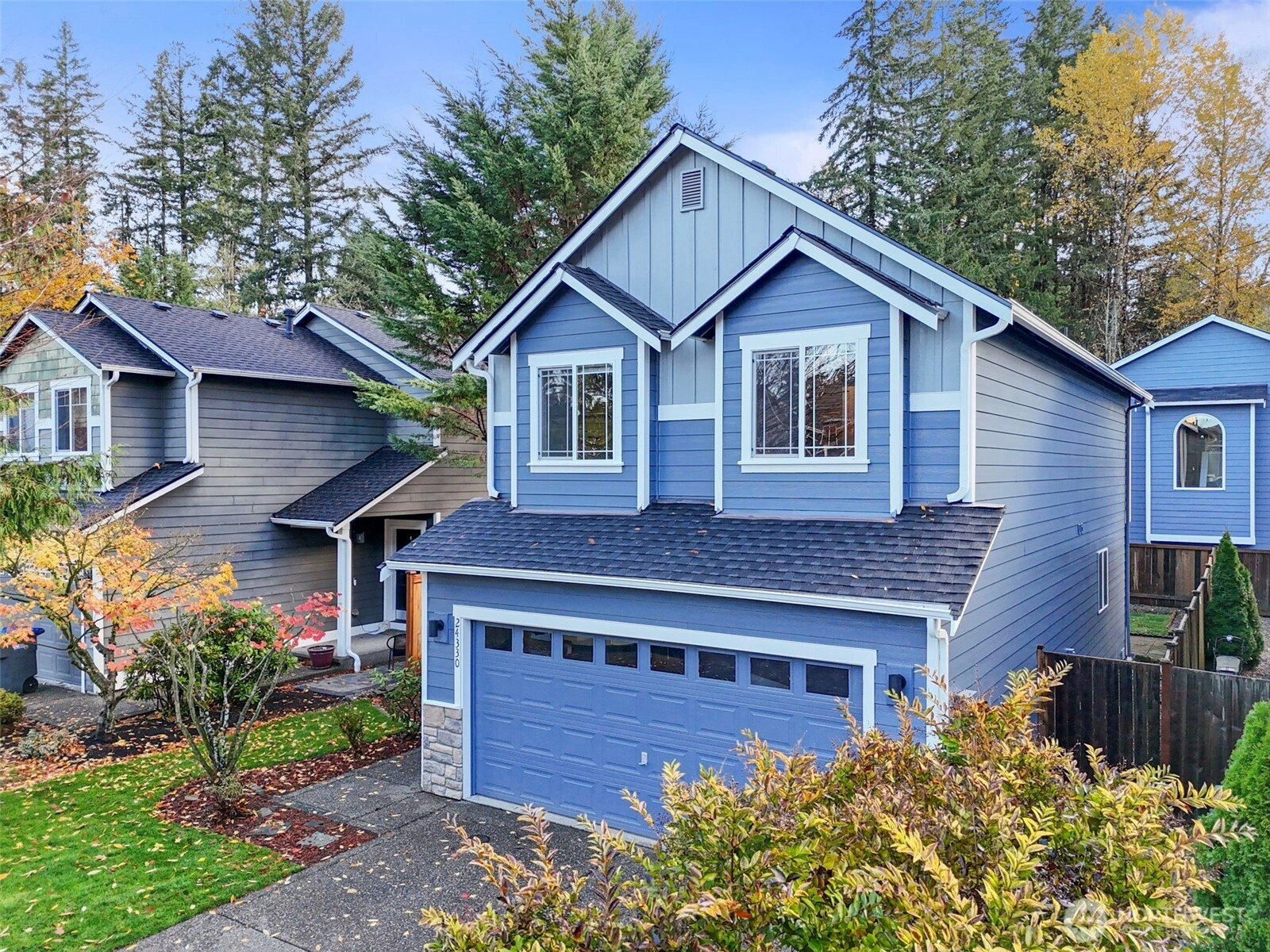 Move-in ready in The Woods! This beautiful 3-bedroom home shines with a brand-new roof, fresh exterior paint, & new carpet throughout. Bright, open living spaces feature vaulted ceilings & an inviting kitchen with walk-in pantry & breakfast bar—ideal for entertaining or casual meals. Upstairs, the spacious primary suite offers a private bath and walk-in closet, while two additional bedrooms provide flexibility for guests or a home office. Outside, enjoy the fully fenced yard with all new sod, the perfect backdrop for play, pets, or outdoor gatherings. Ideally located near Lake Wilderness, Tahoma schools, shopping, & Maple Valley amenities, this home offers a wonderful blend of comfort, style, & peace of mind.