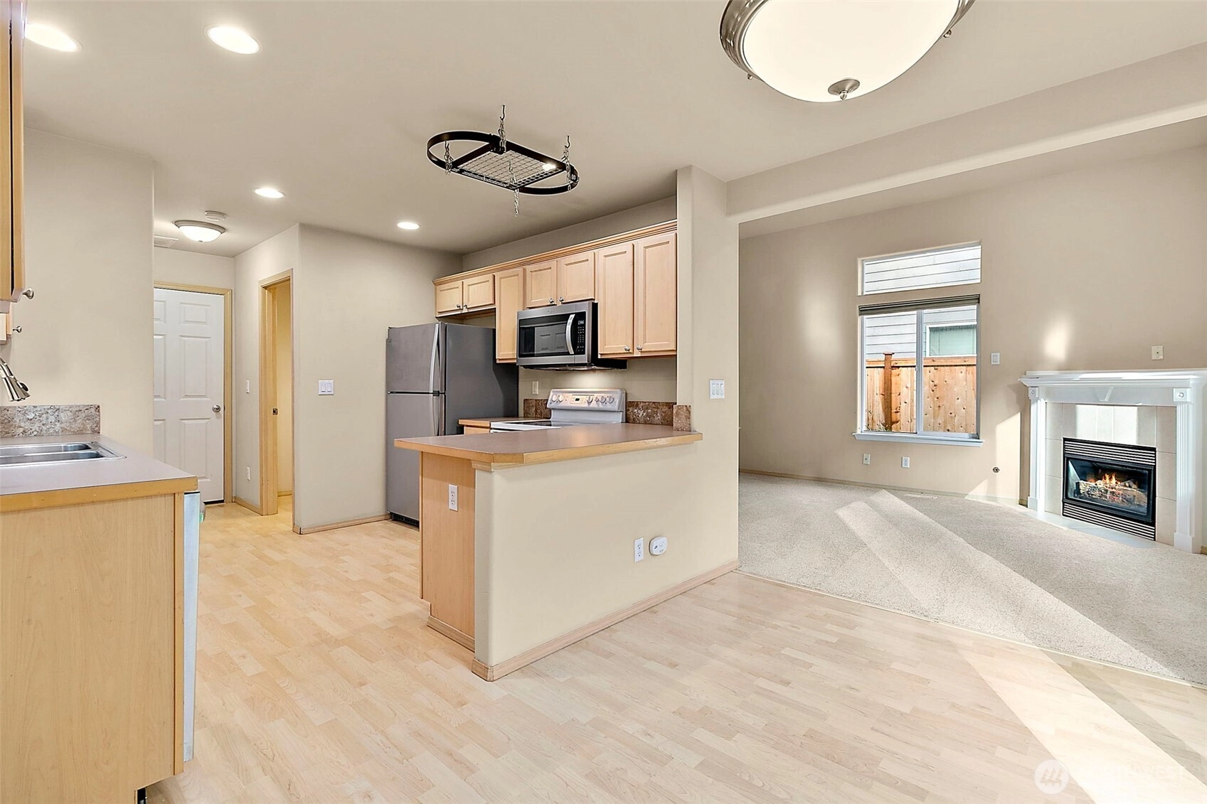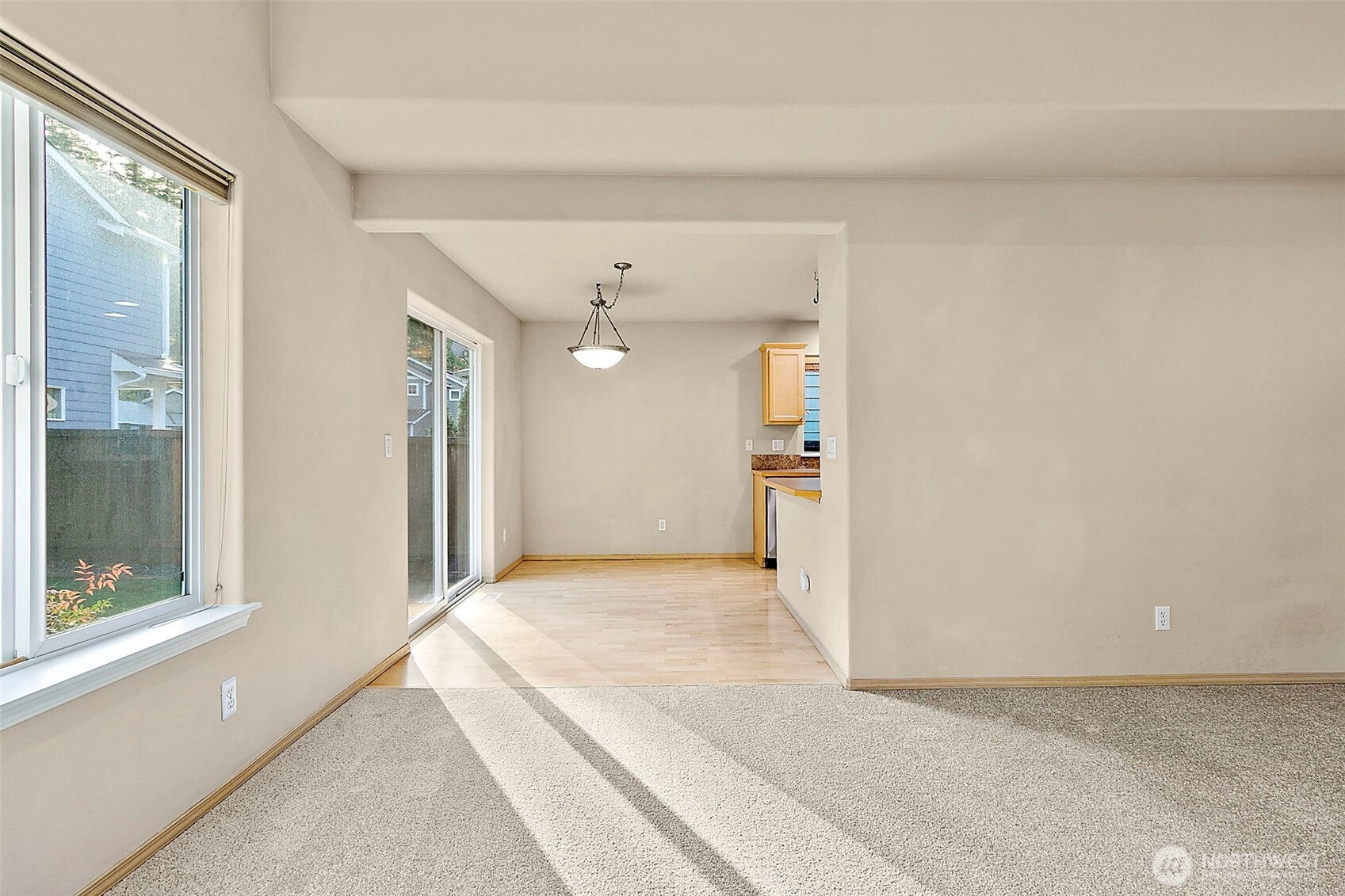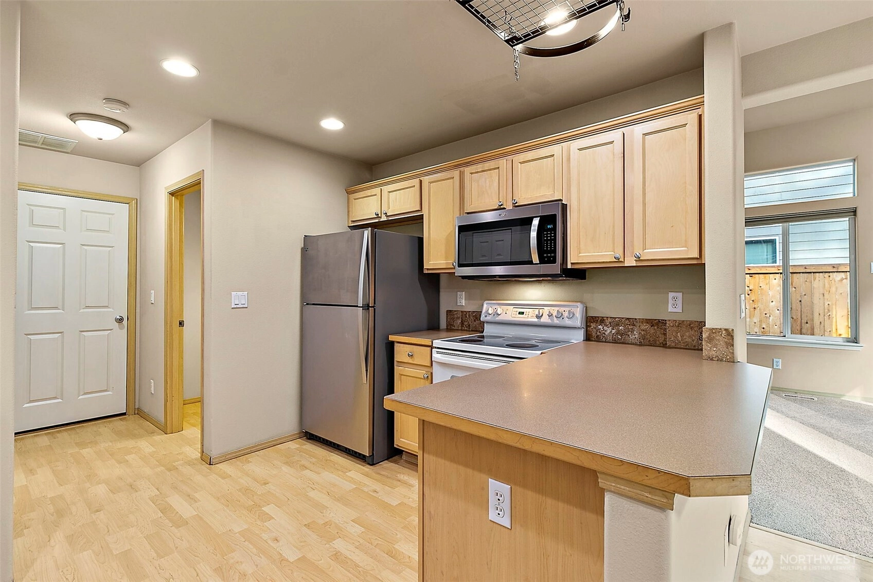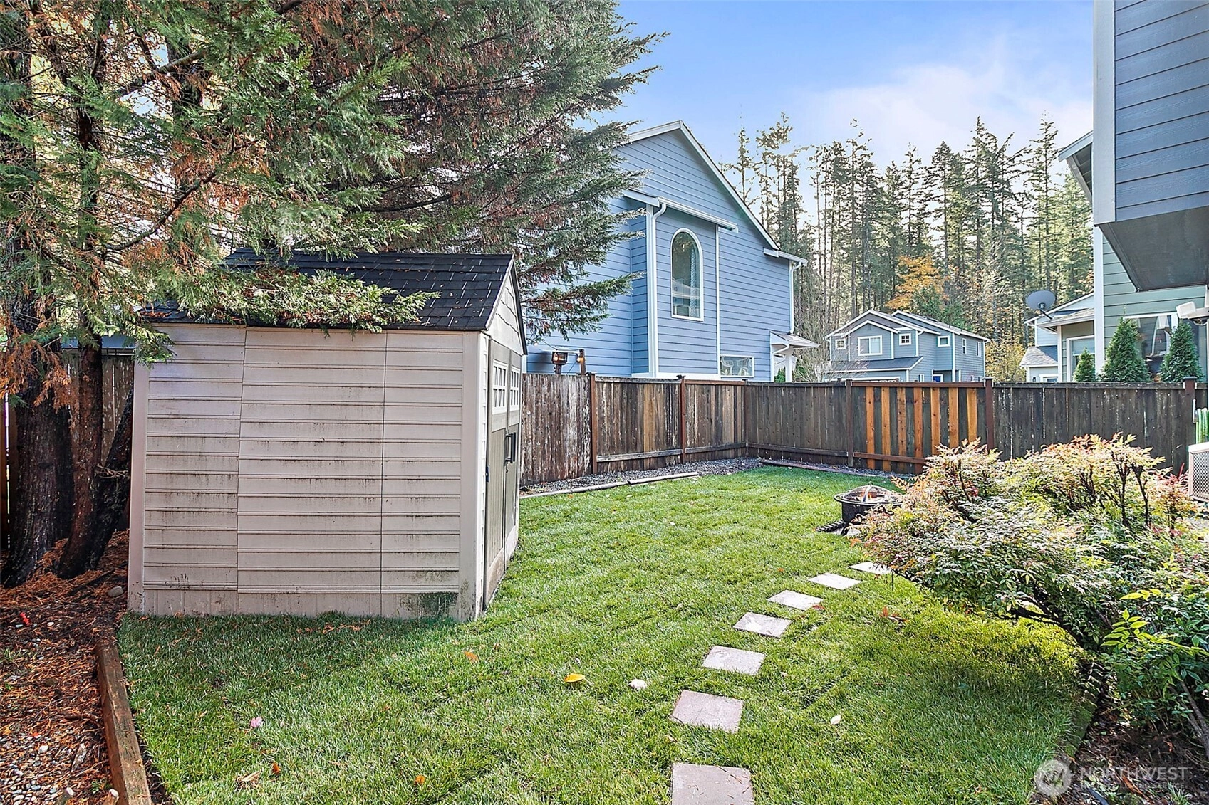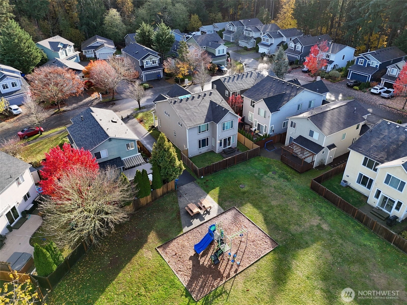 Move-in ready in The Woods! This beautiful 3-bedroom home shines with a brand-new roof, fresh exterior paint, & new carpet throughout. Bright, open living spaces feature vaulted ceilings & an inviting kitchen with walk-in pantry & breakfast bar—ideal for entertaining or casual meals. Upstairs, the spacious primary suite offers a private bath and walk-in closet, while two additional bedrooms provide flexibility for guests or a home office. Outside, enjoy the fully fenced yard with all new sod, the perfect backdrop for play, pets, or outdoor gatherings. Ideally located near Lake Wilderness, Tahoma schools, shopping, & Maple Valley amenities, this home offers a wonderful blend of comfort, style, & peace of mind.