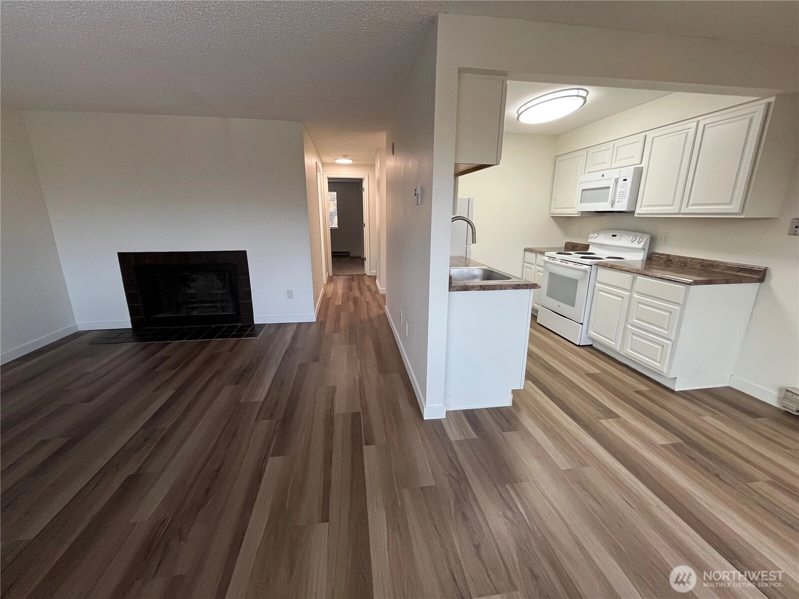 Commuter's dream location! Minutes to the airport, I-5. 405 and Angle Lake Light Rail stop. Adjacent to Valley Ridge Skatepark and Fields, Angle Lake Park, and the brand new Tyee High School! Dead-end parking, no drive-by traffic near your entrance. Totally new interior paint & totally new flooring. New bathroom cabinet, mirror, new bathroom & kitchen lights. Barely 2-year-old water heater! 3 closets + laundy storage shelving area in condo + shed. Enjoy great views of lot's of color changing follage from all your windows. Cozy wood-burning fireplace. Bedroom features almost wall-to-wall closet & tree view. In-unit combination washer-dryer. New Microwave. Amana dishwasher. Covered Mailbox near front door! Only 7 steps with 2 strong handrails