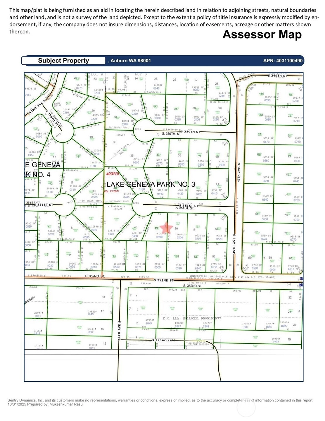 Fantastic opportunity to build your dream home on a ready-to-go lot in a quiet residential area of Auburn! This .44-acre parcel combines two lots into one tax lot and has already undergone extensive site preparation and studies, saving you time and money. Completed reports include a topographic and boundary survey, critical areas review confirming no wetlands or streams on-site, stormwater and erosion control plans, and a septic design currently in review. Public water is on the property through Lakehaven Water District. The proposed home site and drainage design meet King County standards for residential development. Gently sloped with open space and scattered trees—this lot offers a beautiful setting ready for your building plans!