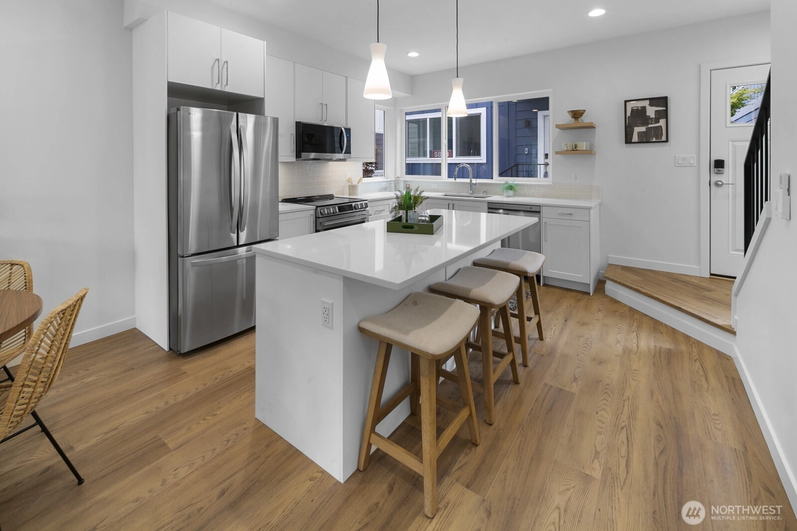 BUILDER-PAID 3.99% RATE AVAILABLE FOR QUALIFIED BUYERS! Discover this stunning new 2-story home from N2 Builders in fantastic Greenwood location! Step inside to wide-plank floors, big windows, open floorplan, timeless style with NW coastal vibe. Prepare meals in a gourmet kitchen. Relax in the spacious main floor that flows outdoors to your private patio. Upstairs find 2 beds/2 baths including primary suite w/ soaring ceilings, spa-like bath. Experience the luxury of a quality new home with AC, efficient systems, designer finishes. Boutique 6-home community on quiet street offers beautiful landscaping, wide walkways, dedicated EV-ready parking. Walk to restaurants, shops, cafes, parks, trails. Hurry, this is the last unit!