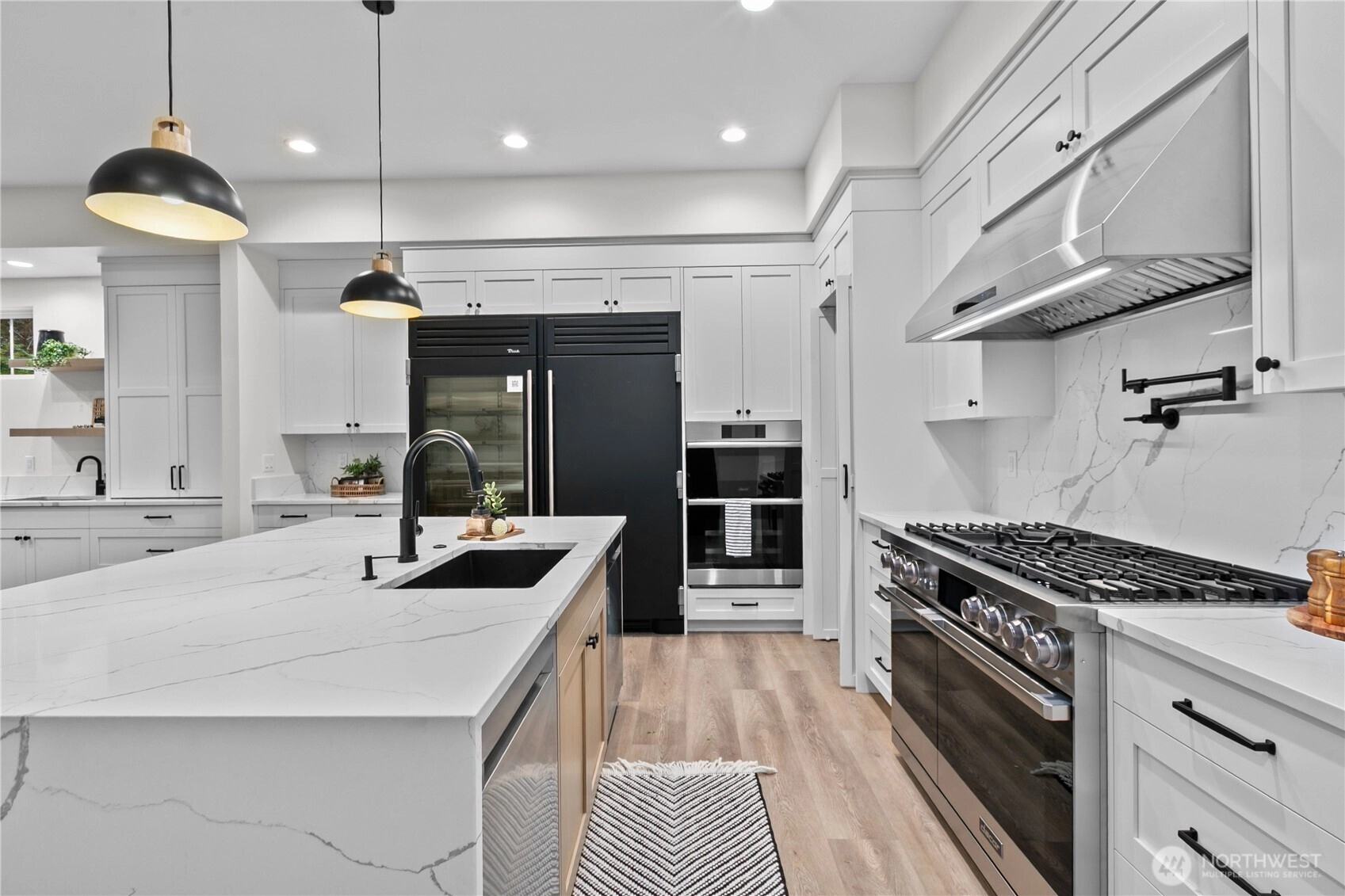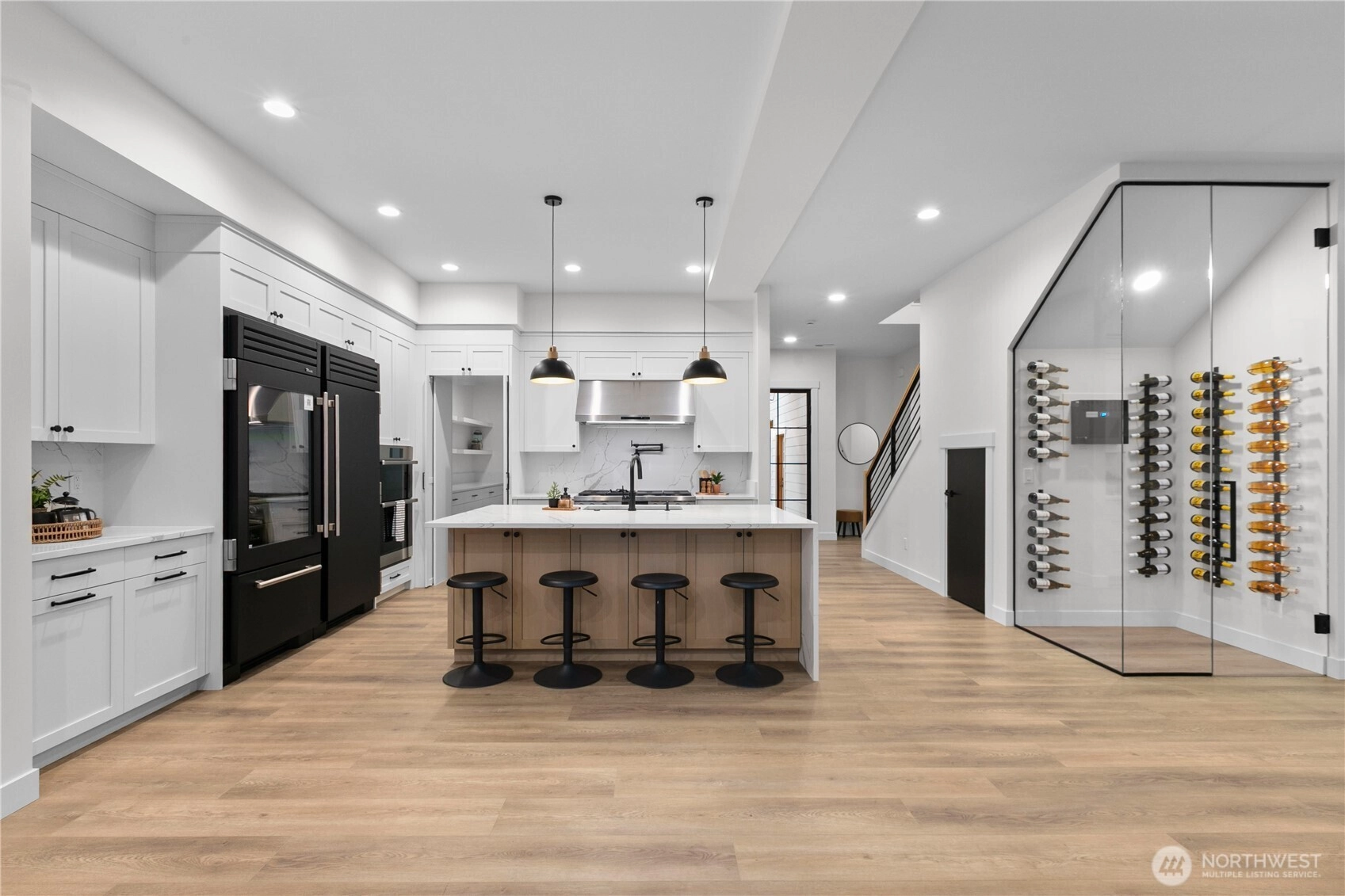 Experience refined smart home living in this exceptional Lynden retreat—nestled among evergreens & in town. Step inside to discover a chef’s dream kitchen true Caliber refrigerator/freezer, double ovens & hidden butler’s pantry. Living area boasts a stunning glass-enclosed, UL-certified wine fridge. Main-floor primary suite is pure indulgence with a steam shower, soaking tub, walk-in closet & private laundry. Remote/app-operated privacy glass opens to an inviting outdoor kitchen & spacious yard bordering scenic walking trails. The oversized RV bay offers versatility—perfect for gym, batting cages, or indoor hoops. Thoughtful built green design & quiet surroundings create a one-of-a-kind haven walking distance from down town! Welcome Home!