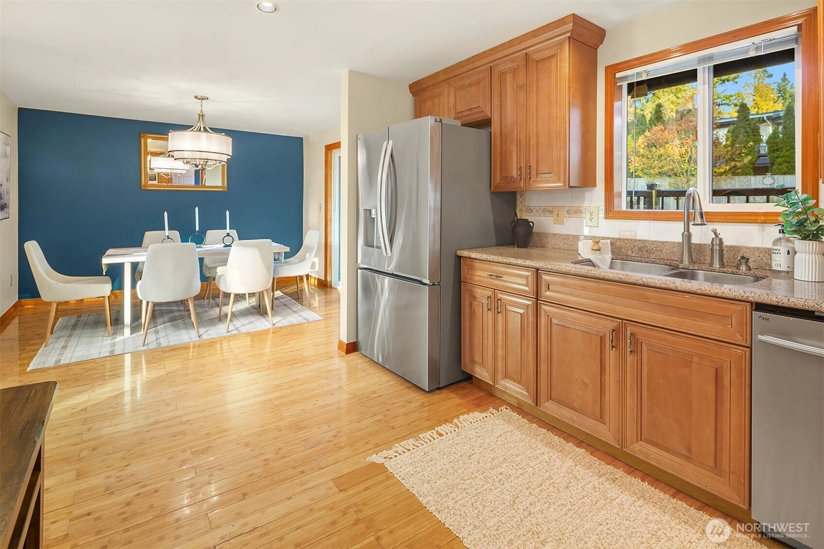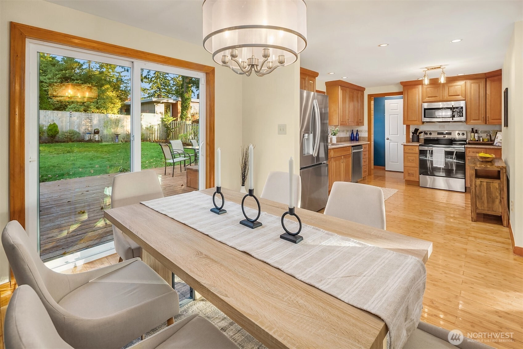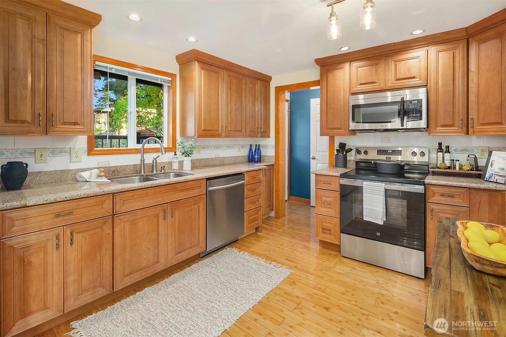 Step through the front door into a massive living room flooded with natural light from expansive west facing windows. The functional layout flows seamlessly into a well-appointed kitchen, next to the spacious dining area featuring a large glass door that opens to an incredible back deck and a sun-drenched yard, perfect for entertaining, relaxing, or play. Tucked away on a quiet street, just around the corner from the beautiful Kruckeberg Botanic Garden and close to amenities including dining, coffee, bowling, and frozen yogurt. The primary suite offers a peaceful retreat with ample space and a private en suite bathroom. Downstairs boasts a sprawling family room, 4th bedroom, bathroom, laundry room, storage. Complete with Air conditioning!
