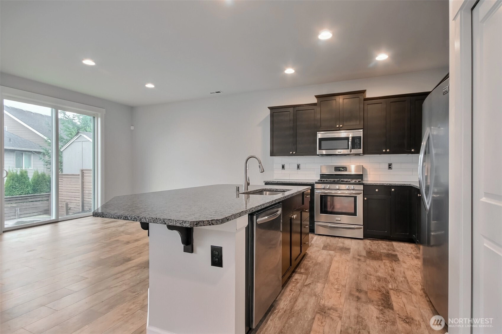 This is a must see home in the quiet hilltop of the Edgewood Community. With 5 bedroom, 2.75 baths, and a large bonus room you will have an abundance of space with endless possibilities. Main floor features open concept living and dining ideal for hosting guests. A Chef's kitchen with granite countertops, SS appliances, gas stove, and large island flowing seamlessly into a dining area and living room featuring a gas fireplace. Laundry, 3/4 bath, and bedroom 1 is conveniently located on the main floor. Large Primary Bedroom with 5 piece ensuite bath and walk in closet is found upstairs along with 3 generously sized bedrooms, full bath, and large bonus room. Priced to sell!