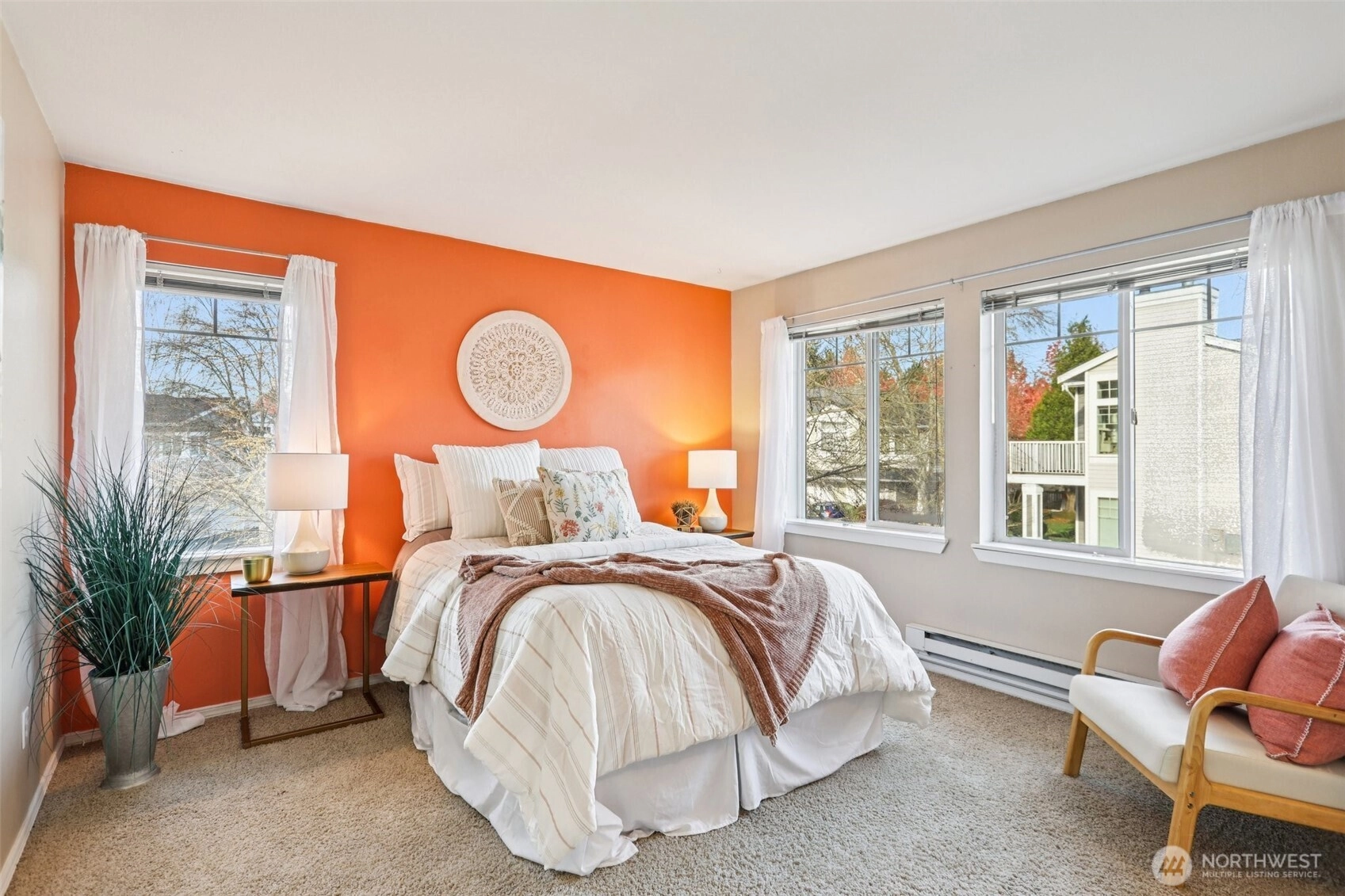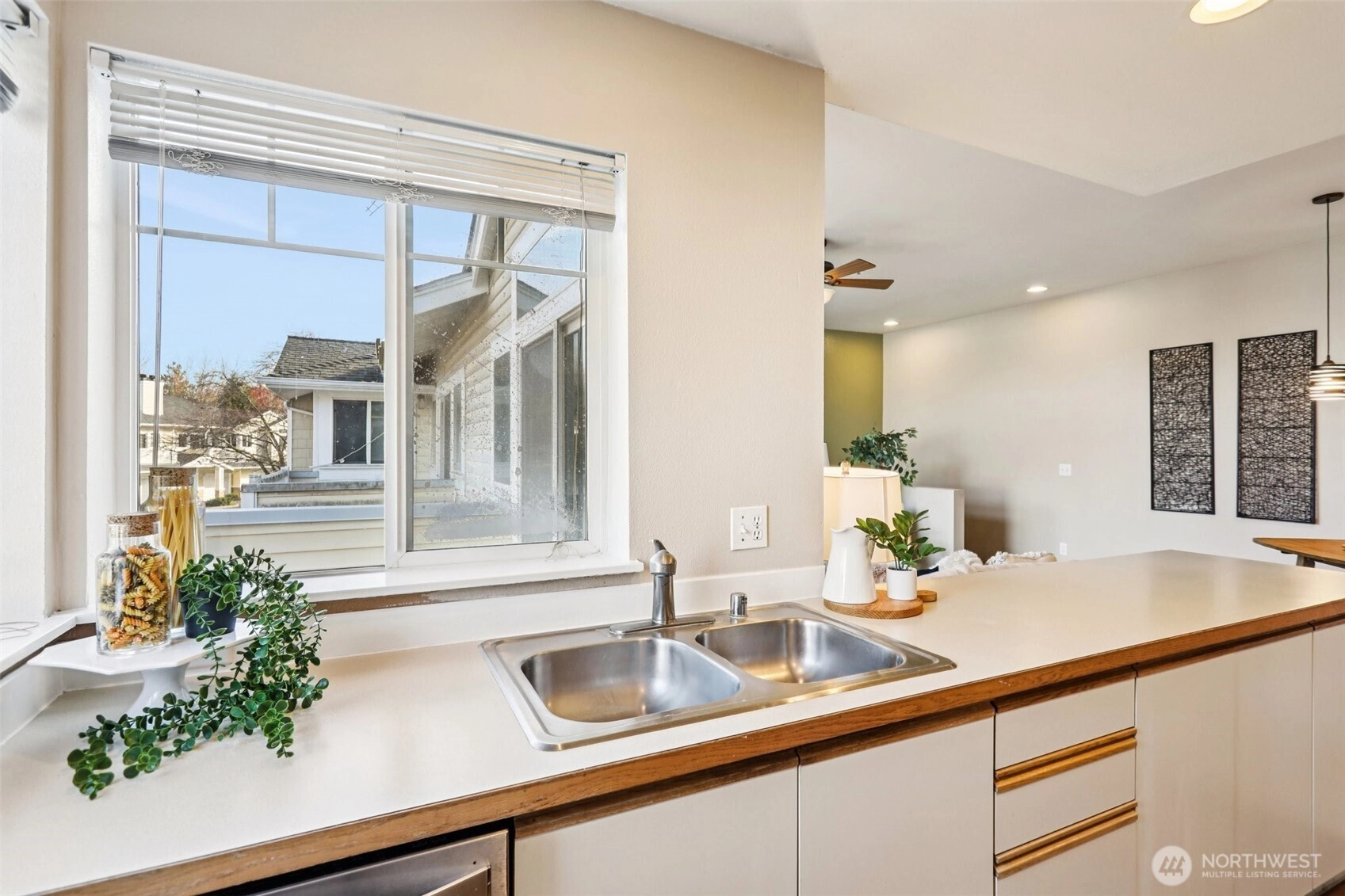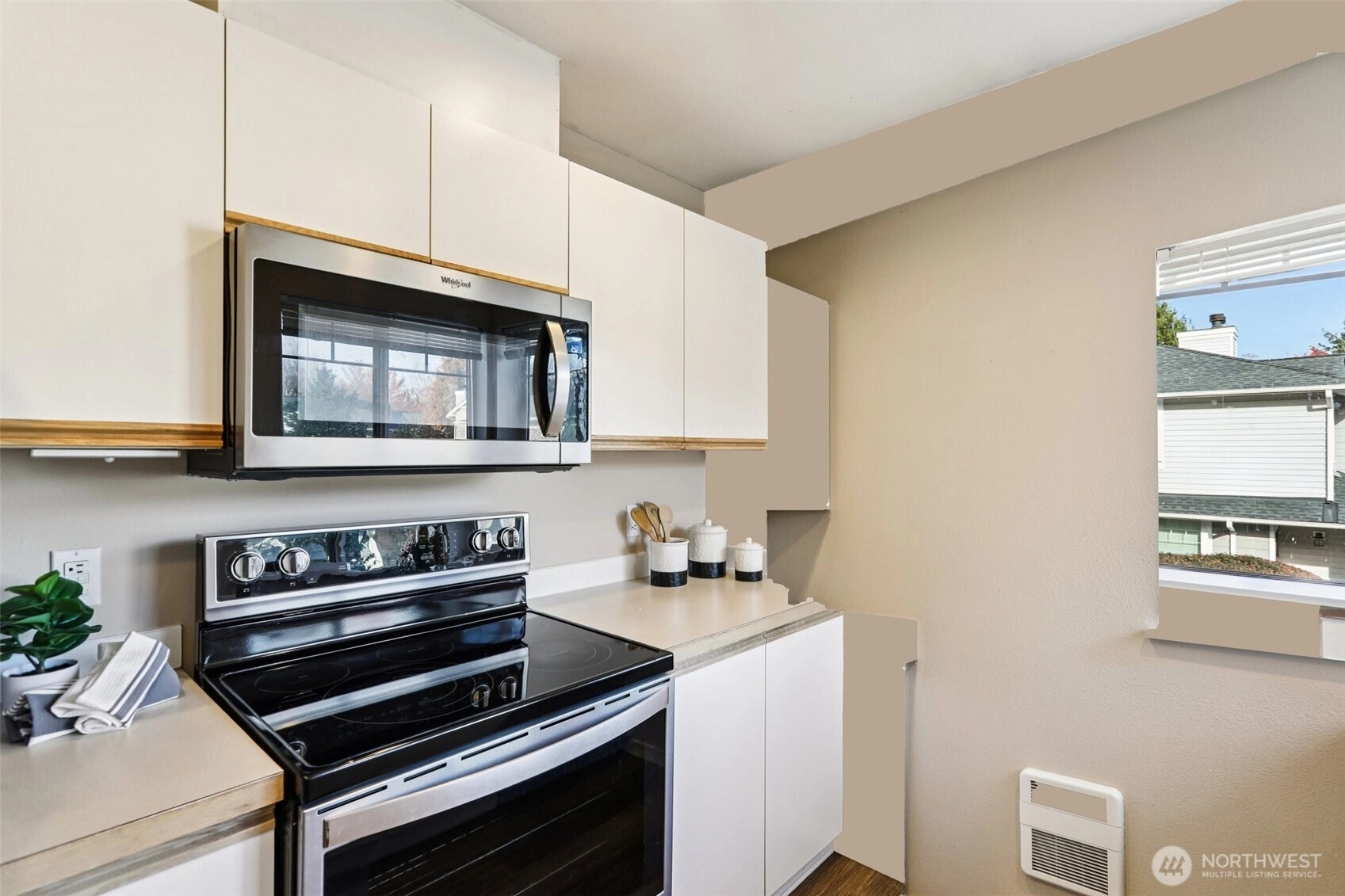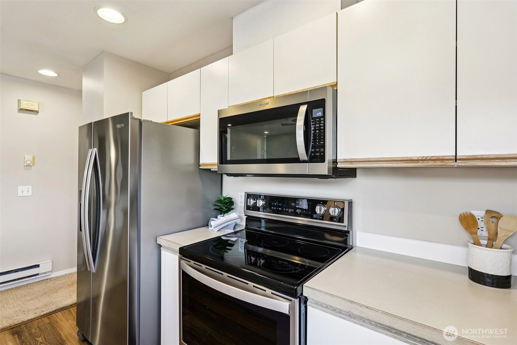 Welcome to Harbor Reach - an exceptional condominium complex at The Lakes. Enjoy a spacious Kitchen w/open living space, designated Dining area, Primary Bed with a large custom California Closet. All appliances stay. Enjoy a cozy wood-burning fireplace, private patio, attached individual garage with extra storage space w/built-in shelving, and nearby visitors' parking. Recently updated with fresh interior paint and new windows. The community features a clubhouse with a kitchen and gathering area, exercise room, hot tub, and sauna. Great location close to Kent Station, Riverbend Golf Complex, and the ShoWare Center. This is a must-see condo!!