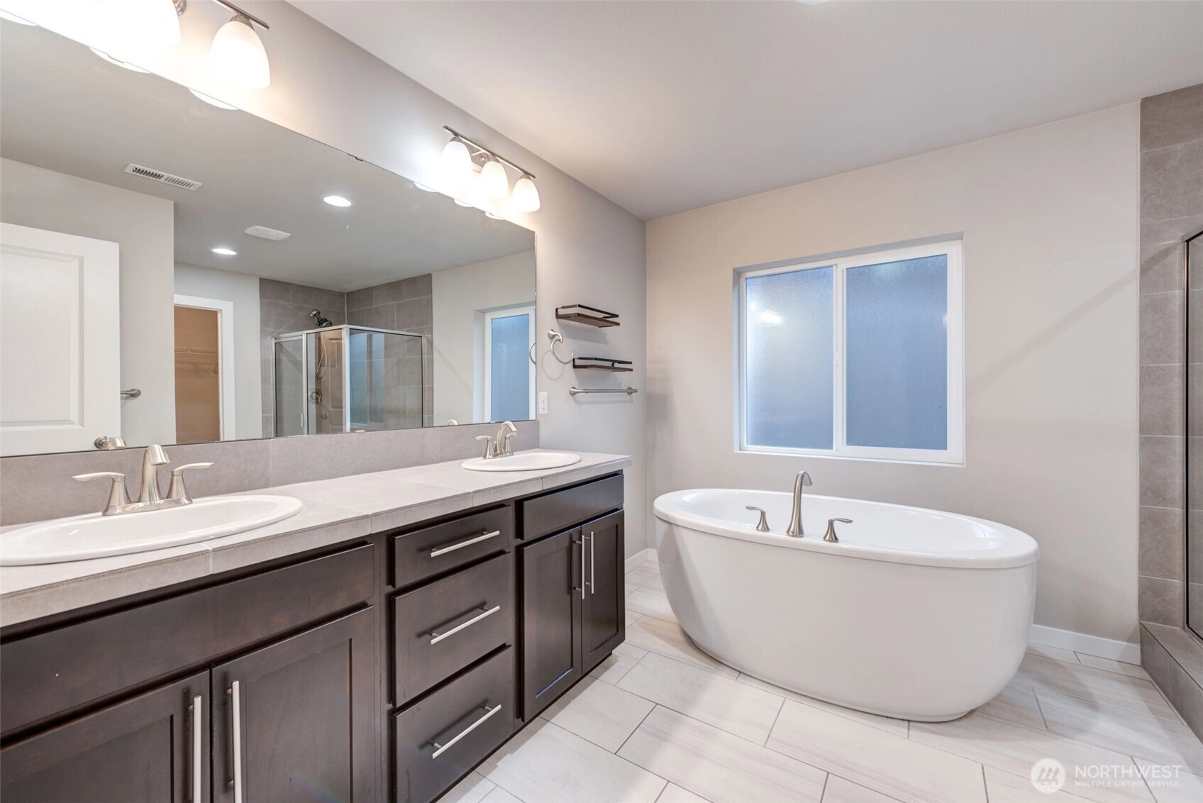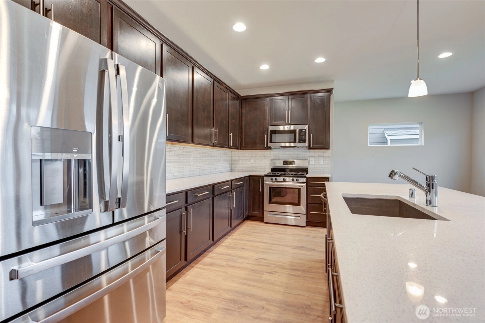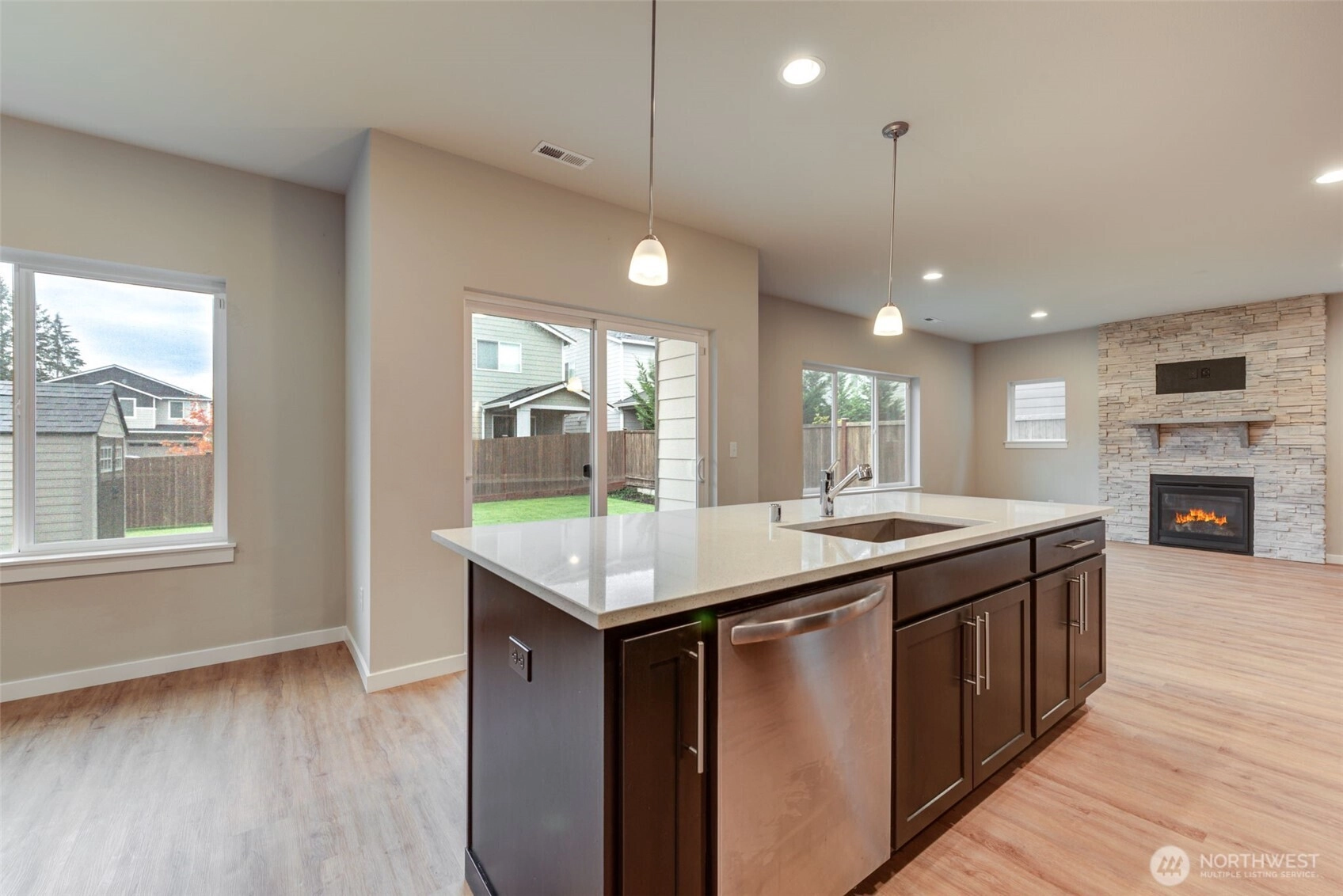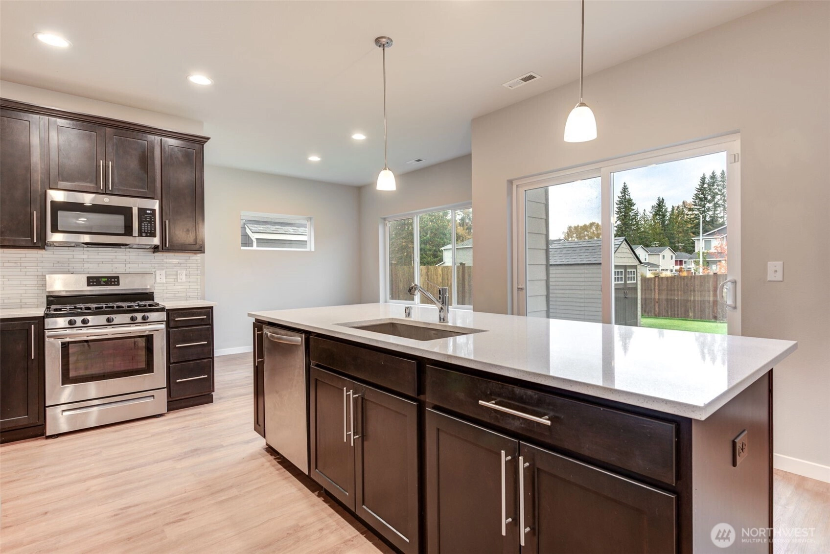 Welcome Home! The extra wide entryway is so inviting! This Home feels like it is Brand NEW! New Carpet and LVP Flooring! Light, Bright, Open, Clean, and Beautiful! The kitchen boasts beautiful Sparkling Quartz Countertops, Oversized Island to enjoy breakfast or visit while entertaining, and a TON of Natural Light! Curl up by the Romantic gas fireplace just in time for the Holidays! The Primary suite has statement making double doors, an ensuite bathroom and a Giant Soaking tub to relax in after a long day at work. Lake Stevens School District, Close to shopping, Minutes to I-5 and Hwy 9. Step out back into your low maintenance back yard, extended patio, and focus your time on what is really important! Enjoy your new memories!