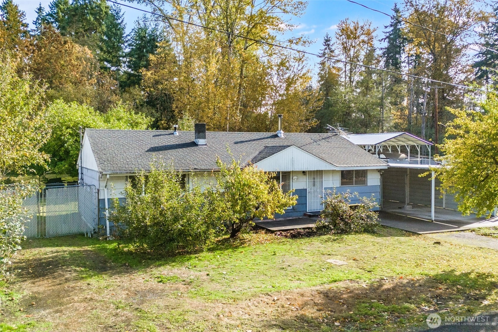 Fabulous investor opportunity awaits with this 3 bedroom rambler situated on a huge lot on a dead end street! Ready for your renovations or look into future building potential with RM3600 zoning. Home offers an oversized primary bedroom and spacious living room with a ductless mini-split unit for heat and A/C. Home also has a wood burning fireplace to stay cozy during the winter. Vinyl windows in most rooms. In addition to the full bath, one bedroom has private sink, second bedroom has additional toilet installed in closet. Covered carport fits two cars. Huge, level backyard has fruit trees, two storage sheds, and a side entry gate for RV or boat storage. Easy drive to commuter routes and Federal Way shopping. Don't miss out!