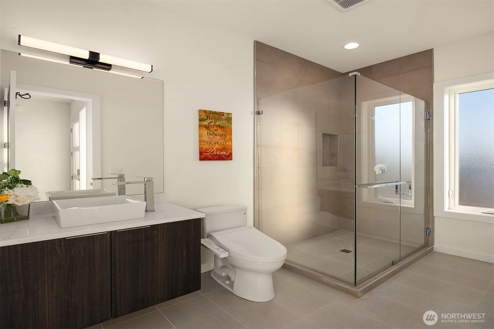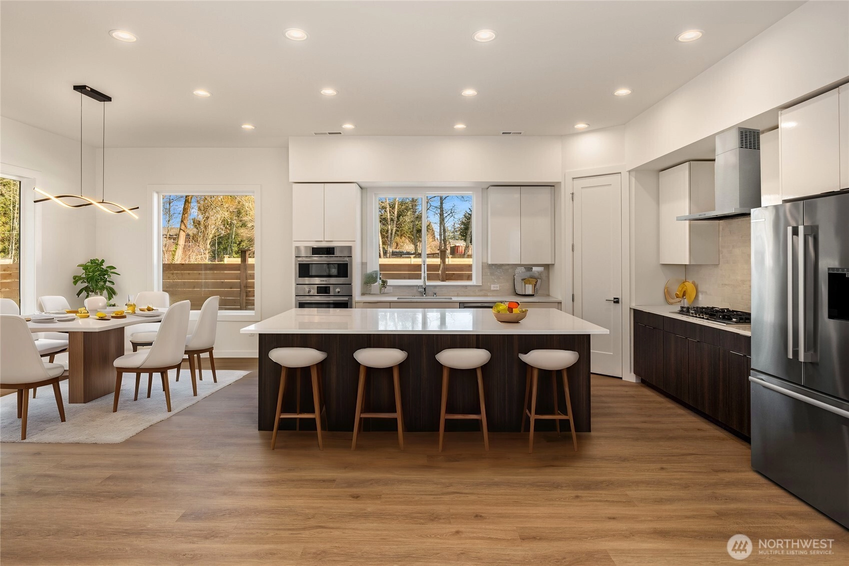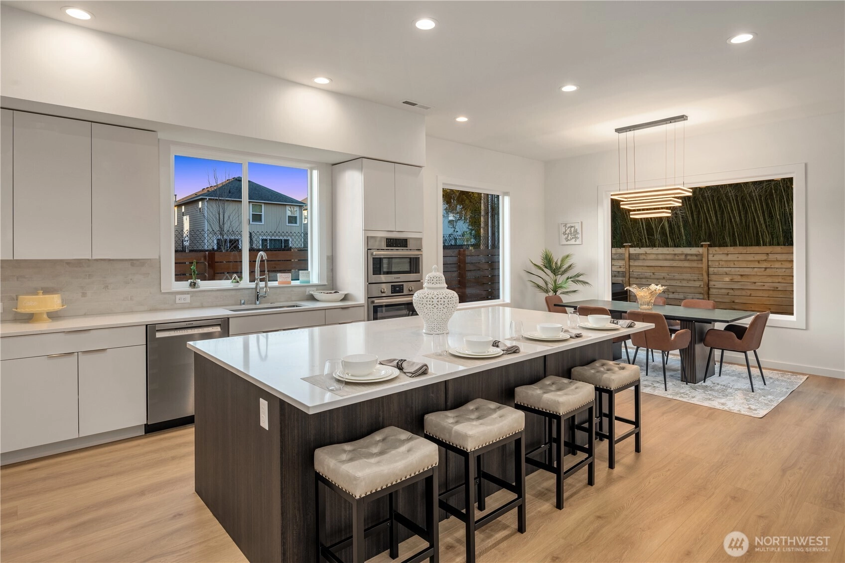 PRICE IMPROVEMENT HOME , LOT 1 , New Luxury Homes By Datta Homes, A prime spot w/ easy commute to Bellevue and Seattle modern NW contemporary design, open layout with 10-ft ceilings and 8-ft doors on the main level, main-level office & bedroom w/ 3/4 bath. Entertain in style w/ a chef's dream kitchen & island off spacious great room, 142 sq ft outdoor room for indoor-outdoor experience. High-end features abound: Bosch SS appliances (fridge included), 3cm Quartz counters, European cabinetry, and luxury fixtures (Grohe, Kohler, DVX, Toto) throughout. primary suite comes with a 5-star bath, spacious walk-in closet. e -charging.