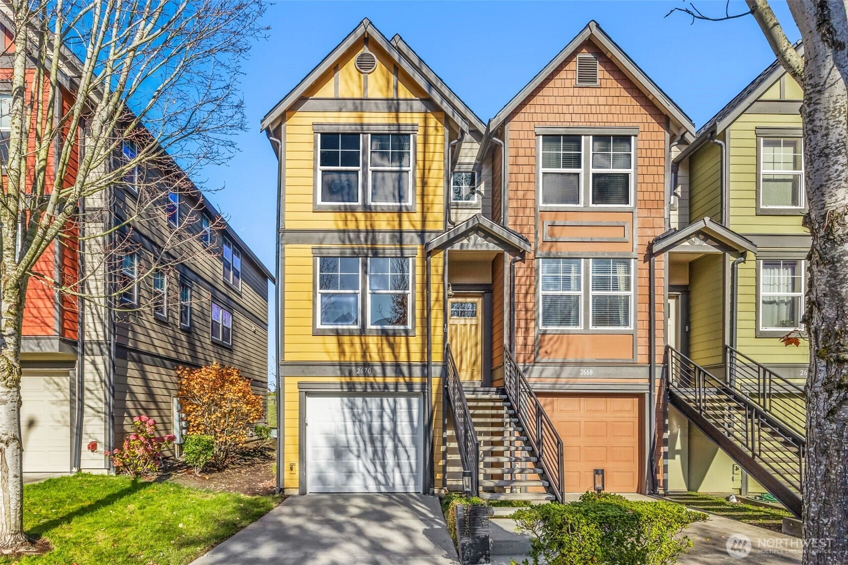 Tucked along a tree-lined street, this refreshed end-unit townhome welcomes you instantly! Sunlight pours in through the walls of windows, and the open main level was made for connection. Gather around the dual-sided gas fireplace, or entertain in the spacious kitchen with its high-end Wolf range, generous island, and off-kitchen balcony. Upstairs, vaulted ceilings and new carpet provide a light-filled retreat, with two oversized bedrooms and a bonus nook that’s perfect for a home office or cozy reading corner. Downstairs, the tandem garage has HVAC and closet space, making it ready for a den or bedroom addition. Low HOA dues cover landscaping, exterior paint, roof, and community insurance, keeping ownership simple.
