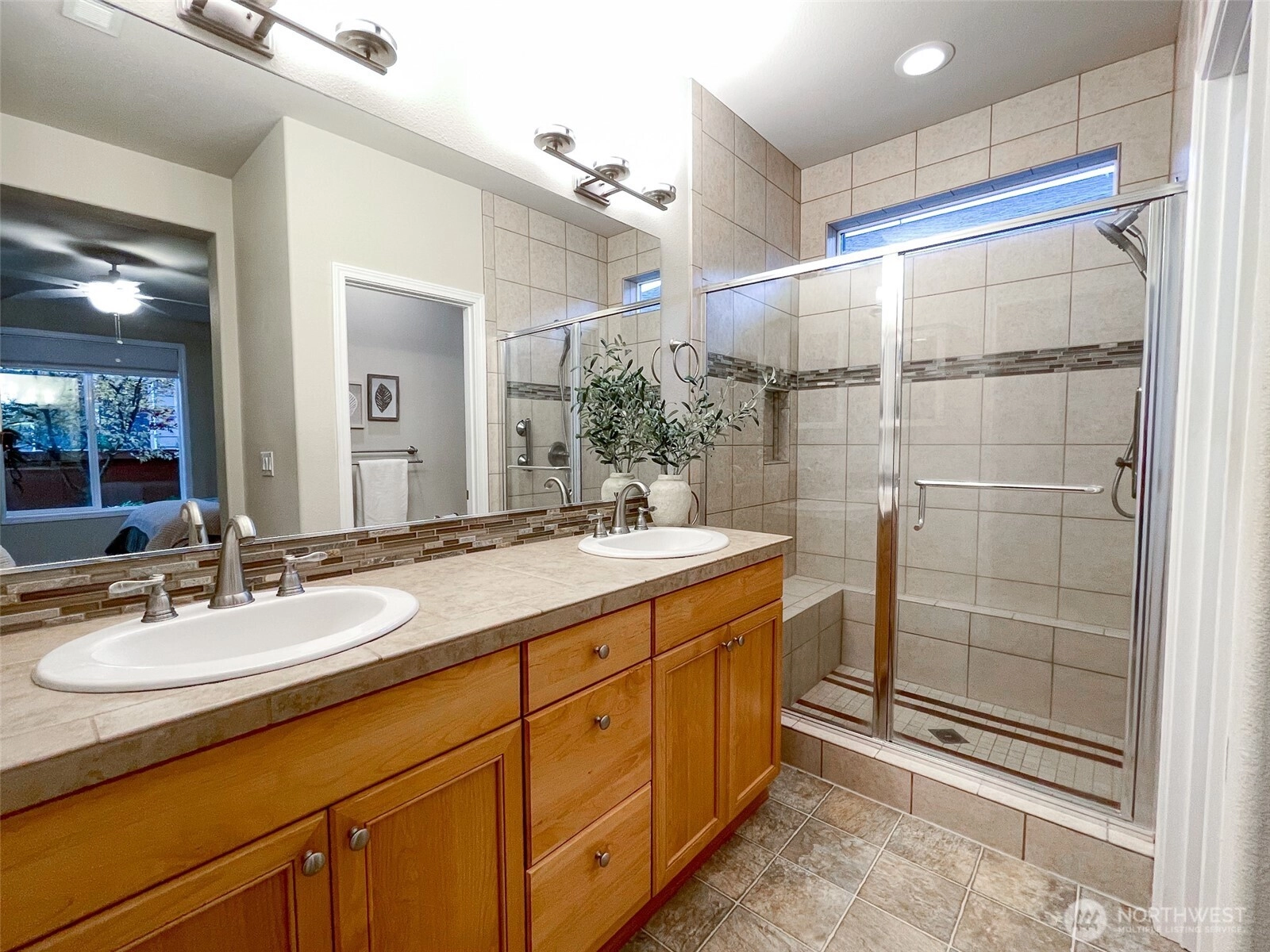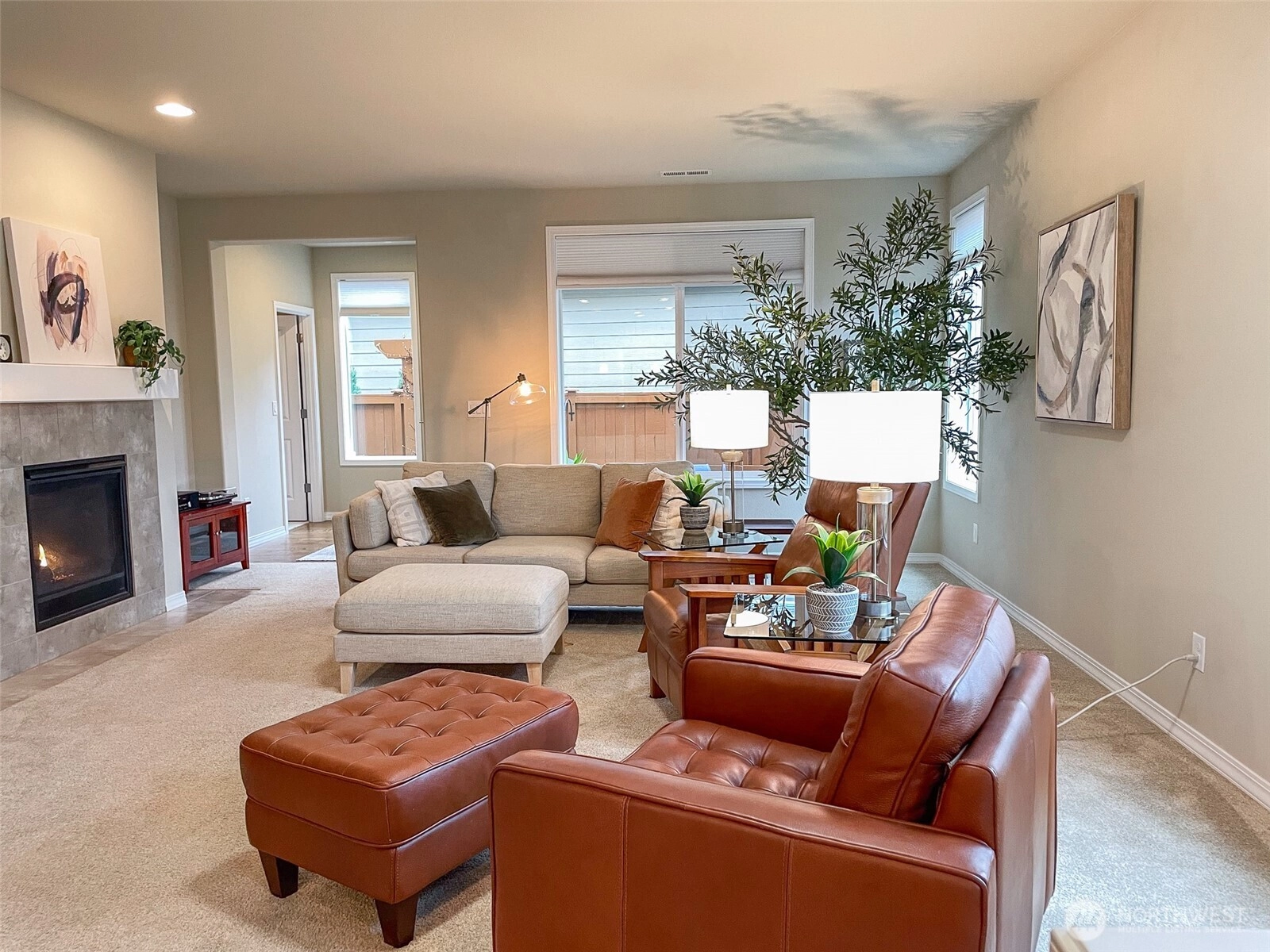 Welcome home to Jubilee, the PNW premier 55+ community. This meticulous rambler offers 3 bedrooms (3rd bed functioning perfectly as a flex/office w/closet), 1.75 baths, and 1,617 sq ft of inviting living space. Situated on a 8,000 sq ft lot w/room to roam + privacy. The open-concept design w/natural light, features beautiful floors & a cozy gas fireplace. The chef’s kitchen boasts granite counters, SS appliances, and generous counter space. The spacious primary suite includes a walk-in closet & en-suite w/step-in shower. A fully fenced, low-maintenance yard offers a peaceful setting. Resort-style amenities include a lodge/indoor saltwater pool/clubhouse/fitness center/golf/tennis, & walking trails to Puget Sound. HOA covers front yard care.