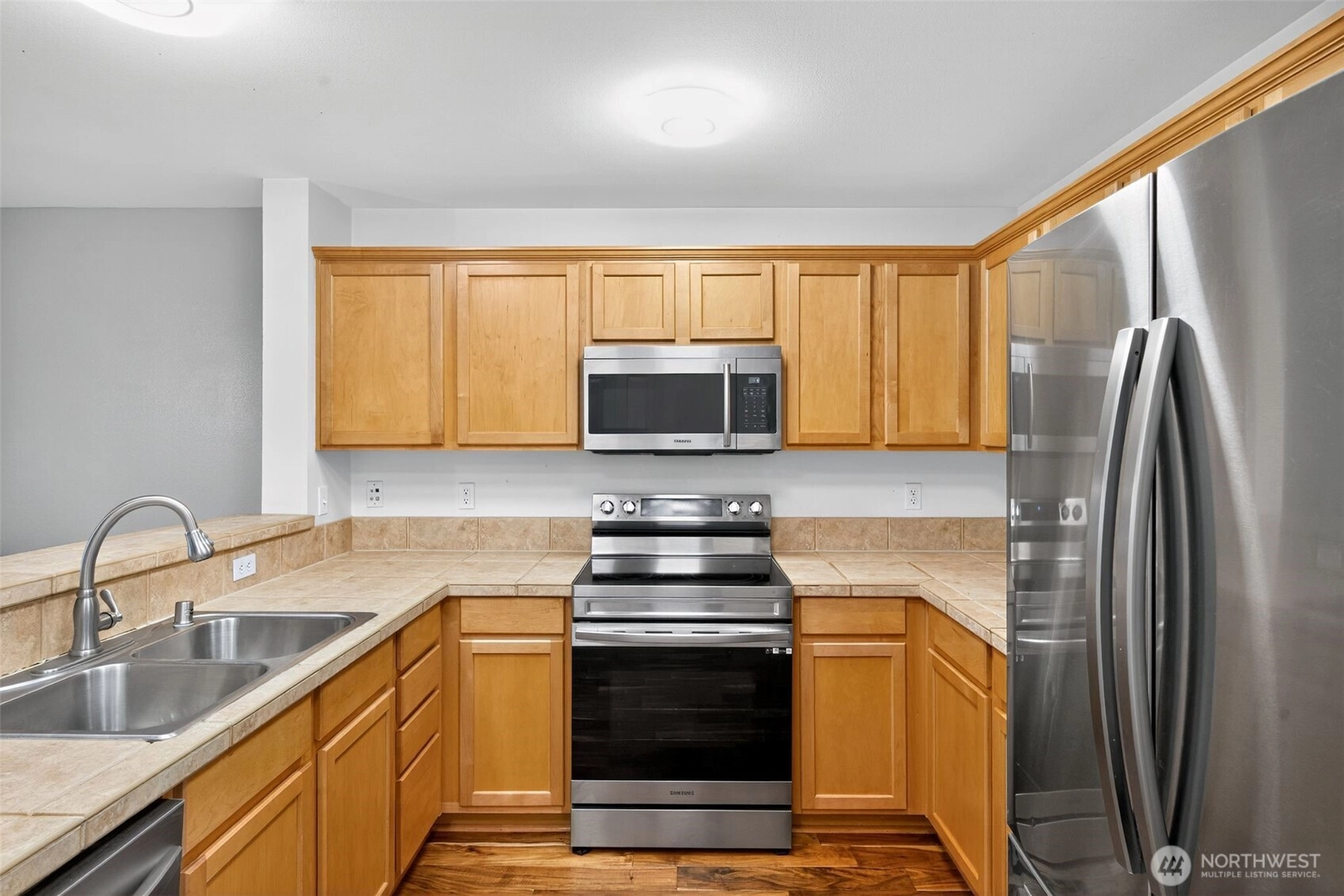 Welcome to this unique opportunity to enjoy the best of the Issaquah Highlands. This private, spacious end-unit condo offers two bedrooms and two beautifully updated bathrooms. The open layout provides a generous kitchen with upgraded SS kitchen appliances, flowing seamlessly into the dining and living areas. Recent upgrades include a new water heater, fresh paint, fully remodeled bathrooms, updated lighting, a thoughtfully designed primary closet, and upgraded electrical. Relax and take in nightly panoramic sunset views from the welcoming patio. With parks, trails, and amenities—including tennis courts, just steps from your front door—you’ll love the convenience of this location. ARCH housing; income limits apply.