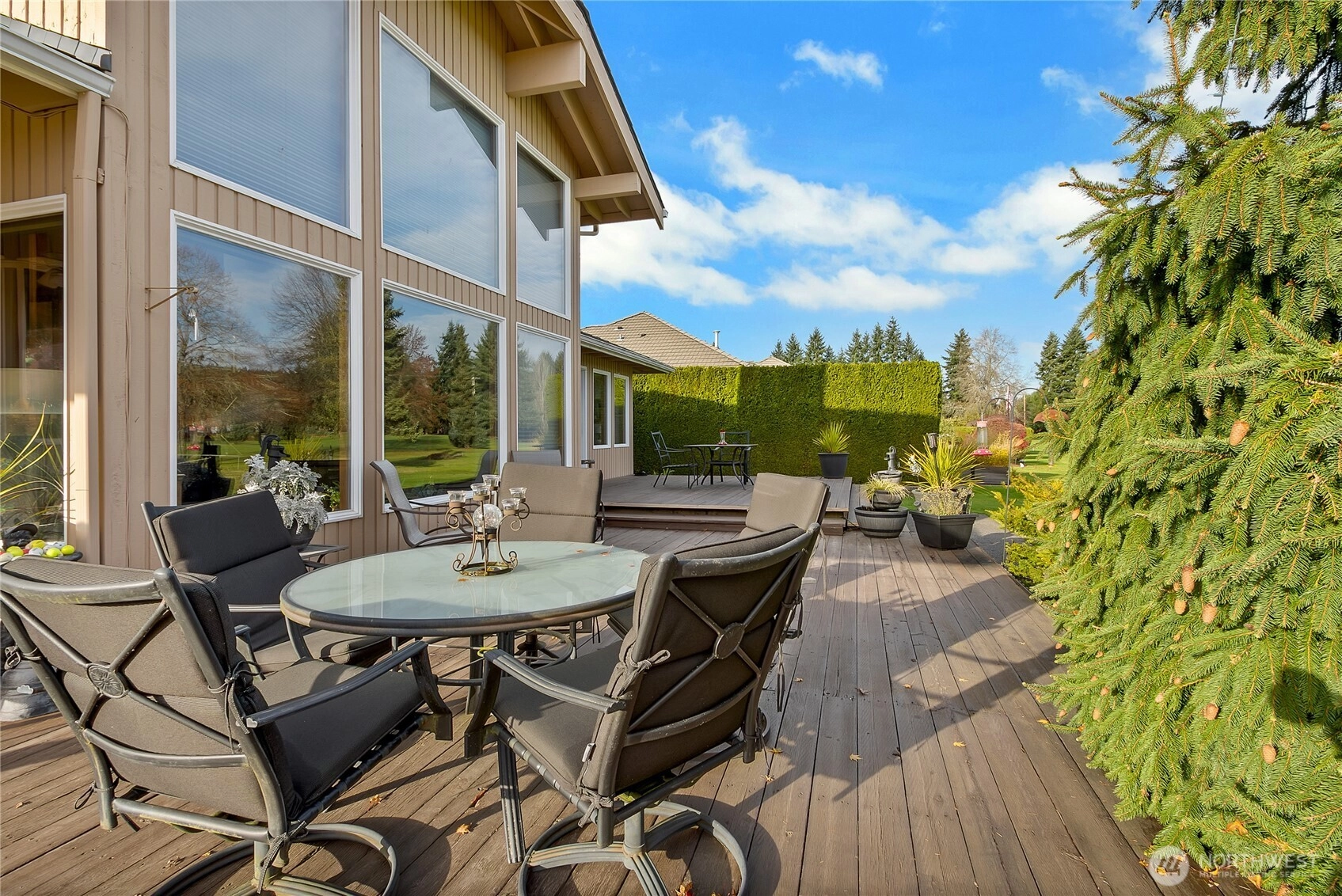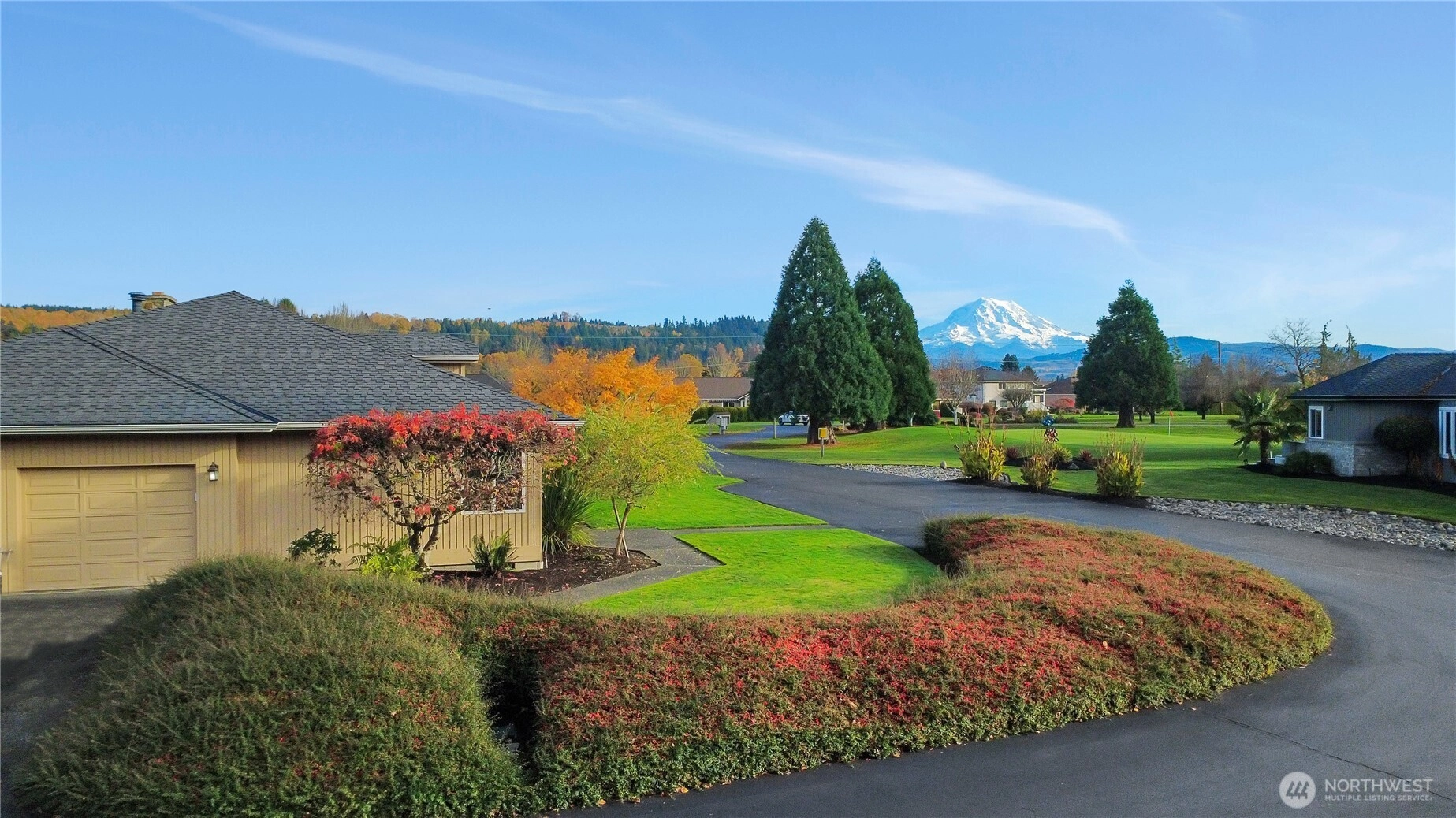 Beautifully maintained rambler in the Augusta sub-division at the High Cedars 27-hole Golf Course. Boasts stunning Mt. Rainier views & a spacious deck overlooking the Executive Nine’s 3rd tee. Features 3 bedrooms (one currently a den), 2 baths, plus an extra shower in mud/laundry room, a large island kitchen, cathedral ceilings, lots of natural light in living areas, plus a generous primary suite, with 5-piece bath & easy deck access. Brags newer roof & HVAC system with central air, inground sprinkler system, dual hot water tanks. Easy golf cart/walk access to clubhouse & chef run restaurant, close to Sumner or Orting city services, schools, more. *Golf course homes do not come up very often, it won't disappoint, come "stay where you play!"