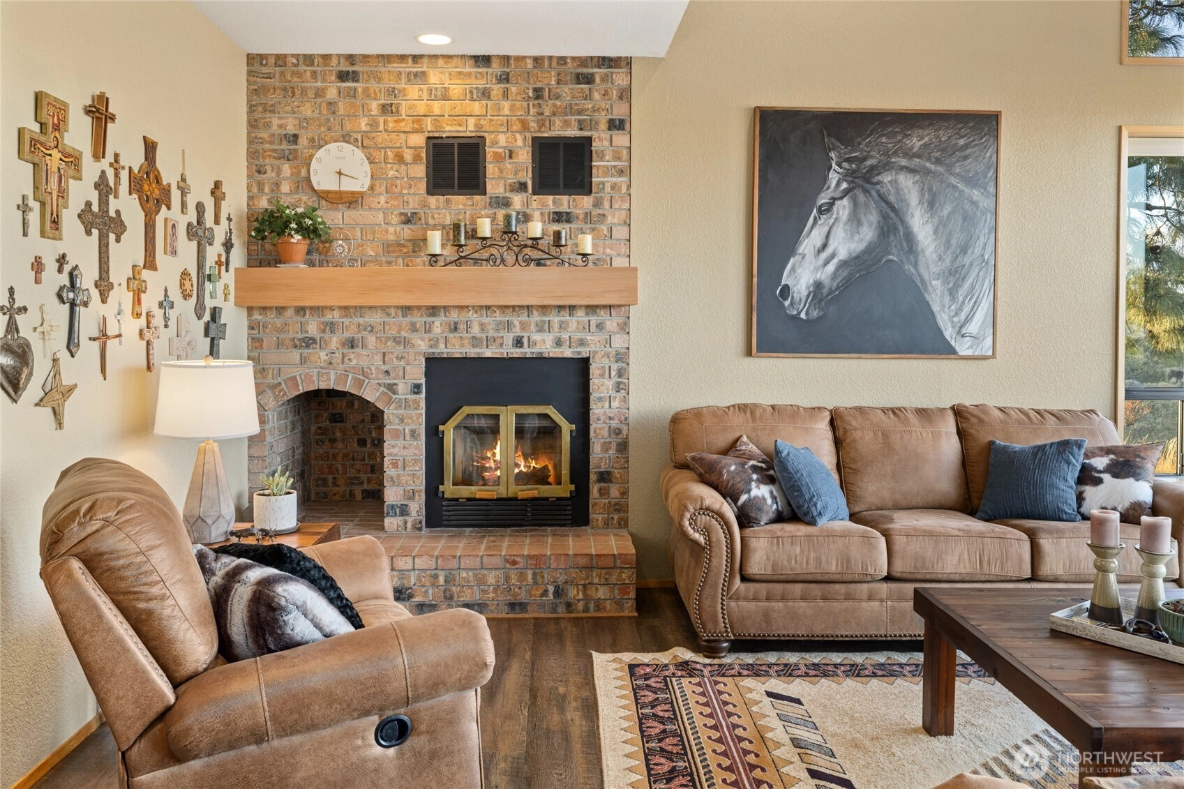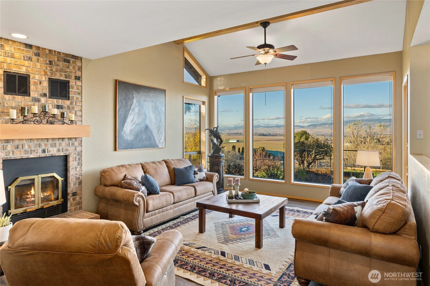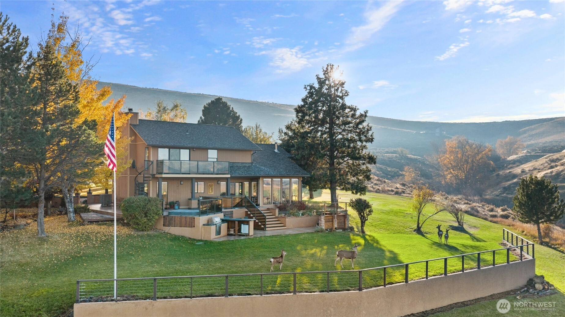 Enjoy sweeping views of the Kittitas Valley and Stuart Mountains from every room of this beautifully updated 2,488 sq ft hillside home on 3.46 irrigated acres! Features 3 bedrooms, 2.5 baths, an office, granite countertops, custom cabinetry, updated flooring, lighting, baths, and a new heat pump & air handler (2024). Outdoor living shines with multiple patios, hot tub, firepit, and full outdoor kitchen. Lush grounds boast fruit trees, berries, herbs, and flowering perennials with abundant wildlife passing through. Located in the Damman School District and just minutes from town—your Ellensburg retreat awaits!