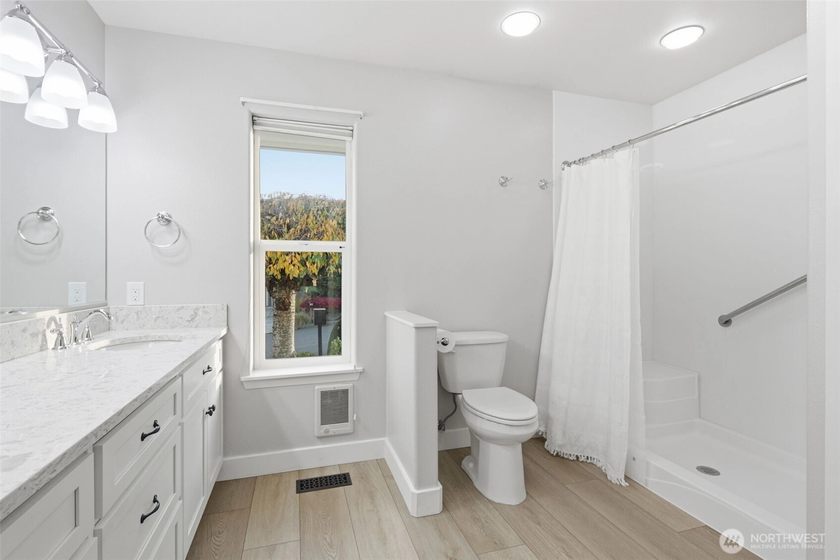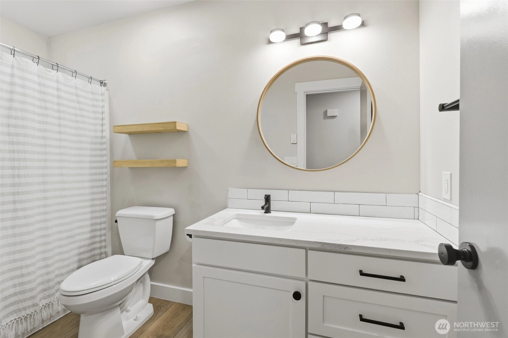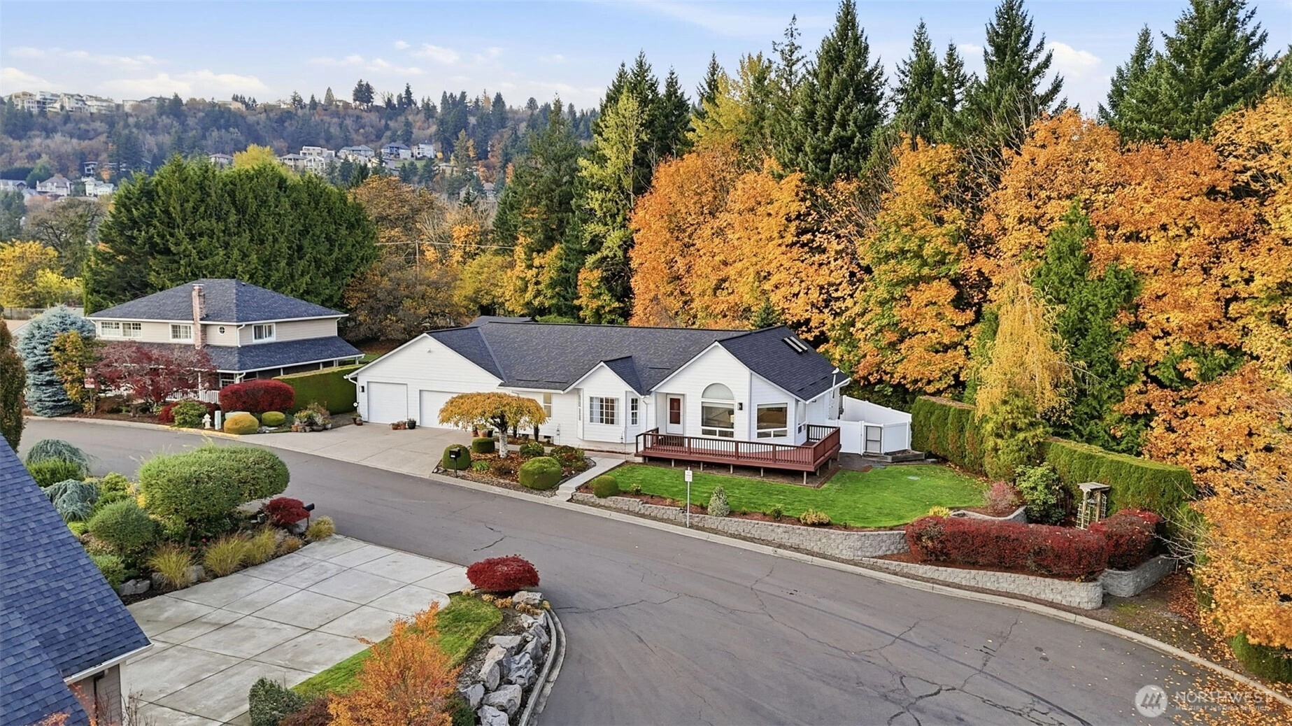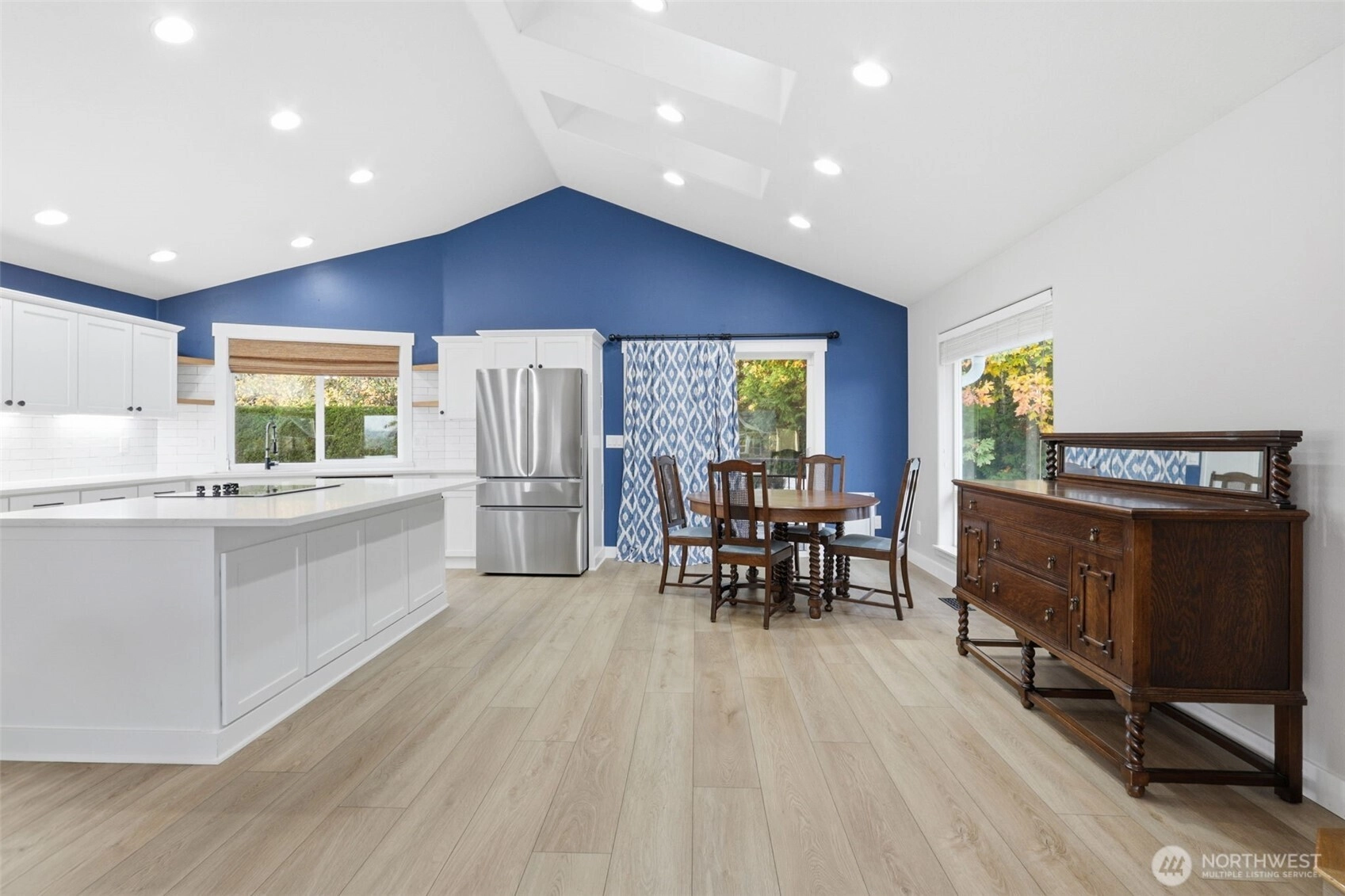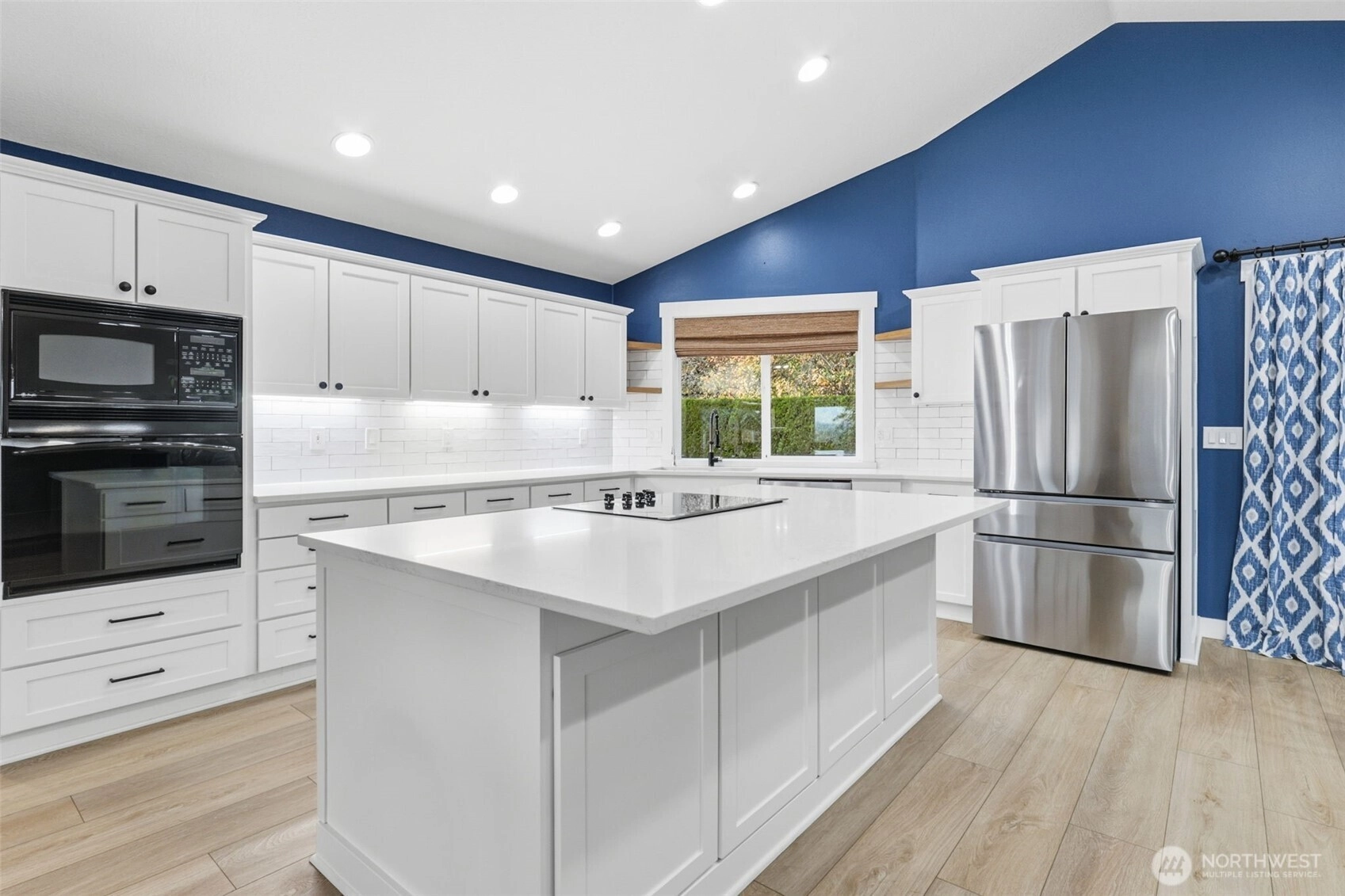 Welcome home to this beautifully updated one-level retreat on a quiet Camas cul-de-sac! Bright and airy with vaulted ceilings, skylights, and open-concept living. The remodeled kitchen features white shaker cabinets, subway tile, a large island with cooktop, and stainless appliances. The spacious primary suite includes a spa-like bath with double vanity, walk-in shower, and custom closet. Two additional bedrooms, modern bath, luxury vinyl floors, and large laundry room add comfort. Enjoy a newer 50-year roof, deep garage with 220V power, and private ¼-acre lot with deck and toolshed. Just minutes from Downtown Camas, Columbia Palisades, shops, restaurants and more!