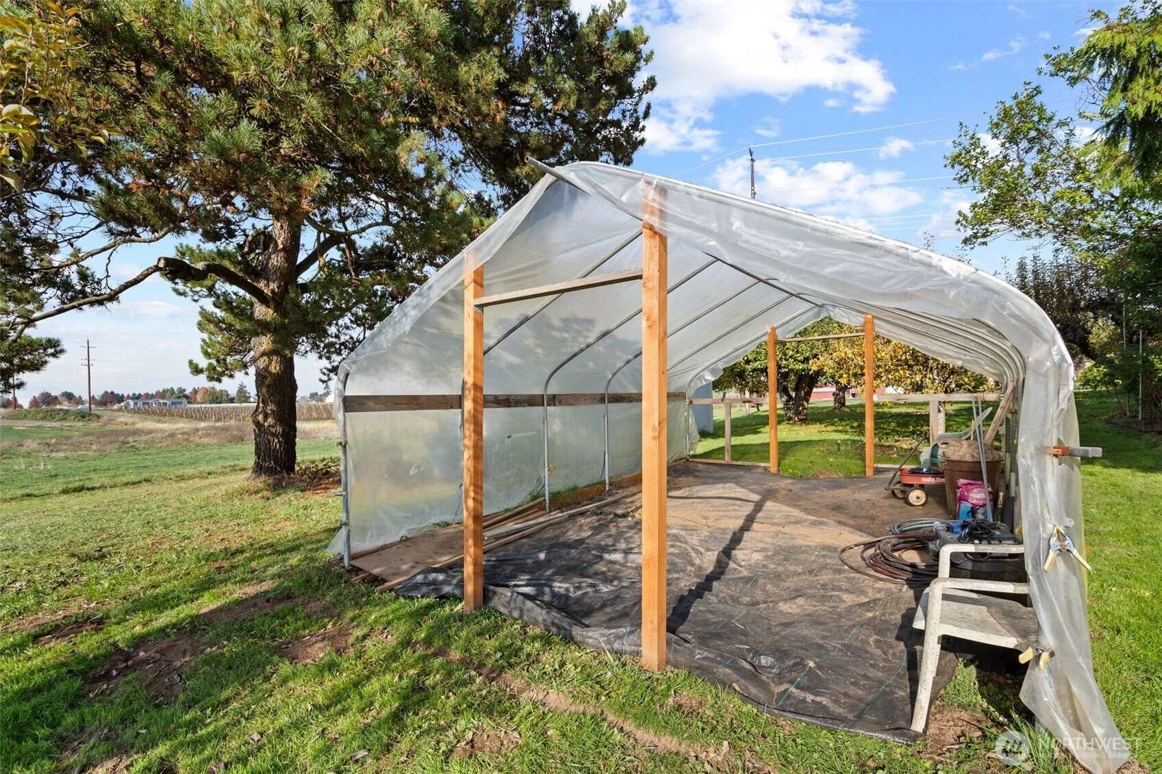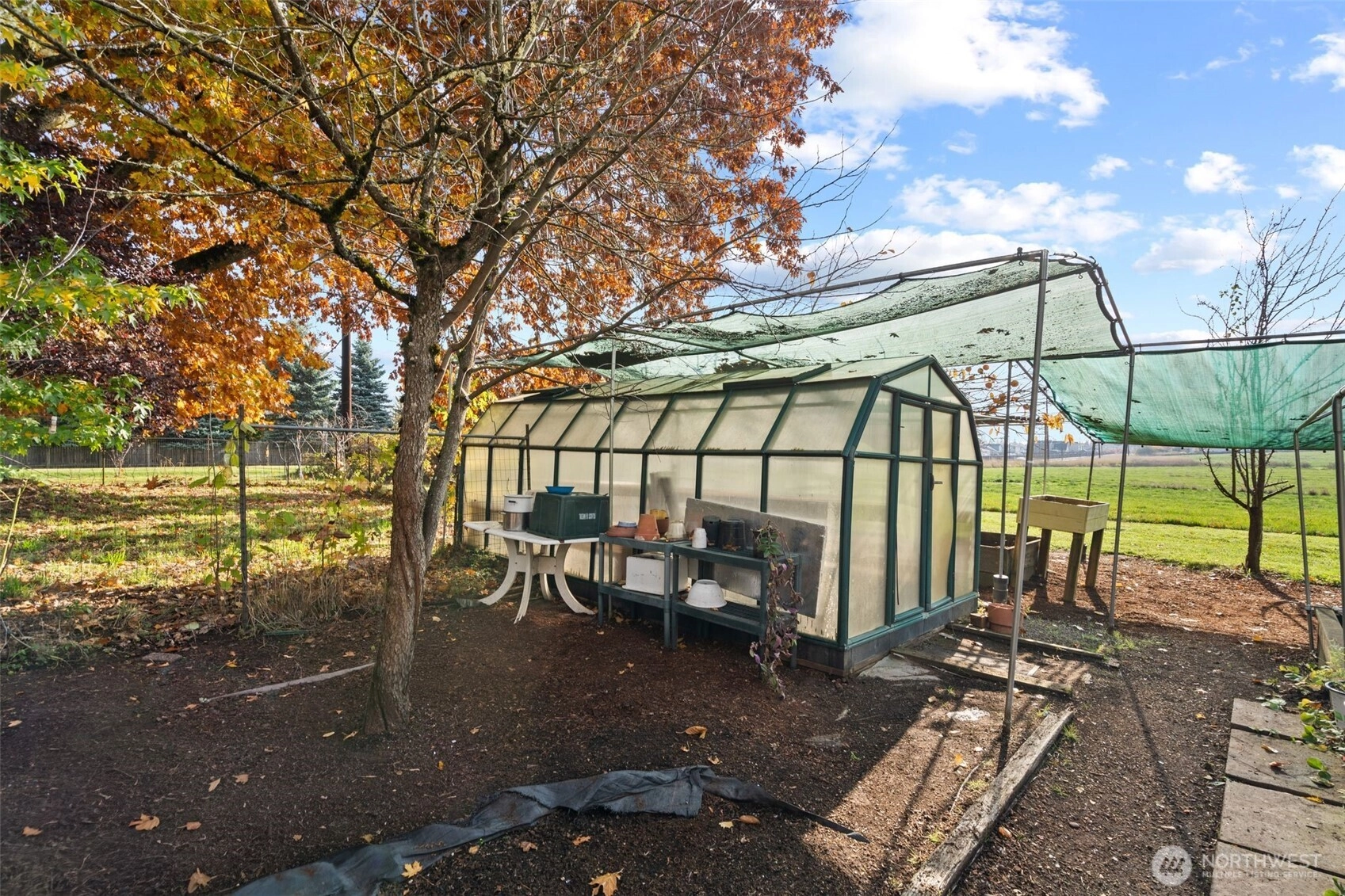 Gardener’s paradise on 1.07 acres in Ridgefield! Lovingly cared for by a Master Gardener, this 3BD/1.5BA home is surrounded by grass fields and bursting with life. Enjoy mature and productive persimmon, apple, cherry, pear, hazelnut, and fig trees, plus grapes, raspberries, blackberries, and every variety of blueberry—even pink lemonades! Two greenhouses, a hoop house, shed, koi pond with waterfall, and raised beds make this a dream hobby farm. Fresh paint, new carpet, newer roof, and a 24x30 oversized garage. Room to build a shop! Move-in ready and minutes to town.