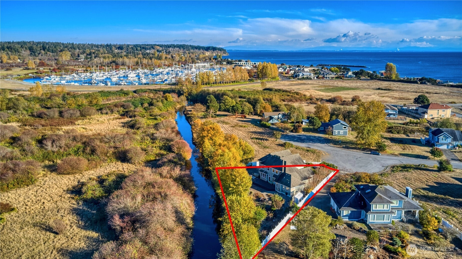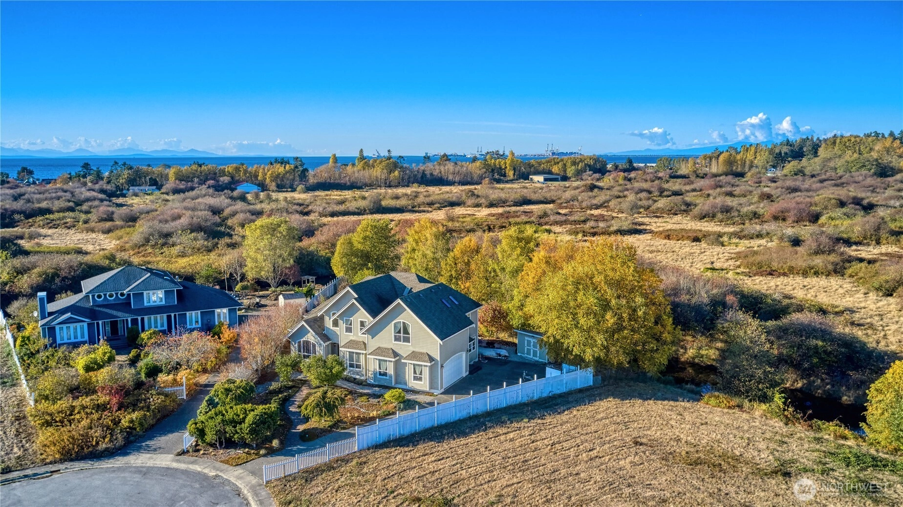 One of the most exceptional homes in Point Roberts! Custom designed and build to the highest standards with the best of everything. Quiet cul de sac & the large sunny rear lot backs onto 229 ft of canal/lake frontage. Very private. Main floor with 20+ high ceilings with 10 ft on the balance. Massive windows everywhere fill the home with sunshine. 3 beautiful propane fireplaces, 2nd kitchen, cozy den. Open floor plan with large kitchen, island & family room. Solid hardwood floors, skylights, huge rooms, & the main floor primary bedroom is truly a retreat. An easy walk to the marina+private beach access and beach rights. Offered WAY under replacement but shows like a new home! Large patios & decks, fruit trees & large sunny garden area!