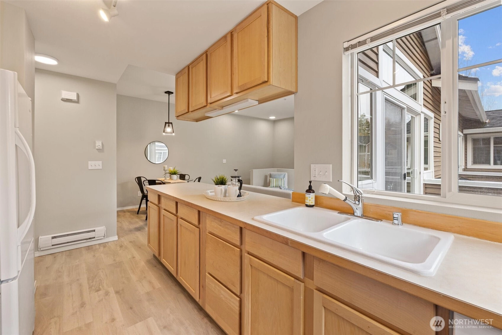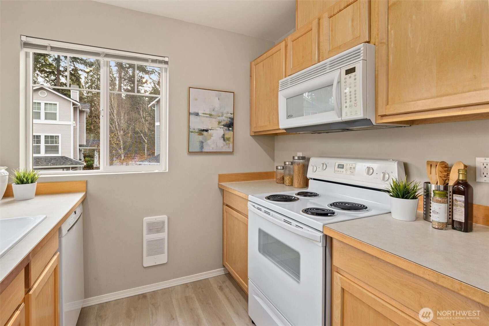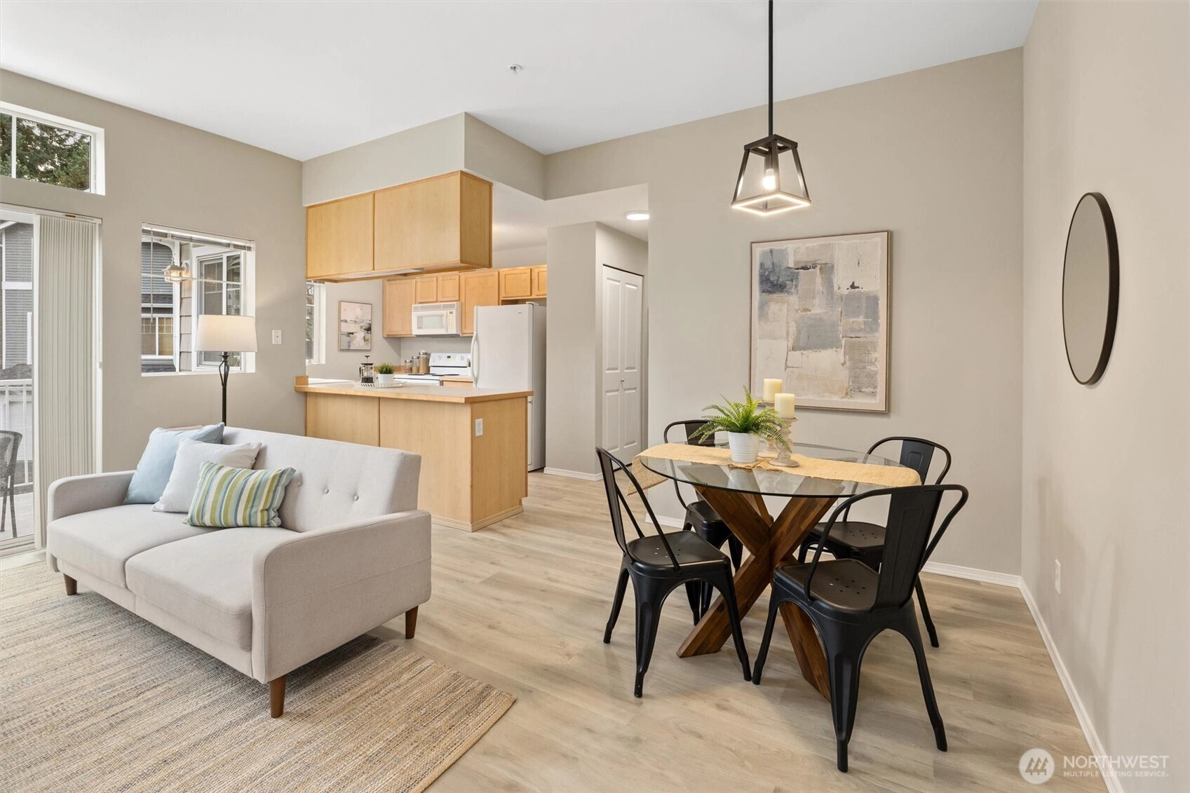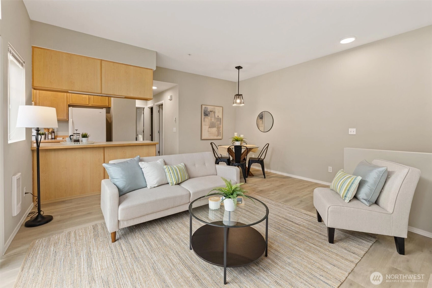 Well-maintained condo w/attached garage in desirable Magnolia at Highlands East! Updates include fresh paint, new LVP flooring & carpet, lighting, garage door opener/components & newer roof. Home features light & bright living room w/cozy fireplace that opens to private deck, kitchen w/ample storage, bedroom w/walk-in closet, spacious bathroom & laundry room, plus a beautiful Cherry Blossom tree at the entry. Community features parks, play areas, & walking path. Ideal location right next to Willis Tucker trail/park featuring an off-leash dog area, picnic shelters, baseball & soccer fields, amphitheater, splash pad, playground & events including farmer’s market, movie nights + more! Easy access to Highway 9, I-5, I-405, & downtown Snohomish!