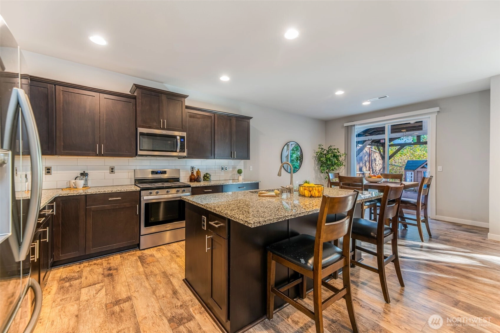 Stunning 5-bed, 2.75-bth home in the desirable Timbers community of Lake Stevens! This spacious home features an open concept floor plan designed for modern living. The chef’s kitchen offers a large island with seating, SS appliances, and ample storage, perfect for entertaining. Enjoy an inviting living room with gas fireplace and dinning space with access to the back deck with covered pergola. A convenient main level bedroom and bath provide flexible living options. Upstairs, a luxurious primary suite with 2 walk-in closets and spa-like bath. Four additional bedrooms, utility room, plus a large bonus room ideal for media, play, or office space. Located near parks, shopping, restaurants, and top-rated Lake Stevens schools.