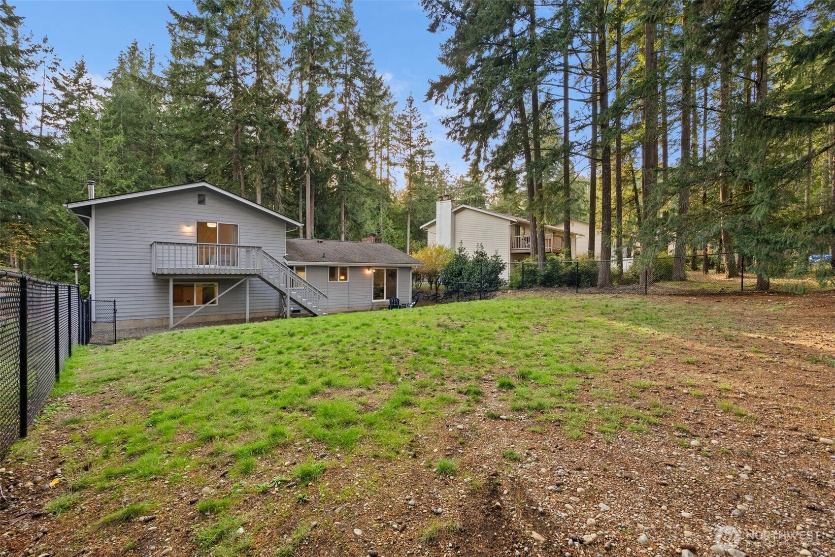 Tucked into a quiet Silverdale neighborhood lined with lush evergreens, this tri-level offers comfort, privacy and room to unwind. New easy-care flooring throughout lower levels and stylish lighting add a fresh feel to the spacious layout. The backyard is a true highlight -- fully fenced, expansive, and backed by a greenbelt. Primary suite opens to your upper deck -- perfect for AM coffee and PM unwinding. Stay cool with central A/C, and cozy in winter with 2 fireplaces. With quick access to highway, shopping, dining, and top-rated Central Kitsap schools, this peaceful retreat is close to everything, but feels a world away.