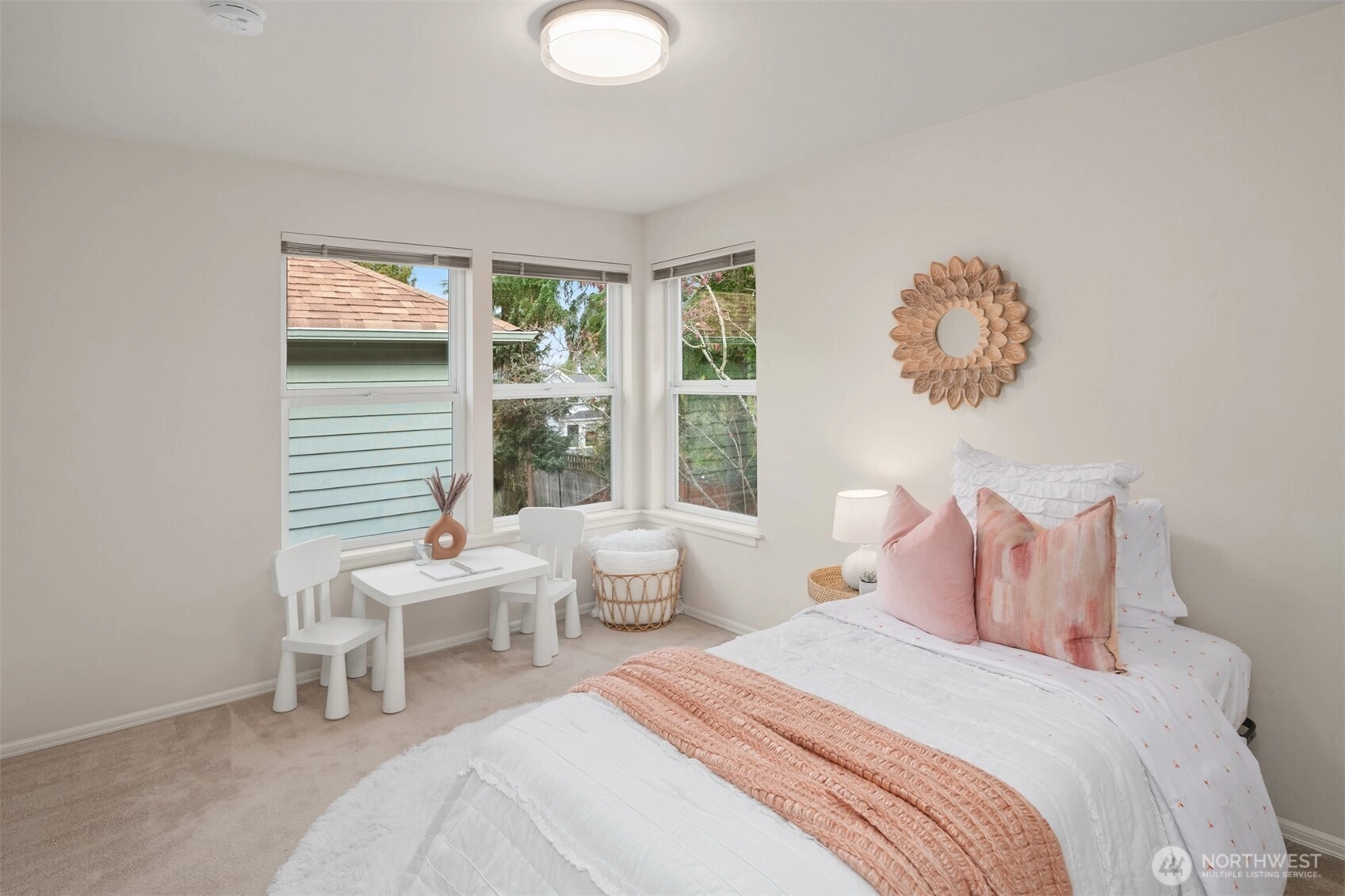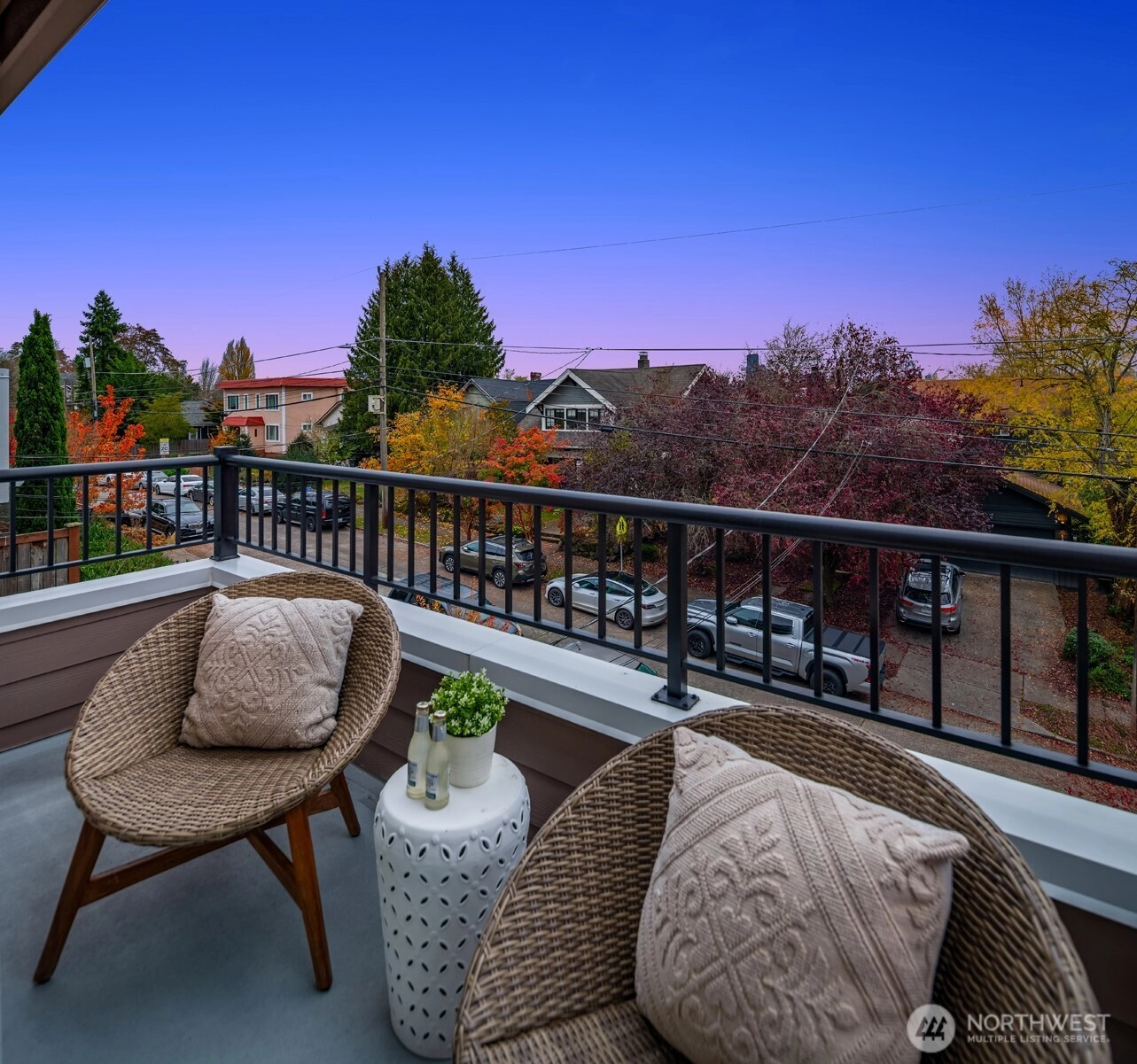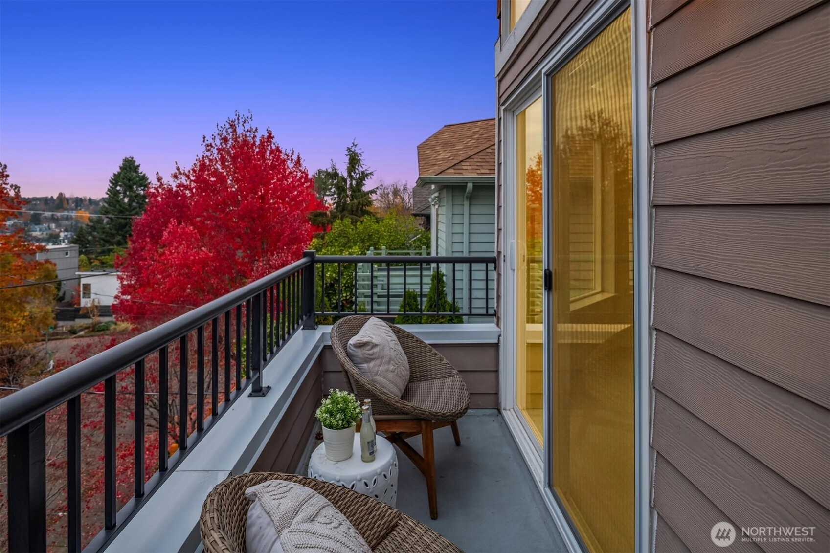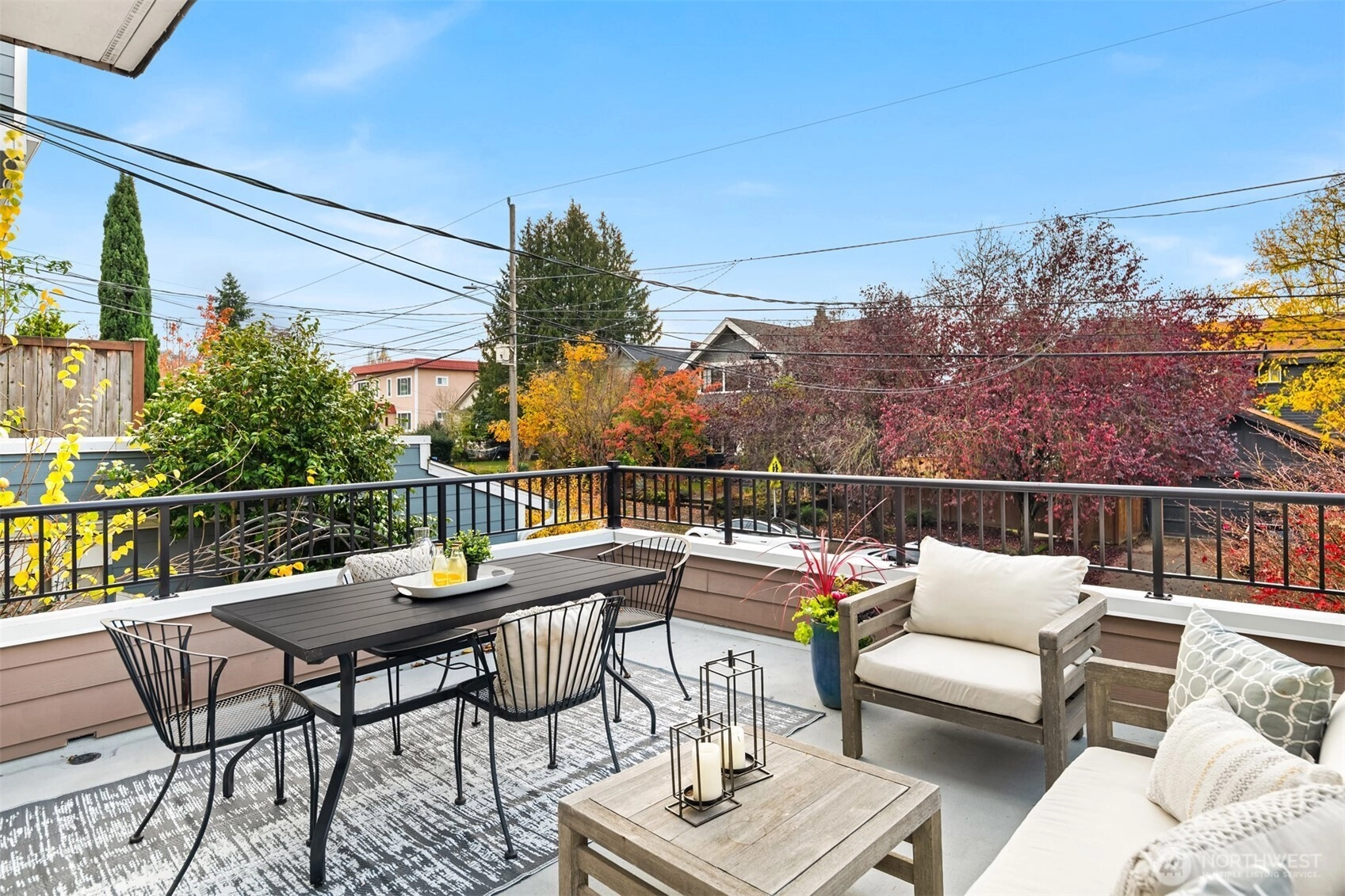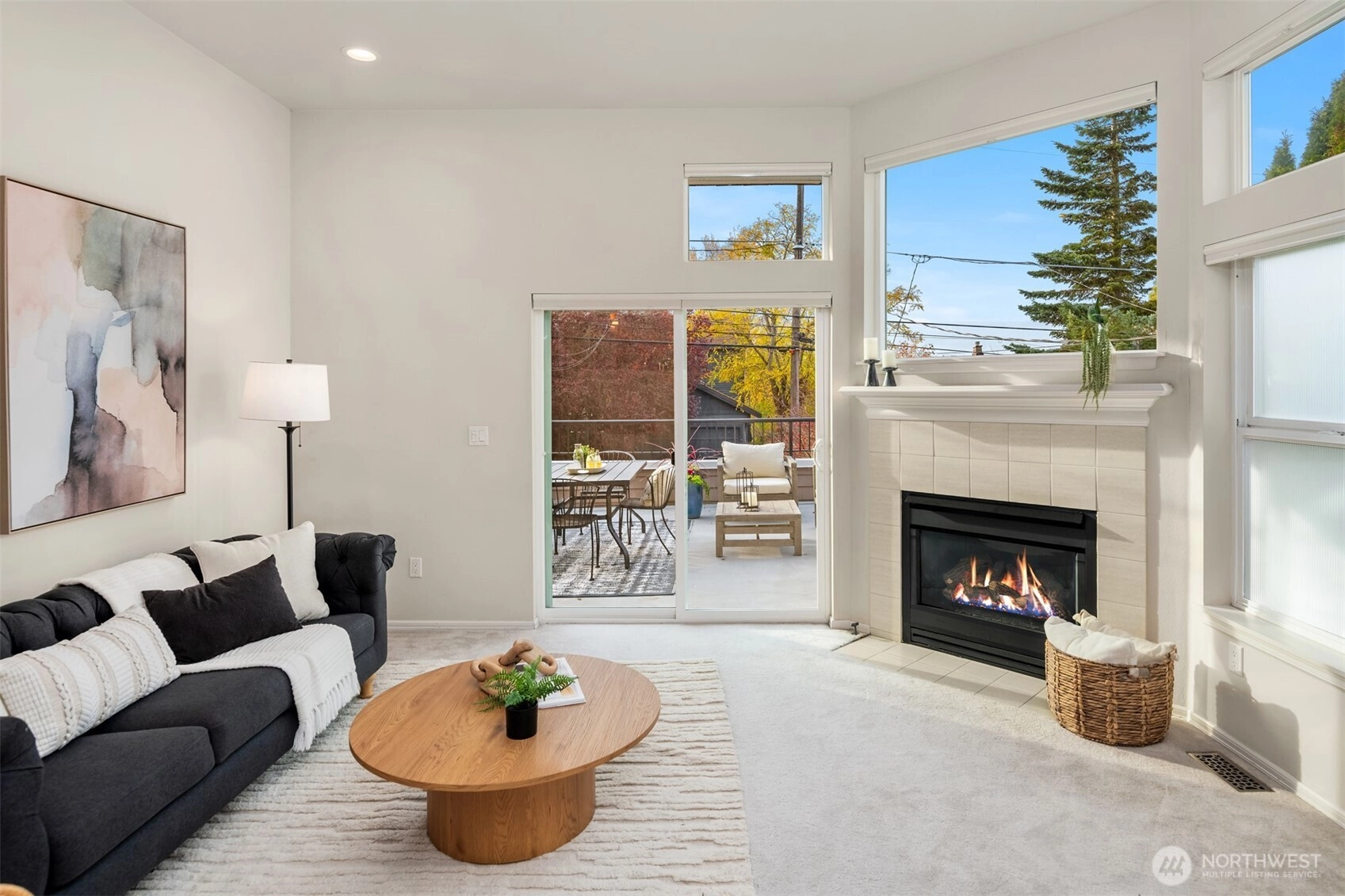 Perched above a quiet tree-lined street, this meticulously maintained home captures brilliant western light through expansive windows and soaring ceilings. An open kitchen and dining area overlook the airy living room with a cozy gas fireplace, flowing seamlessly to a spacious deck perfect for al fresco dining and soaking up glorious sunsets. A main-level bedroom complements two upstairs bedrooms, including a dreamy primary suite with 5-piece bath, envy-worthy walk-in closet and a balcony for taking in the beautiful territorial and city views. Enjoy a fully fenced, low-maintenance backyard, basement bonus-room, and a rare tandem 2-car garage - storage galore! All this within blocks of the vibrant neighborhood shops & restaurants of Madrona.