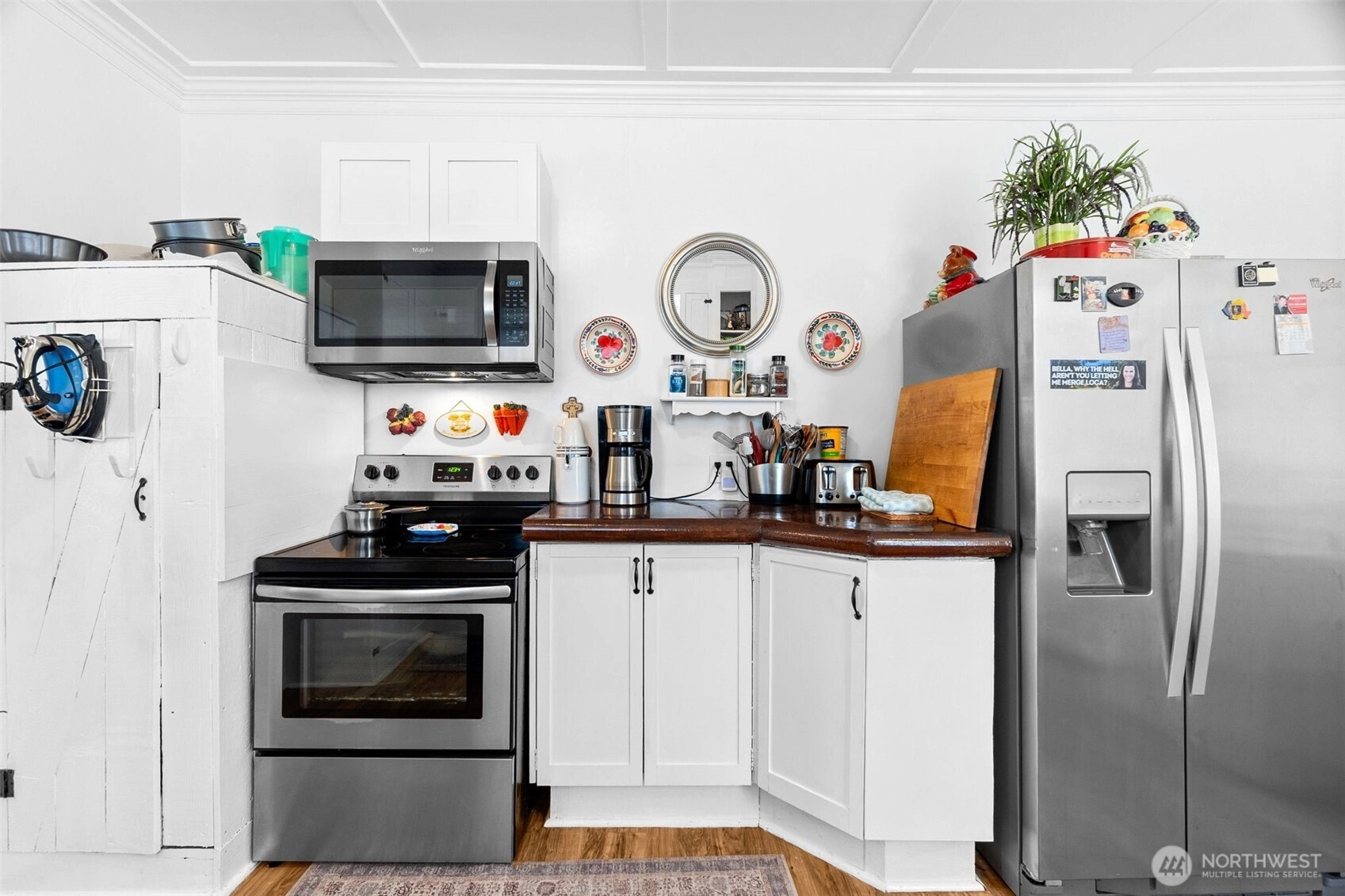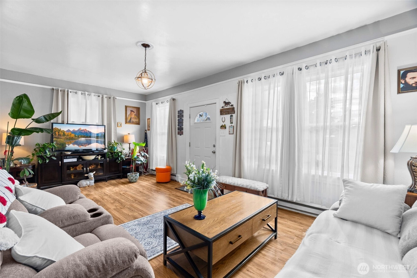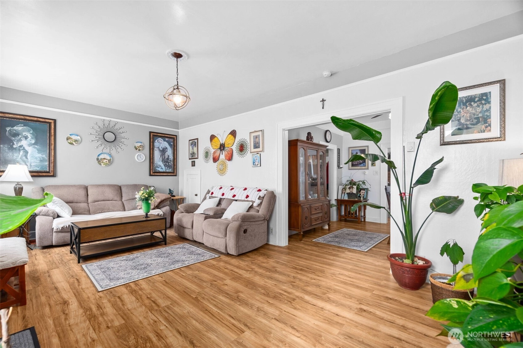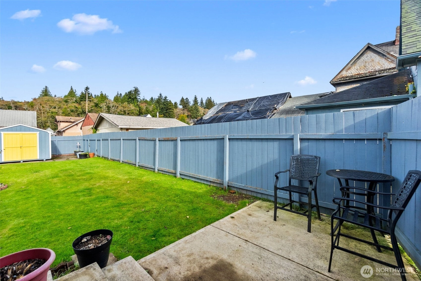 This adorable home is bright and airy and shows even better in person! This 3 bed, 1 bath home has been updated throughout including paint, flooring, fixtures, concrete, and landscaping - this home as been well maintained, very neat and clean with a fabulous floor plan! The huge fully fenced yard is such a great feature to this home. Plus, a very nice patio to relax on that faces that backyard. Nice sized outbuilding for storage as well. Close to schools and all of Hoquiam's amenities. Turn-key and ready for you! Gate in front opens for more parking too!