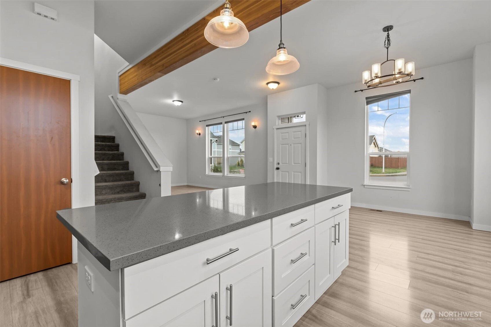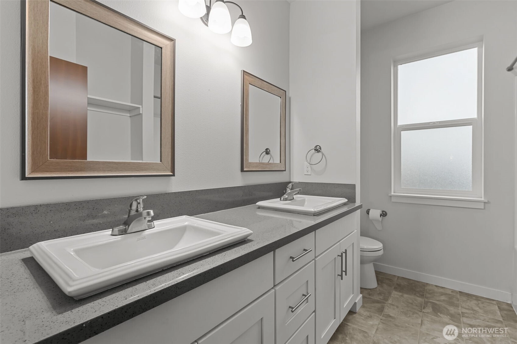 Sun-drenched, airy, and bright! This 4-bed 2.5-bath home features a crowd-pleasing floor plan! Every room is spacious and light-filled, with big windows. You’ll love the primary suite with soaking tub, shower, dual sinks & walk-in closet. Quartz counters, stainless steel appliances, with a center island, and pantry make this home ideal for meal prep, holidays, and entertaining. Don't miss the laundry room with soaking sink and tons of storage. Convenient alley access and an oversized 2-car garage. Plus a playground within walking distance and a great backyard patio to stay cool from the evening sun. Located just minutes from I-5, this home offers easy access to shopping, dining. Heat Pump/A/C.