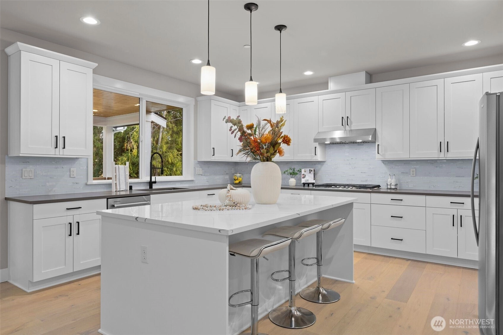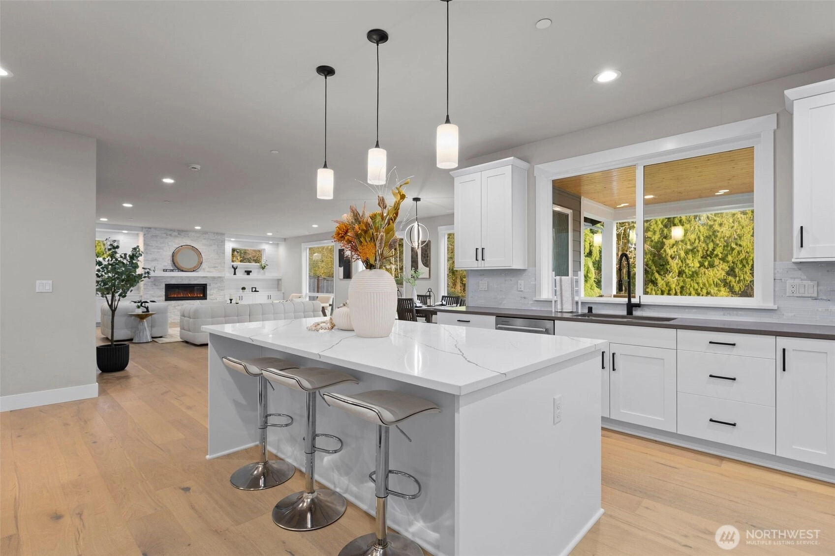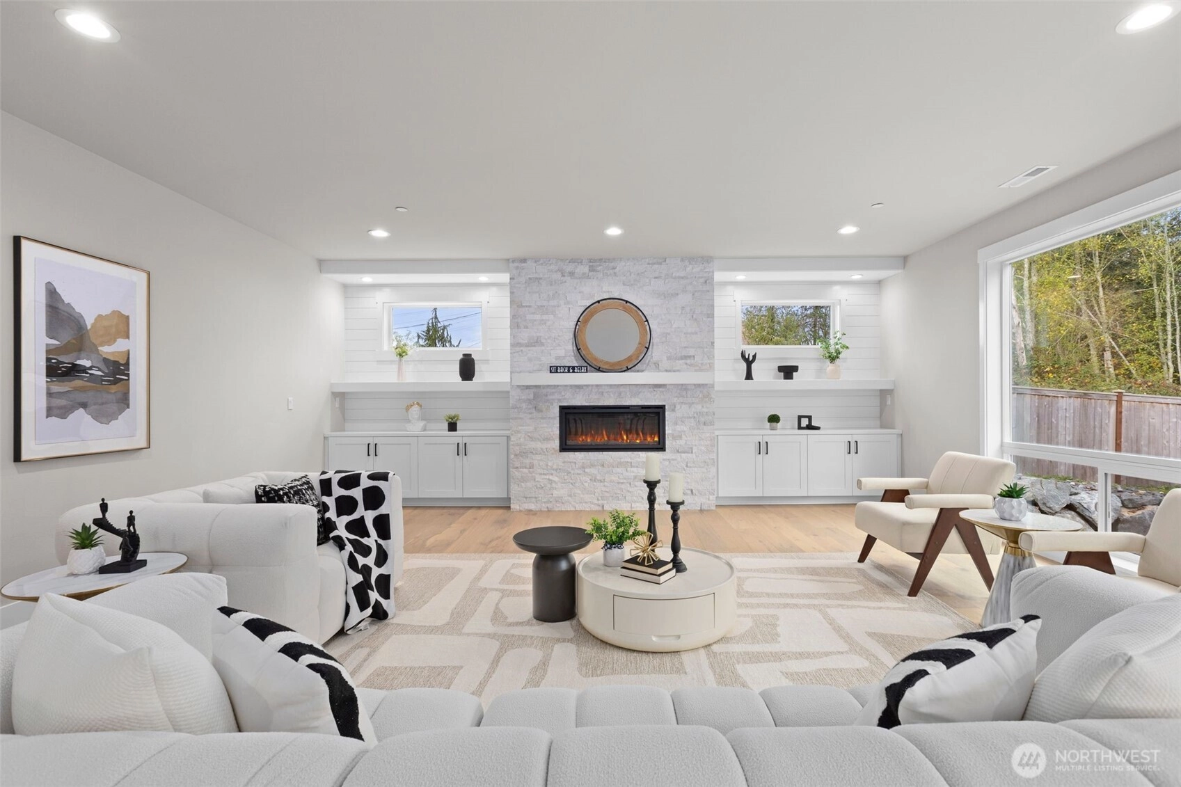 Location, location, location! This stunning 5-bedroom home is tucked away on a serene .74-acre lot, yet just moments from downtown Lake Stevens. Enjoy easy access to shopping, dining, parks, and beaches, all within walking distance. The chef’s kitchen features a gas range, quartz countertops, wine fridge, walk-in pantry & an oversized island. Open-concept living & dining spaces flow effortlessly to the covered outdoor deck. Upstairs boasts 4 additional bedrooms, highlighted by a grand primary suite w/ a spa-inspired 5-piece en-suite & grand walk-in closet. PLUS a loft that captures breathtaking lake views & sunsets. A 3 car garage, A/C, & car charger complete this exceptional home! *Offering a $10k credit from preferred lender!*