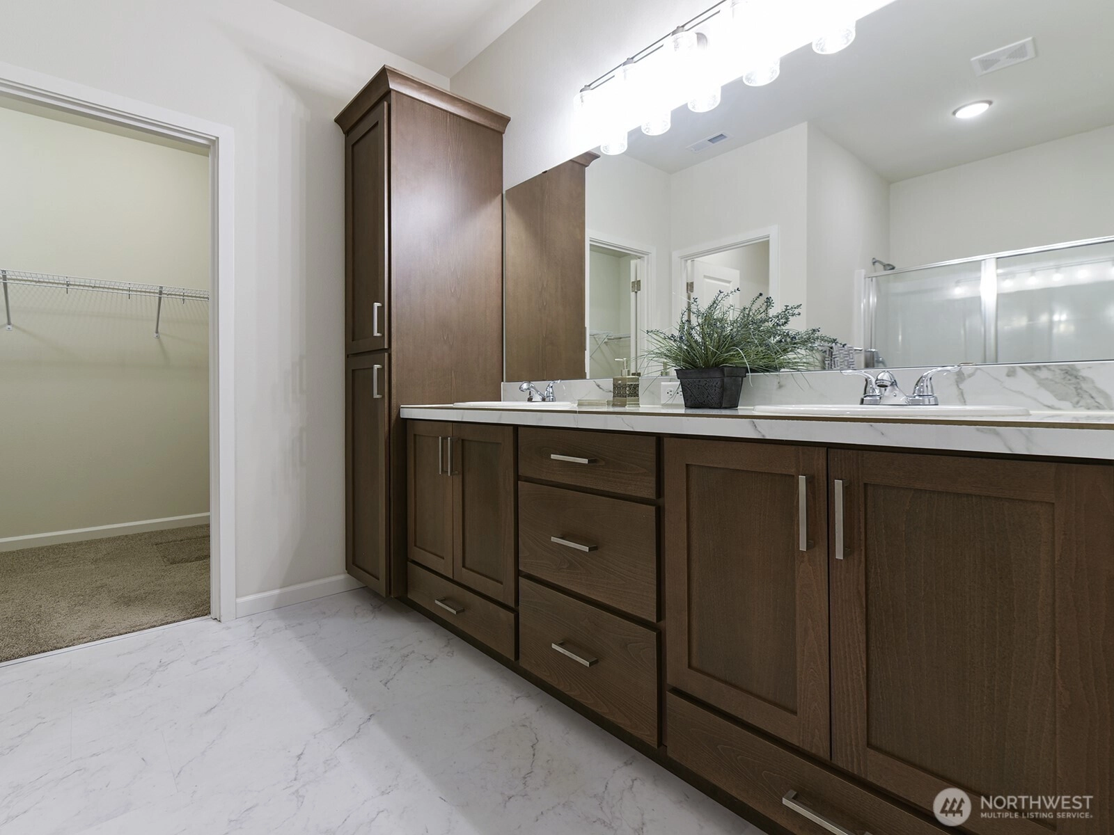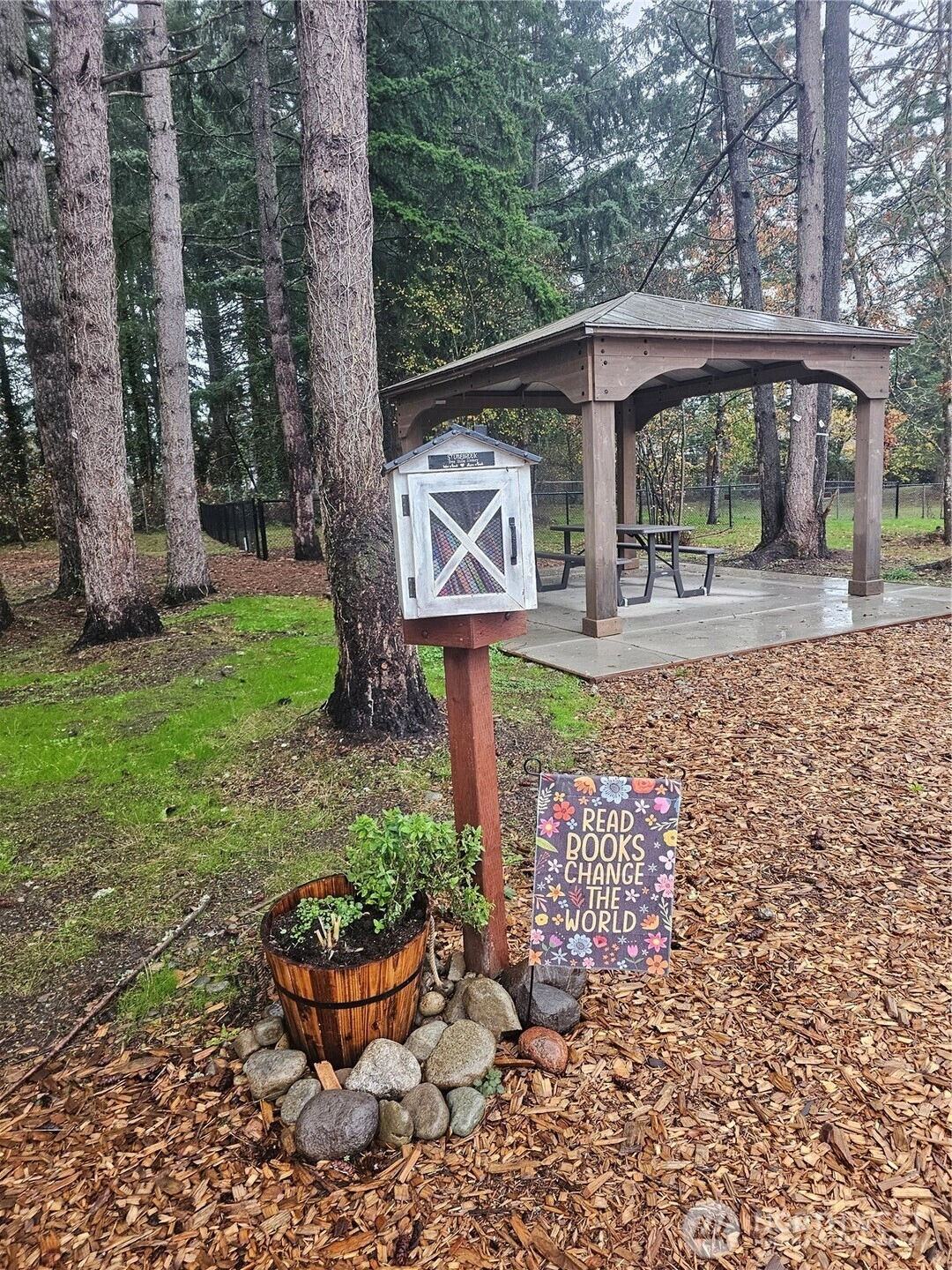 This beautifully upgraded 3 Bdrm 1/3/4 Bath home in Stonebrook offers an open/ airy layout filled with natural light. The living area boasts vinyl plank hardwood floor/stylish kitchen features granite countertops, stainless steel appliances, modern cabinetry, complemented by a spacious pantry with built-in shelving. Enjoy the cozy gas fireplace.All deluxe window coverings remain with the house.The primary suite includes a bthrm with dual sinks, granite surfaces, and a shower. Primary closet with white shelving throughout. Washer/ dryer are included, extra cabinets for storage.Backyard fenced /relax w/covered patio.Storage Shed.Wired for generator/generator included. Sprinkler systems. Park in community. Close to JBLM, Freeways Must See Gem!
