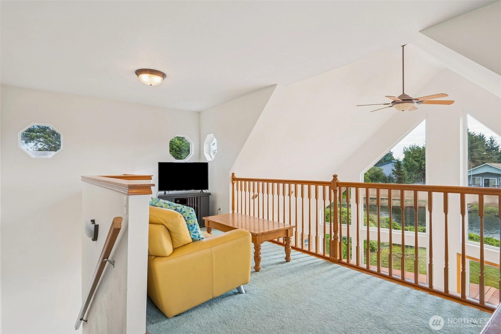A delightful well-maintained fully furnished 2-bedroom home, 1464 square feet, on the Bell canal with your own private dock to fish, launch your kayak, or boat. Huge Trex deck. One bedroom downstairs and primary bedroom upstairs, jetted soaking tub. 1 3/4 bath and upstairs loft perfect for an office, hobby/bonus room. Detached 2 car garage on 9000 sq foot lot. RV parking, power/water/black water hook up. 60 feet canal frontage, where you can access over 23 miles of inter-connected canals. The community club, 18-hole golf course, charming shops, and restaurants are close by. All the windows facing the canal along with the dishwasher are brand new. New insulation in the crawl space. Enjoy this property as a primary residence or vacation home.