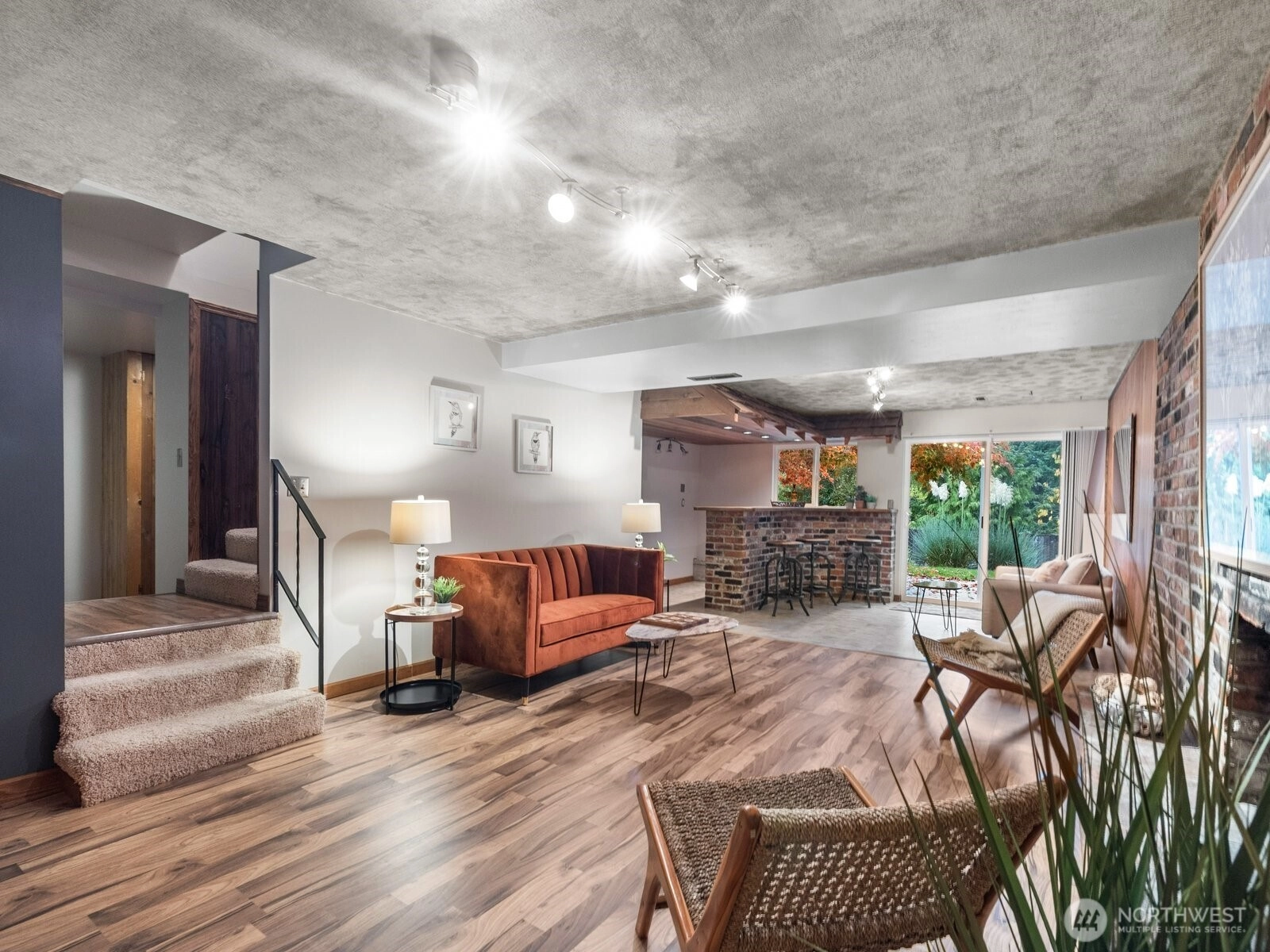 Discover this charming Mid-Century Modern Daylight Rambler, featuring an updated kitchen that seamlessly integrates with the spacious main level, accentuated by a beautiful brick fireplace that enhances the home's mid-century charm. With 3 bedrooms and 1.5 baths, this residence also showcases a daylight basement that's perfect for entertaining. The lower level is highlighted by a cozy wood-burning fireplace, an inviting entertainment area, ample storage, and a bonus shop space. Enjoy the warmth of two wood-burning fireplaces. Step outside to a generous patio and a large fenced backyard, ideal for relaxing or hosting gatherings. Wonderful location! Don’t miss this unique blend of style and functionality!