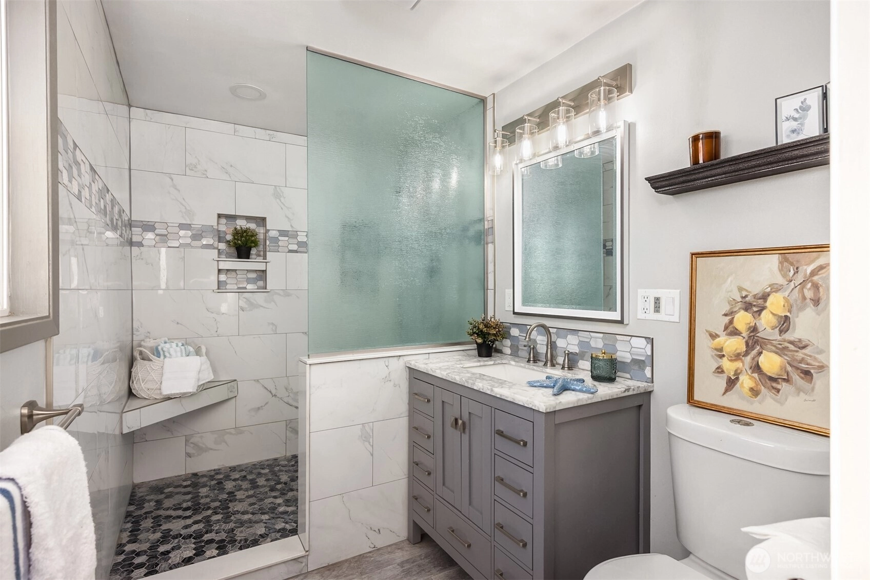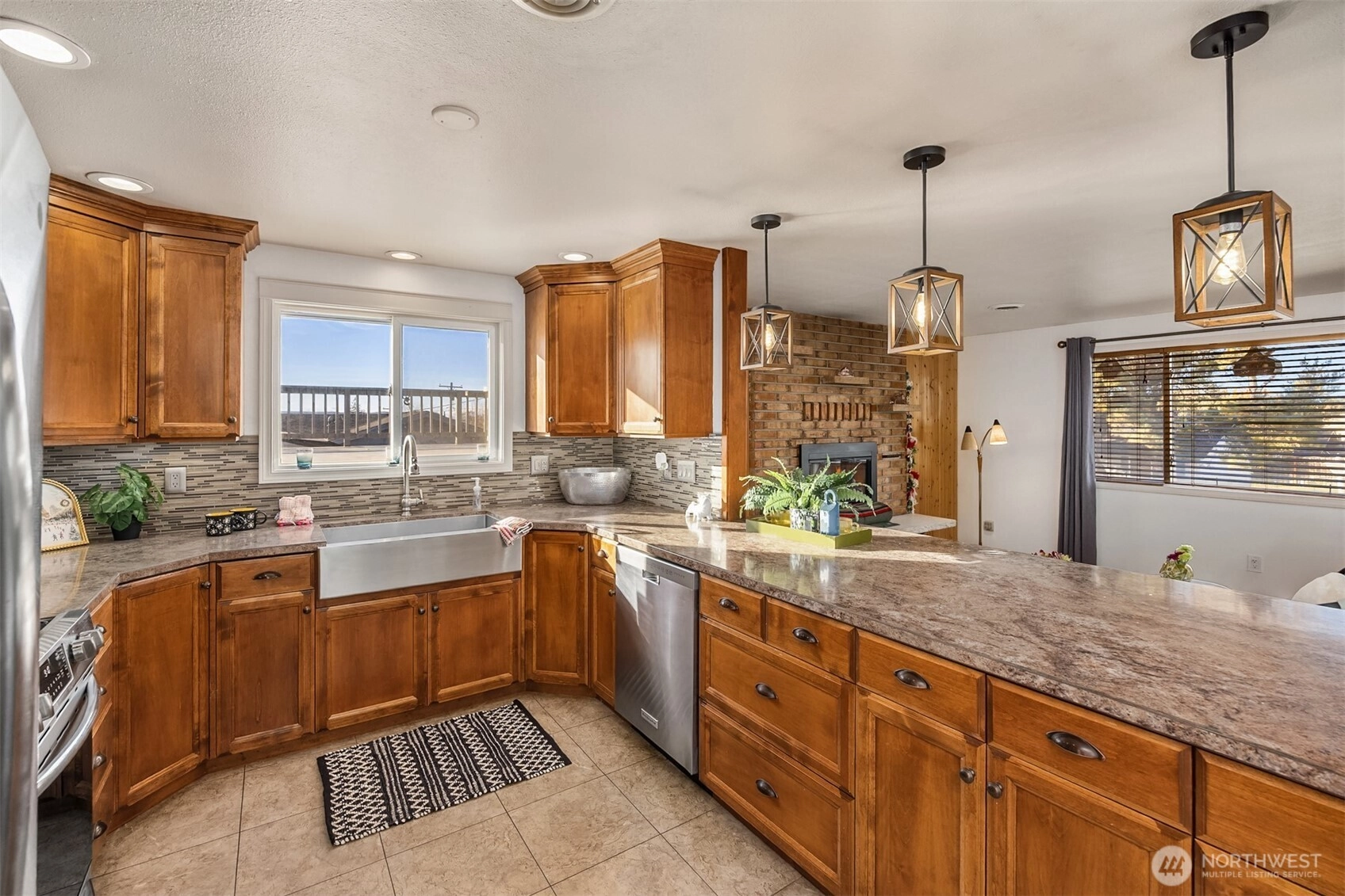 Gorgeous updated 4-bedroom, 2.5-bath mid-century modern in the desirable location of Terrace Heights. Step into an open floor plan with updated designer kitchen, updated bathrooms, and flexible lower level with walk-in pantry and excellent storage. Ideal for entertaining with spacious living areas, elevated deck, and covered backyard patio. Fully landscaped yard with territorial views, partially fenced in backyard, sprinkler system, and dedicated RV/boat parking. Large two-car garage with shop space. Convenient location near Yakima Country Club, wineries, parks, trails, shopping, and top-rated schools. Perfect for a primary residence or a wine-country retreat.