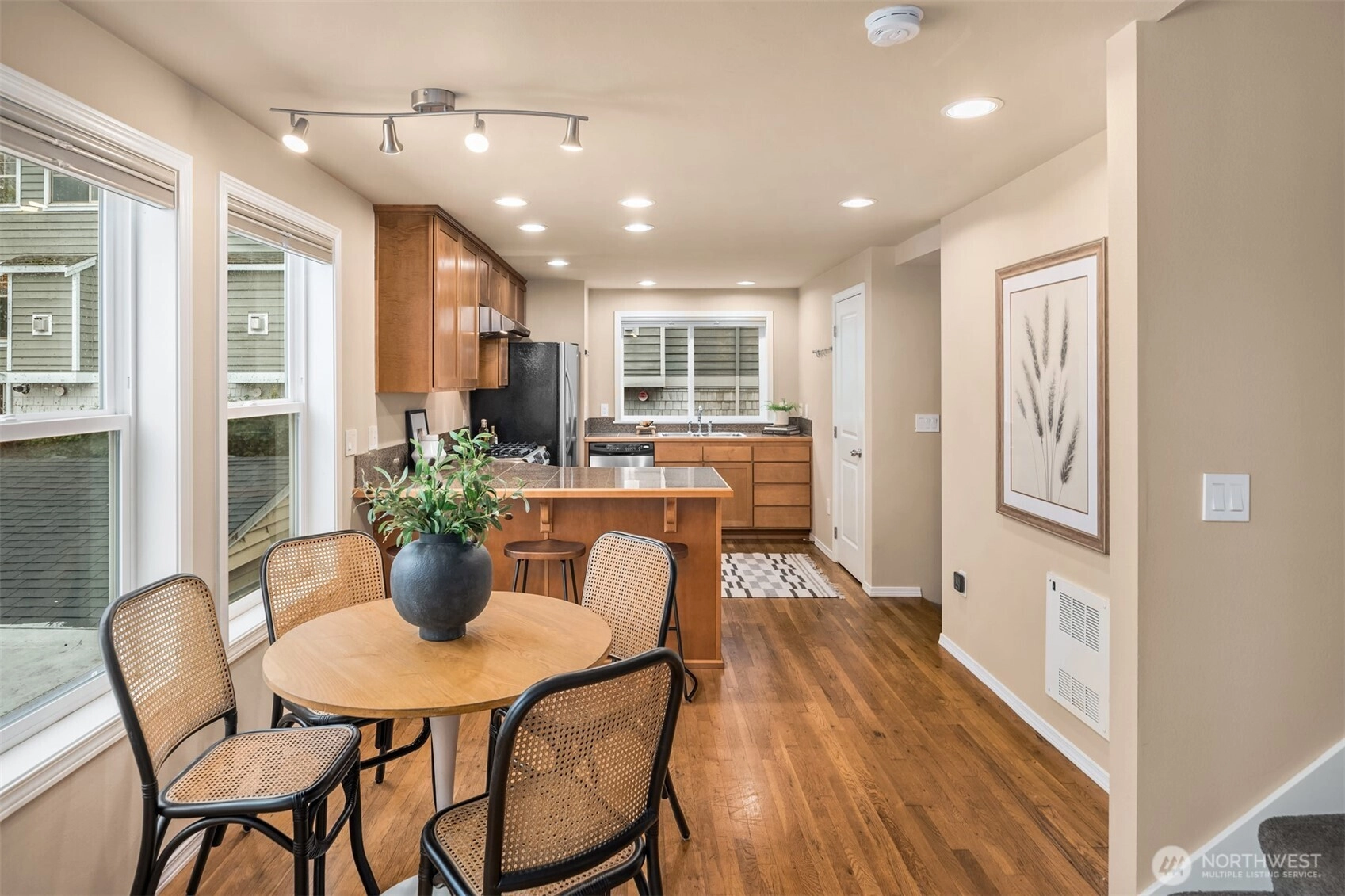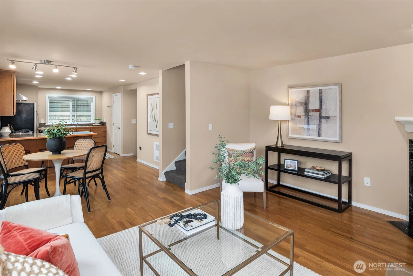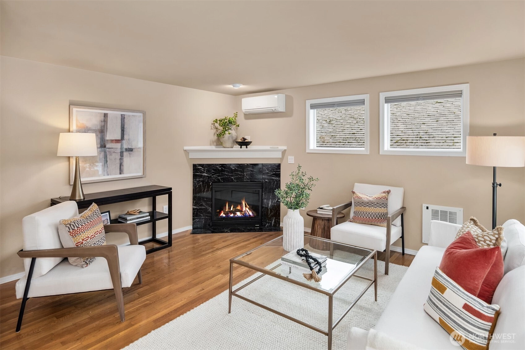 Discover this Craftsman-style end-unit townhome located in Greenwood offering 3 bedrooms & 2.25 bathrooms across 1,230 sq ft. Features include a sizeable kitchen with granite countertops, gas range & stainless steel appliances. An abundance of natural light throughout home with natural hardwood floors on the main level, cozy living area with a gas fireplace & mini-split A/C for comfort. Entry level includes bedroom & attached 3/4 bath. Upper level features large primary bedroom & generous sized guest bedroom & full bath. Attached garage w/ extra parking in front of unit, fenced backyard with patio, & freshly painted interiors add to its appeal. No HOA. Located near Green Lake & local restaurants. A perfect blend of style and functionality!