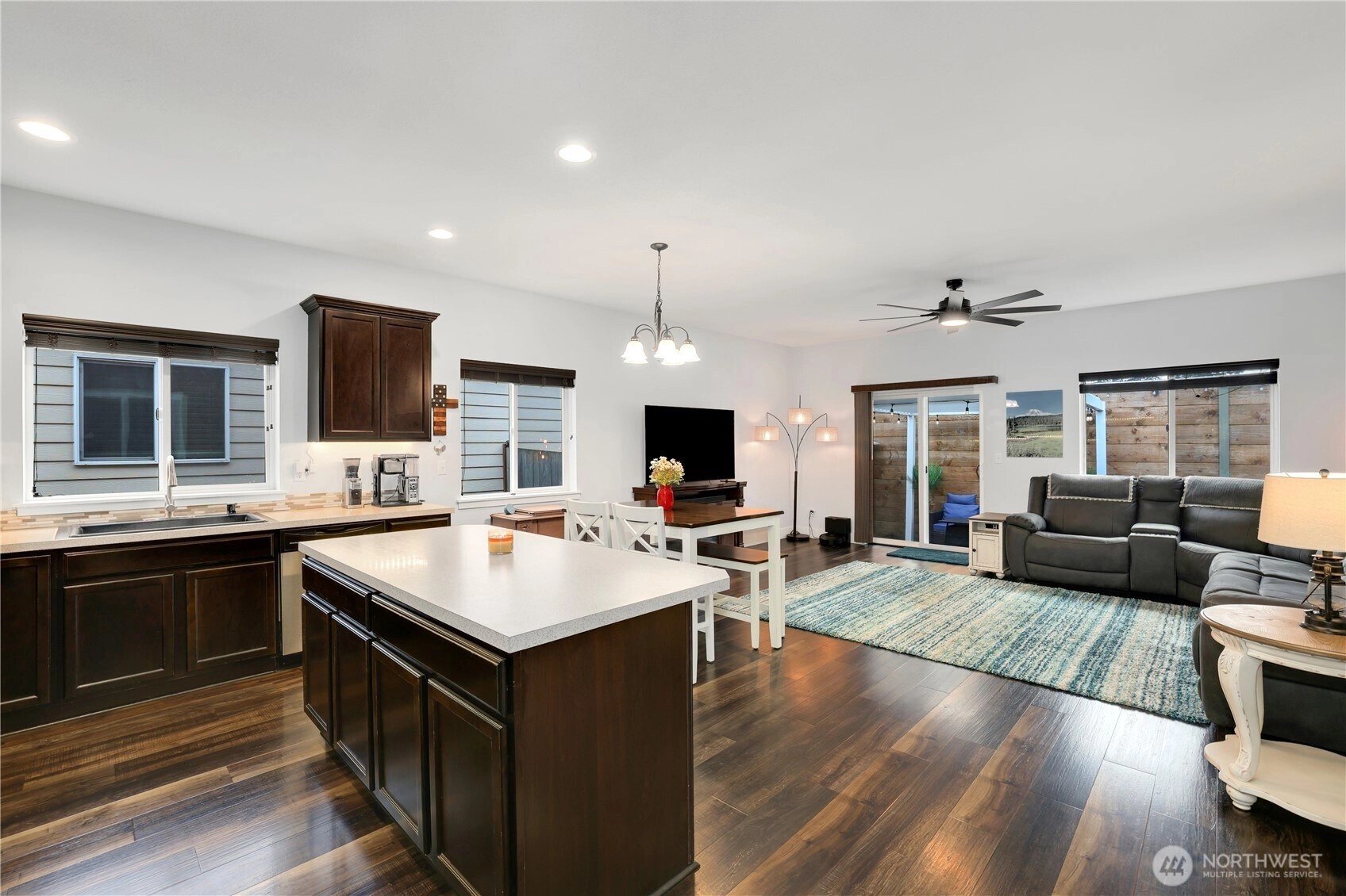 Welcome home to this beautifully updated 3-bedroom, 2-bath Spanaway rambler in excellent condition! This move-in ready home features brand new LVP flooring throughout, fresh paint, & updated trim & doors. Open concept dining & living room w/ a spacious kitchen boasting SS appliances, a large island, & huge walk-in pantry! The large primary bedroom offers comfort & privacy w/ a large walk-in closet, a beautifully updated 5-piece bath w/ a soaking tub, shower, & double sinks. Two additional beds & fully remodeled guest bath. Enjoy year-round outdoor living under the covered patio, ideal for relaxing & gatherings. Two car garage w/ Level 2 EV Charger. Conveniently located near JBLM, schools, shopping, & commuting routes. This one won't last!