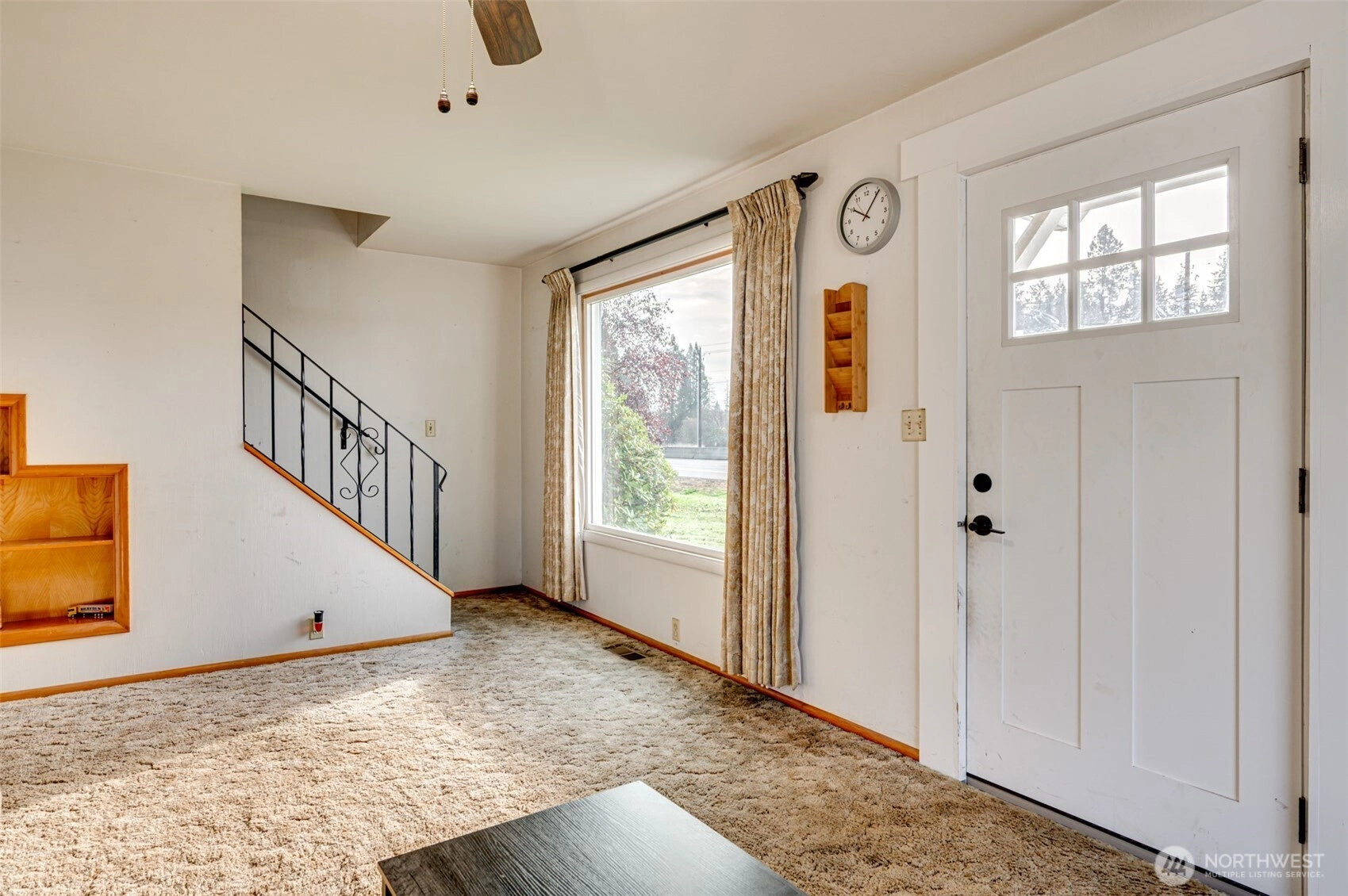 Spacious 0.64-acre flat lot in Ridgefield, featuring a 1,296 sq ft home with four bedrooms. Parking and storage galore, with a detached two-car garage, full utility room with cabinets and sink, plus an enclosed carport, and additional space for RV parking with electric hookup. Improvements include a newer roof, windows, vinyl siding, and a 2023 new HVAC system. Move-in ready and waiting for your personal touches. Hardwood floors under the carpet, ready to make it your own! Perfectly set up for hobby farming or outdoor projects with a fenced chicken coop, garden space, and plenty of room for tools, toys, or future expansions. Conveniently located near shopping, restaurants, and just 2 minutes to freeways.