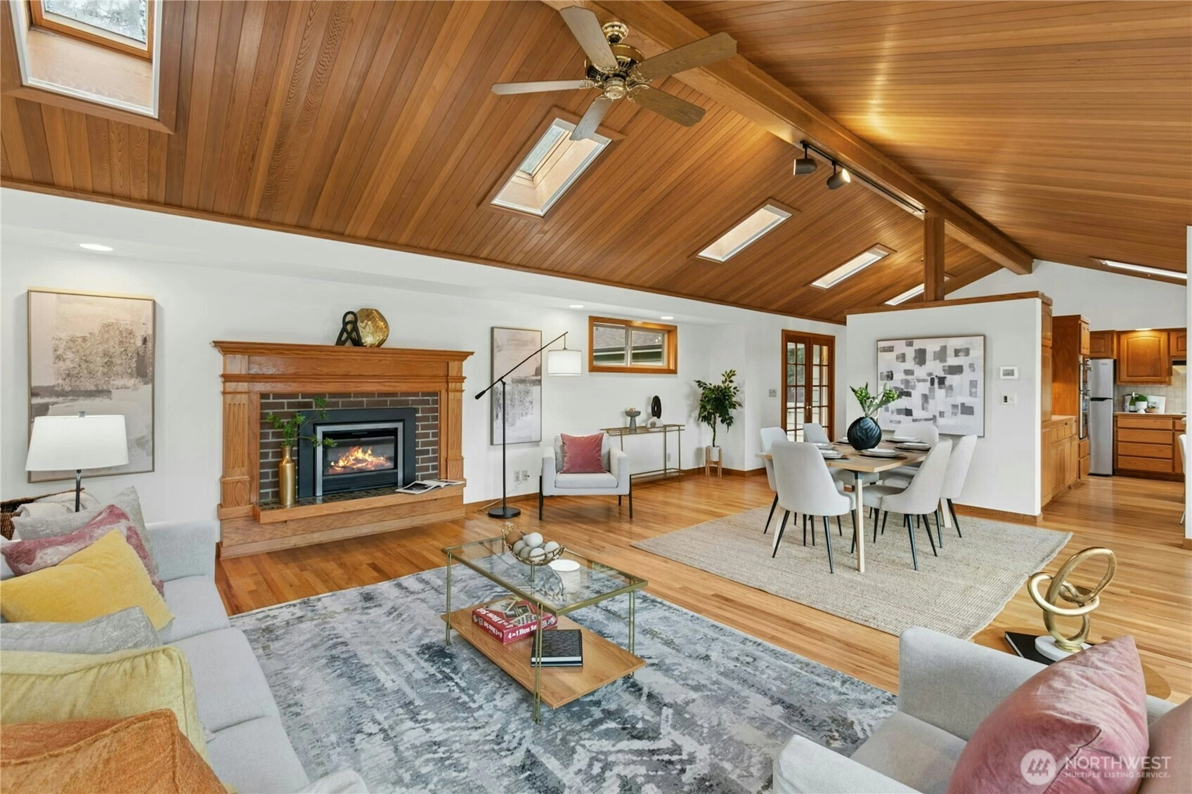 Bath Off Primary Ceiling Fan(s) Double Pane/Storm Window Dining Room Fireplace French Doors Security System Skylight(s) Sprinkler System Vaulted Ceiling(s)