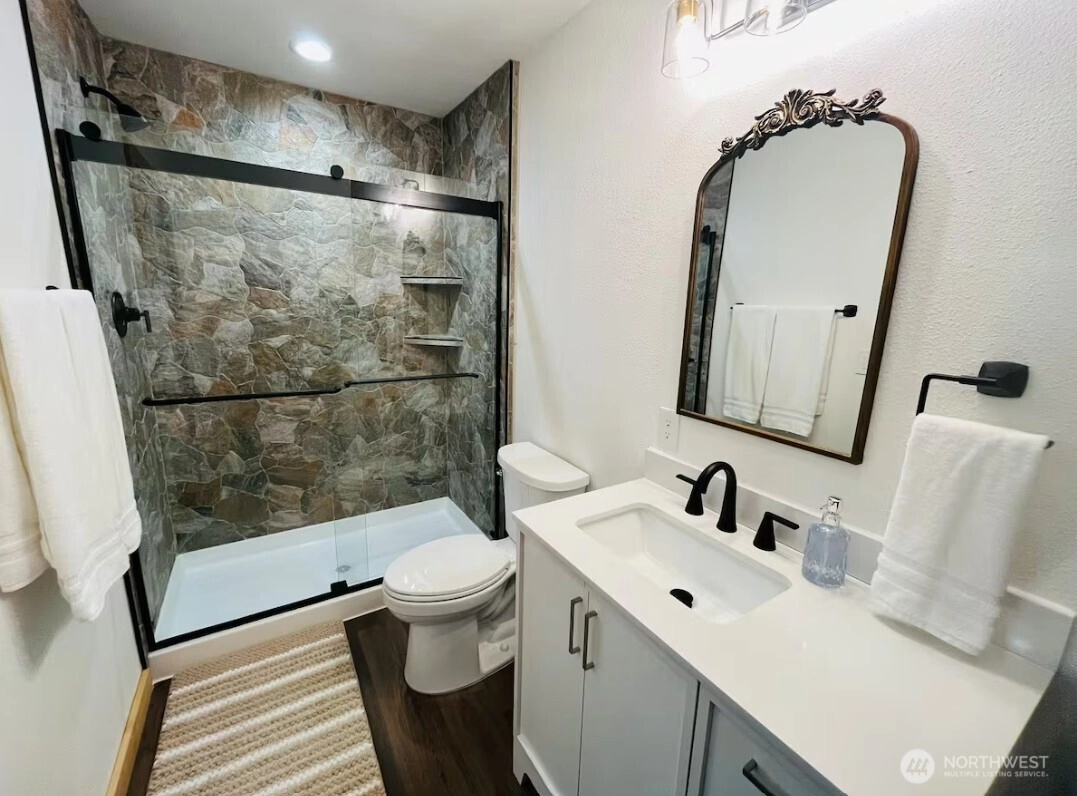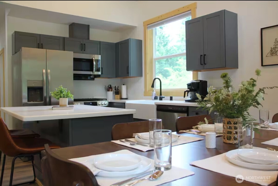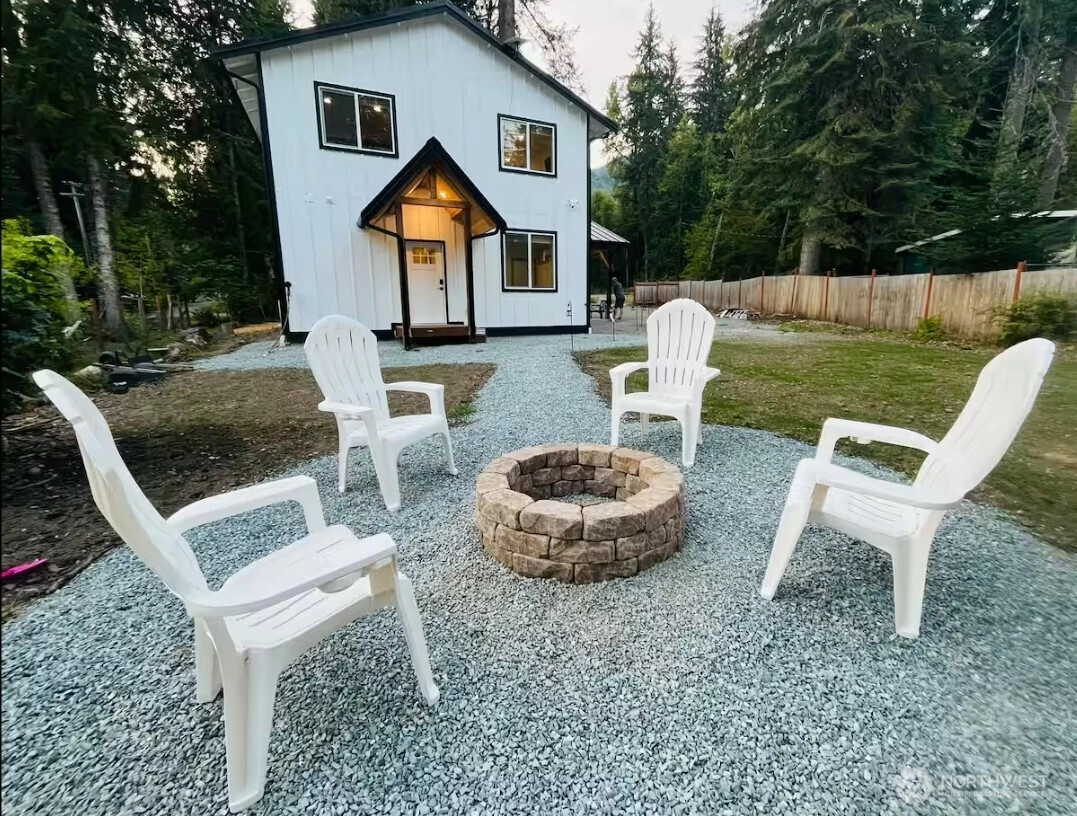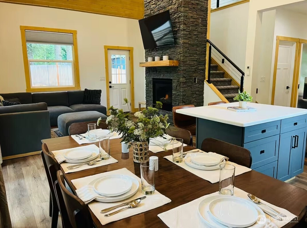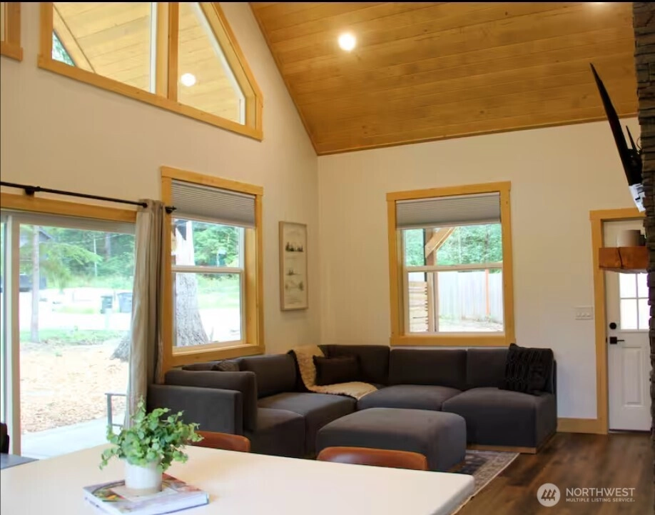 Simply one of the nicest properties in Ashford! Custom built in 2024 specifically as a short term rental, this cabin has every feature and comfort that guests love! Over fifty 5 star reviews on a well-known short term rental platform . The exterior features vast covered patios, expansive gable windows for natural light, a hot tub, and a built in patio heater. The interior features two bedrooms, two full baths with custom tiled surrounds, a statement stone fireplace, and full kitchen. Too many features to list! This cabin is being offered fully furnished as a turnkey STR or vacation home. Host guests from day one after closing!