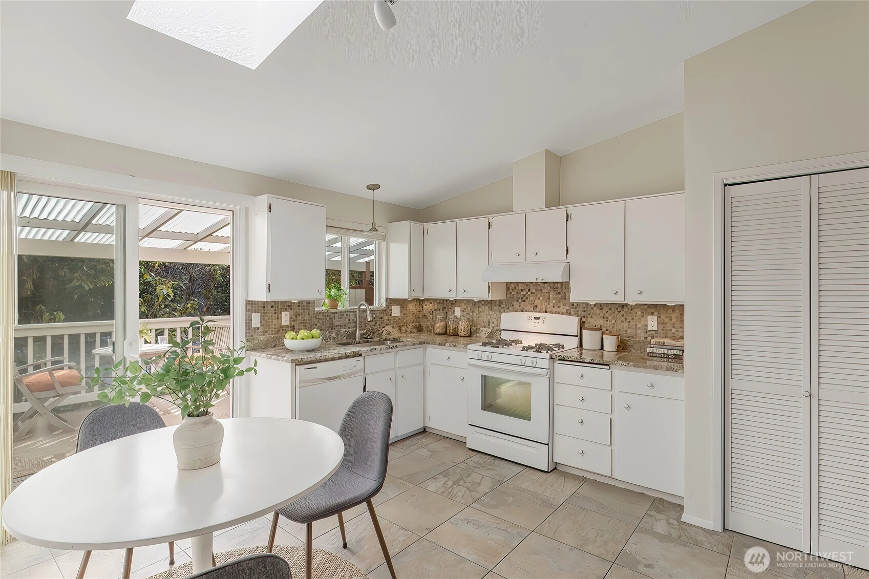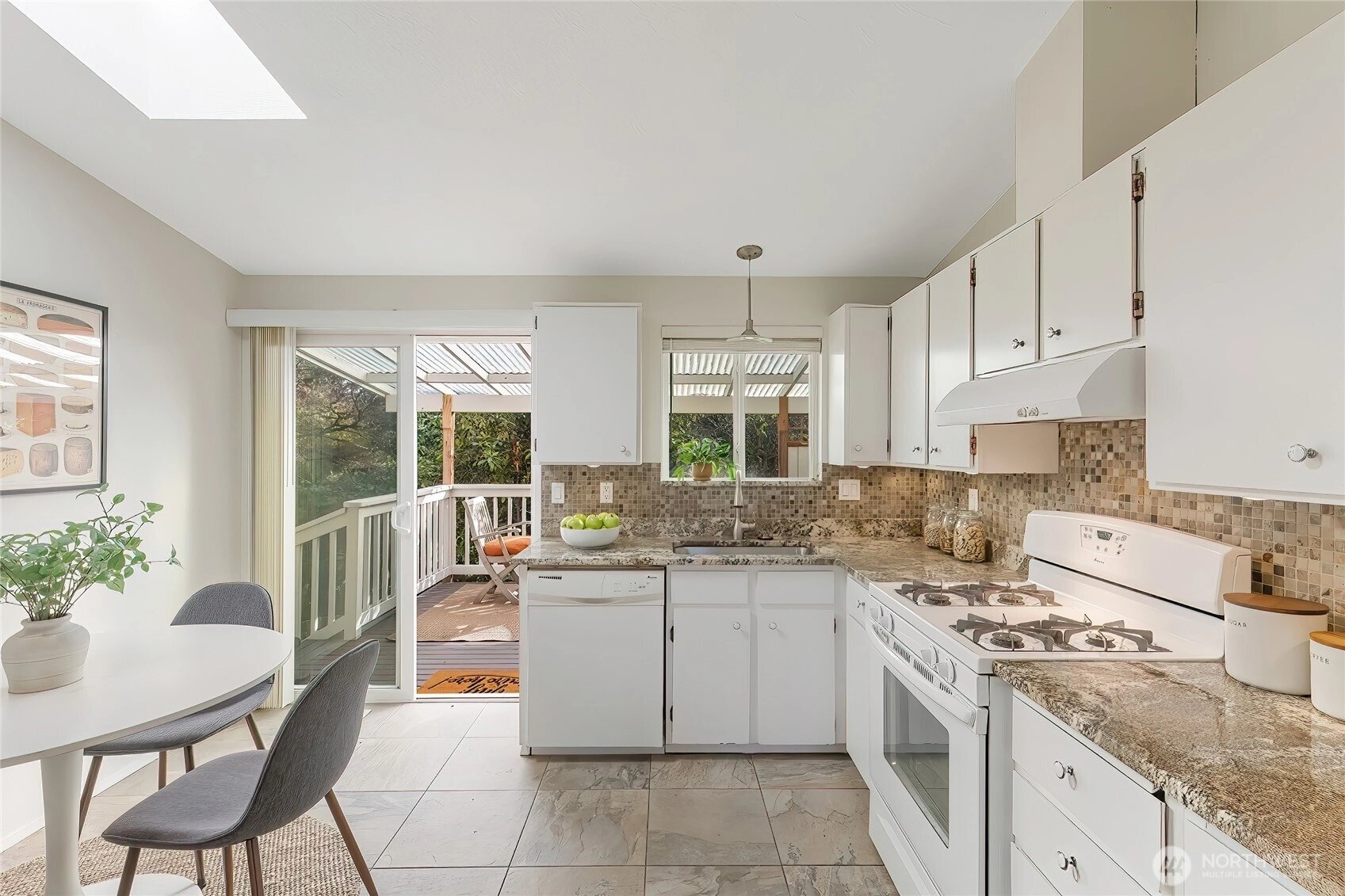 With a thoughtful layout & timeless simplicity this great single-level home balances warmth, comfort, efficiency & ease. As you enter, vaulted ceilings & multiple skylights fill the interior with natural light, creating an open, airy atmosphere. Spacious eat in kitchen w/ gas cooking looks out over covered deck. The living area with tall ceilings, skylights & cozy fireplace maintains an ongoing conversation with the outdoors. Plenty of room with 3 generous beds & updated continental bath. Attached one car garage & Pre Inspected! Deeded to the Civic Club and minutes to North City, LFP Town Center, restaurants, shopping, light rail & I-5. Tucked into a quiet natural setting in the heart of North City you literally feel miles away from it all.