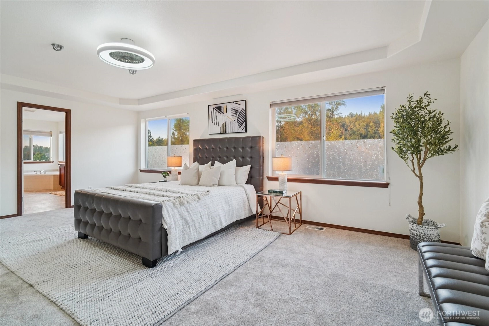 Discover your dream home with stunning mountain views in Orting's River's Edge community! This spacious 4-bedroom + Office/Den, 2.5-bathroom home offers a quiet neighborhood setting and modern updates. The interior features a built-in surround sound system, new luxury vinyl and carpet, fresh paint, and a new skylight. With tons of storage, this home is both comfortable and functional. For added convenience, the laundry room is located on the second floor, right by all the bedrooms. Recent upgrades for peace of mind include a roof less than two years old and a new water heater. The private, fully fenced yard with a new double-gate lock entry provides a secure space for outdoor enjoyment. There's even RV/trailer parking behind the gate