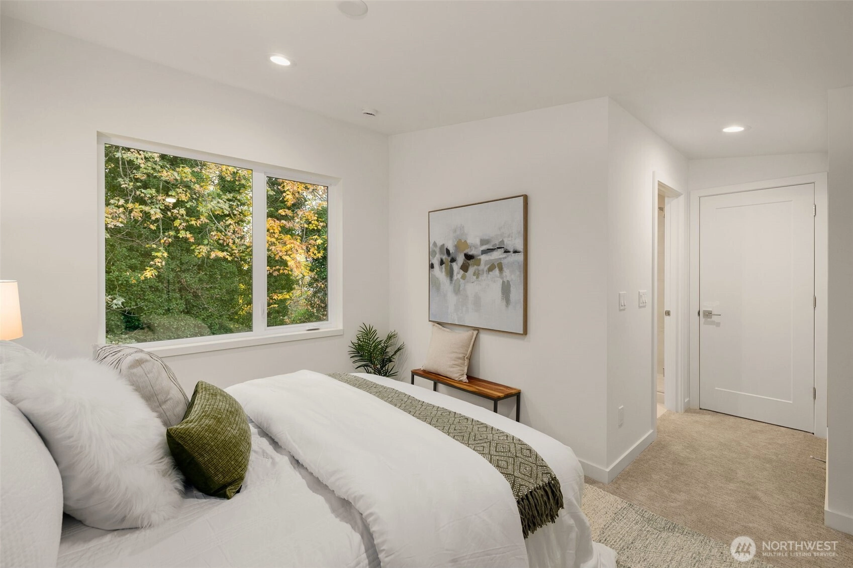 Welcome to West Harbor 6, a collection of modern residences crafted for today’s lifestyles. This 1,126 sq. ft. home features expansive flooring, quartz countertops, & stainless steel appliances. The open-plan main level connects the chef’s kitchen, dining, and bright living area—ideal for daily living or entertaining. Upstairs, there are two bedrooms, including a serene primary suite with an elegant bath and ample closet space. A bonus room offers versatility for an office, gym, or retreat. Enjoy ductless mini-split heating/cooling and off-street parking. The patio, backed by greenery, is ideal for relaxing or for morning coffee. Near Puget Park, cafes, and transit, West Harbor 6 blends urban convenience & neighborhood tranquility.