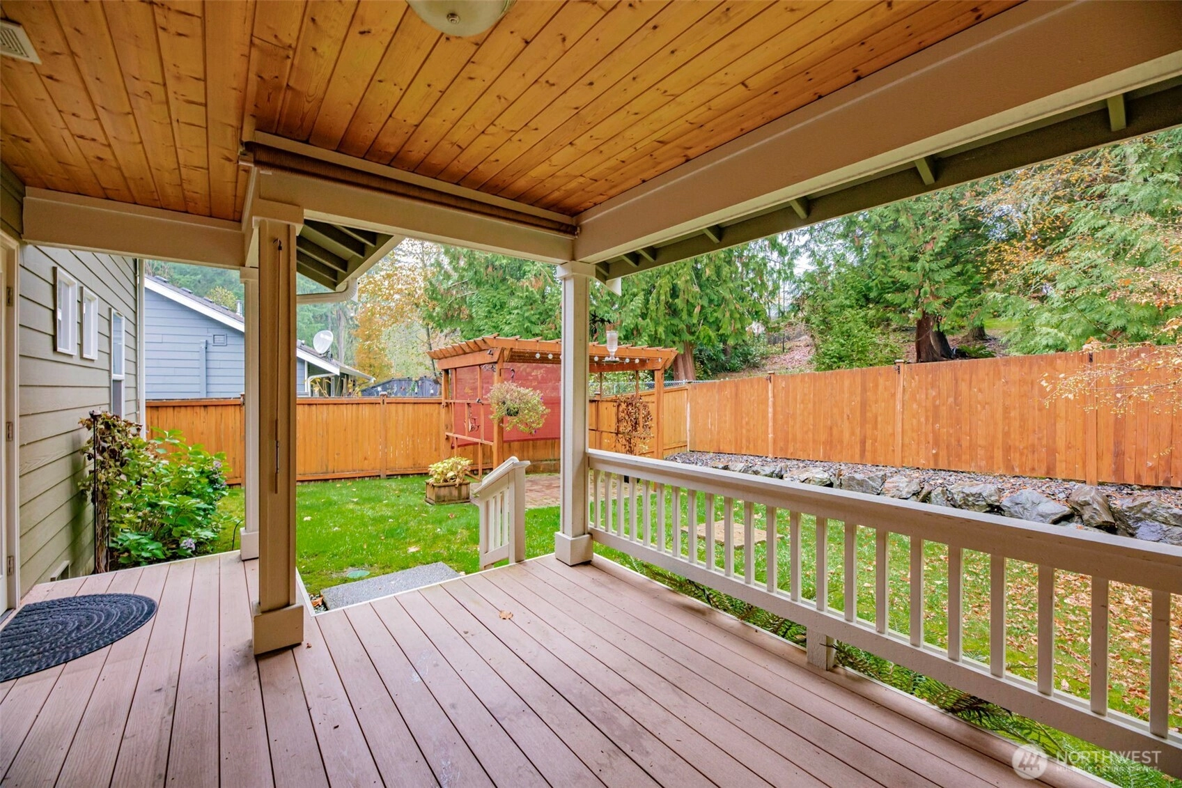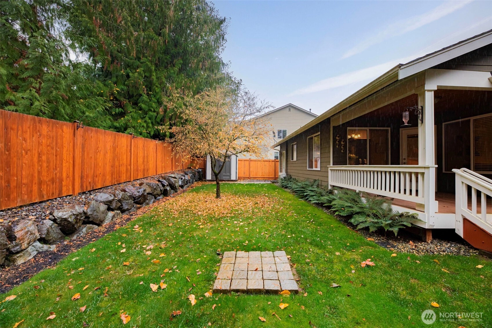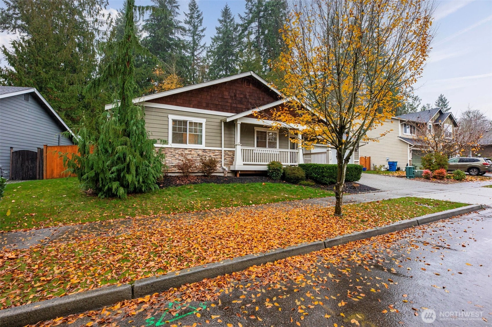 Newer rambler in an idyllic location w covered front porch. Great room design w living area featuring gas fireplace. Flow into the kitchen adjoining a delightful dining area. Vaulted ceilings & ample windows bring in natural light. Warm kitchen offers granite counters & stainless appliances. In the primary suite you'll find dual closets, backyard access & an en-suite w walk-in shower, soaking tub & double vanity. Two add’l bedrooms complete the layout, one a flex room w glass French doors for office, study or hobby use. Back covered deck is a showstopper overlooking the private yard. Pergola & firepit pad elevate outdoor living. Larger garage + garden shed. Home features forced air & mini-split AC. Minutes to amenities & easy commute.