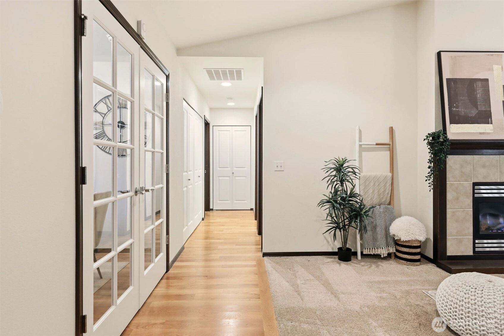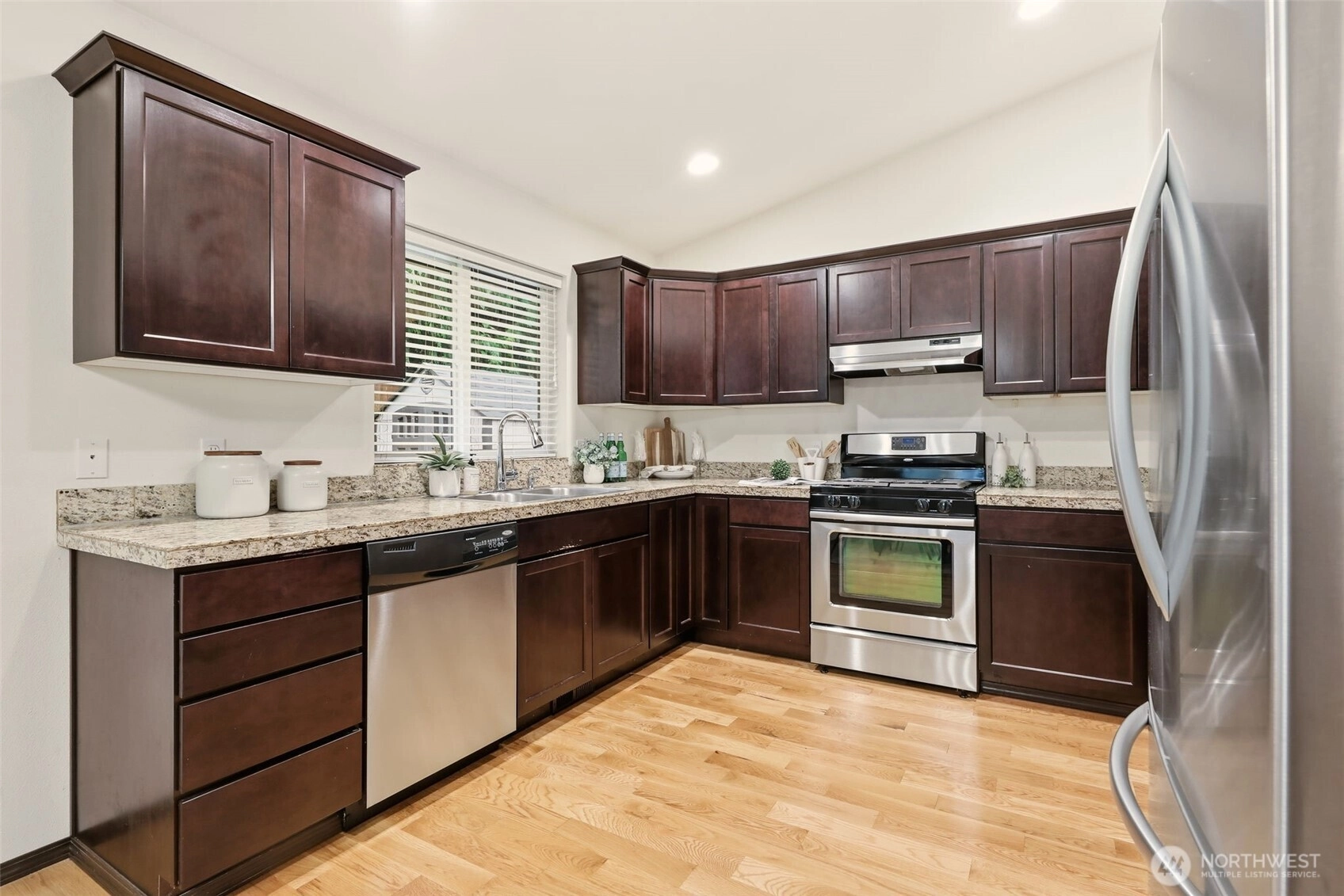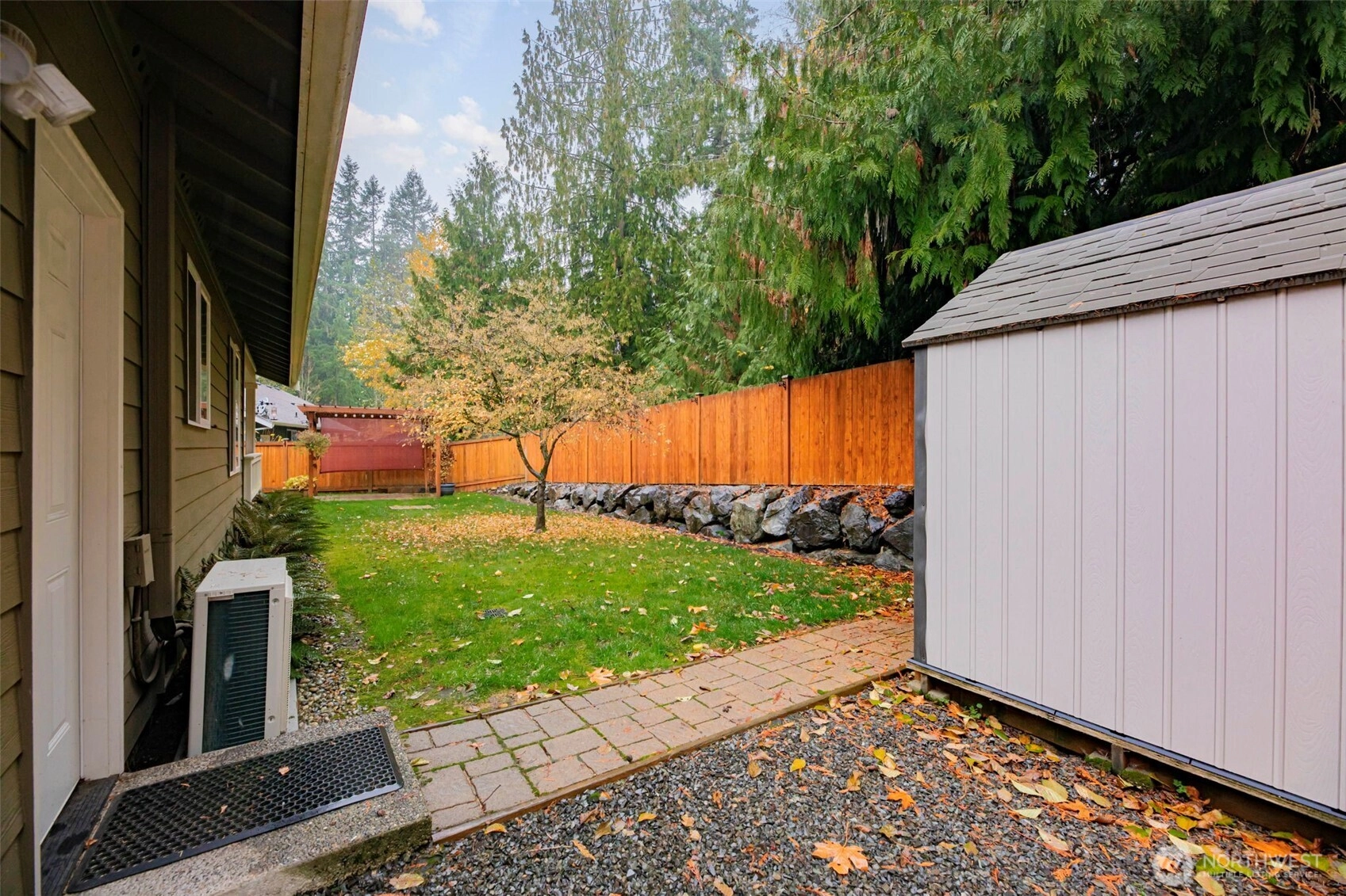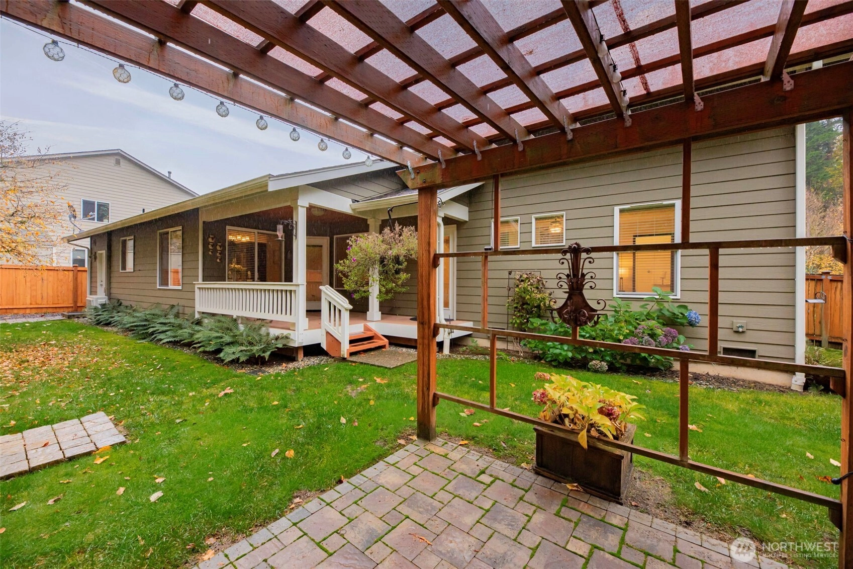 Newer rambler in an idyllic location w covered front porch. Great room design w living area featuring gas fireplace. Flow into the kitchen adjoining a delightful dining area. Vaulted ceilings & ample windows bring in natural light. Warm kitchen offers granite counters & stainless appliances. In the primary suite you'll find dual closets, backyard access & an en-suite w walk-in shower, soaking tub & double vanity. Two add’l bedrooms complete the layout, one a flex room w glass French doors for office, study or hobby use. Back covered deck is a showstopper overlooking the private yard. Pergola & firepit pad elevate outdoor living. Larger garage + garden shed. Home features forced air & mini-split AC. Minutes to amenities & easy commute.